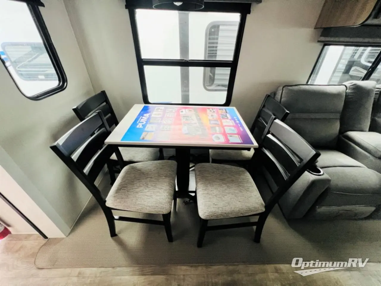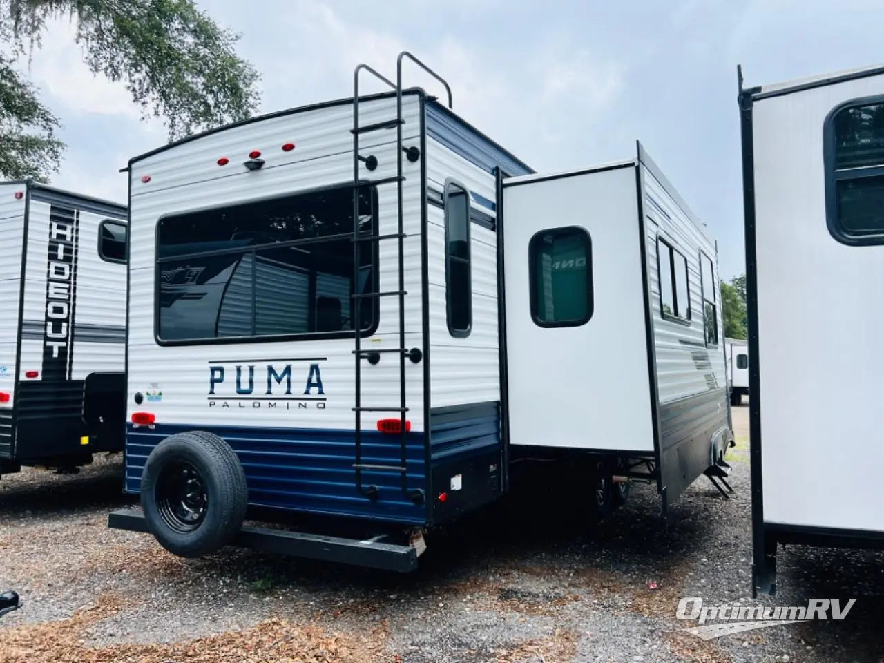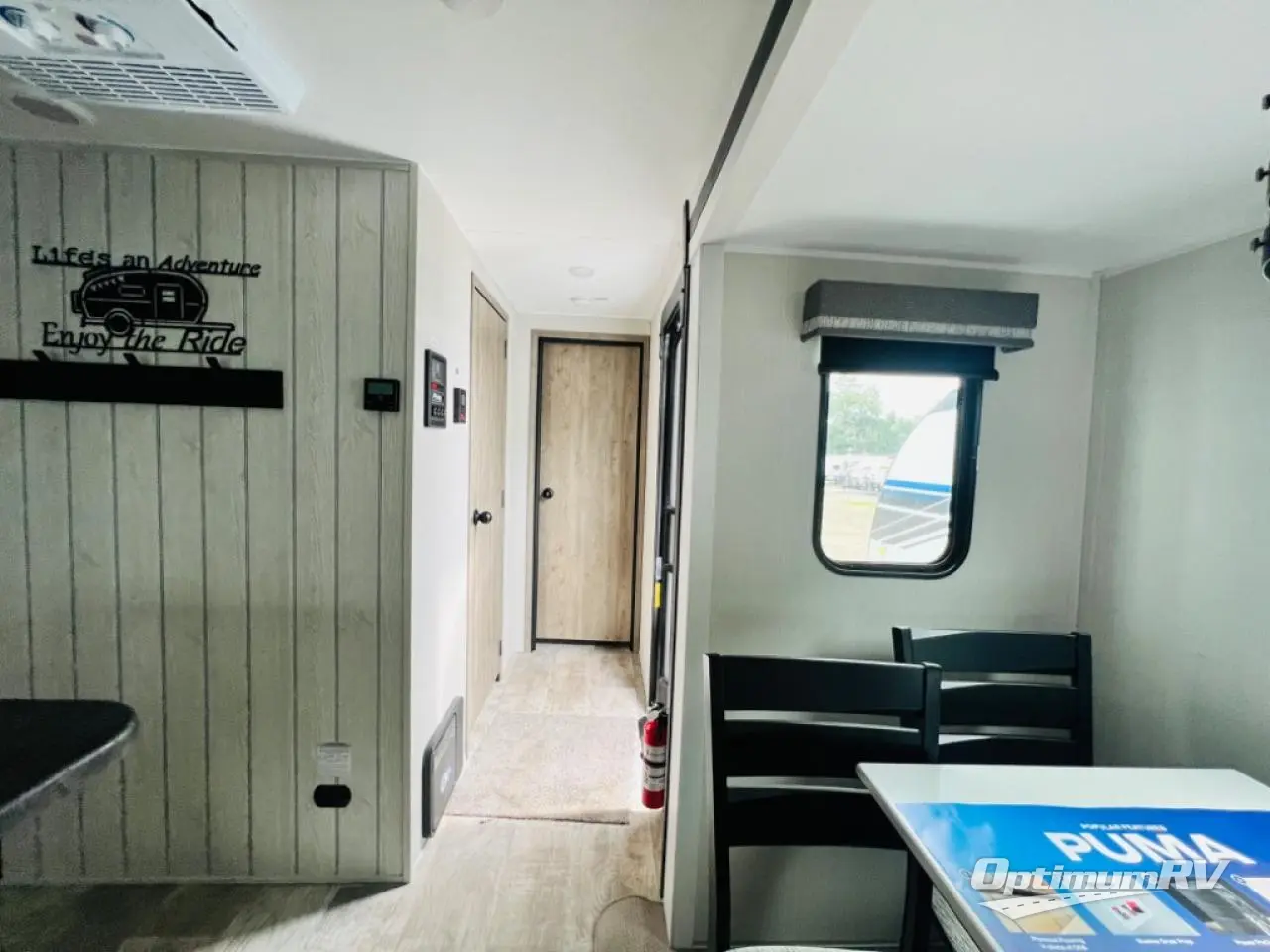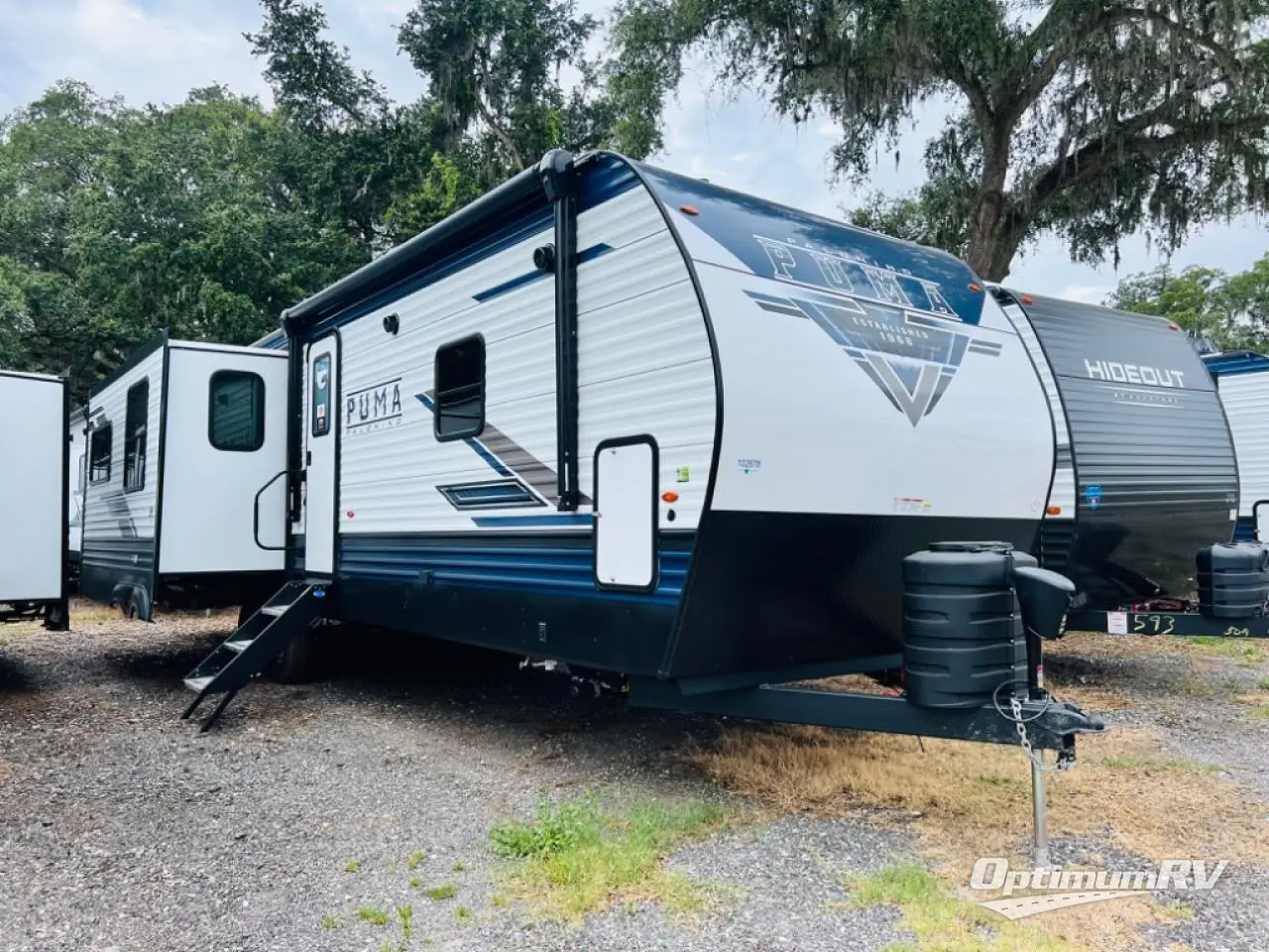 If you're looking for family-fun adventure then you need one of these Palomino Puma fifth wheels or travel trailer! They are built rugged, easy to tow, and jam packed with features. The Darco wrapped underbelly will protect your units vitals through every season and the AlphaPly roofing membrane covers it. They also have super lube axles and a powder coated frame. Their luxurious interiors feature a spice rack and built-in knife rack in the kitchen, USB charging ports to keep your electronics at 100%, and high density foam mattresses for a good night's rest. The required Advantage package comes with night roller shades for privacy at night, two outside speakers to crank up the tunes while you play cornhole, and an outside shower to keep the dirt outside where it belongs, plus so much more!