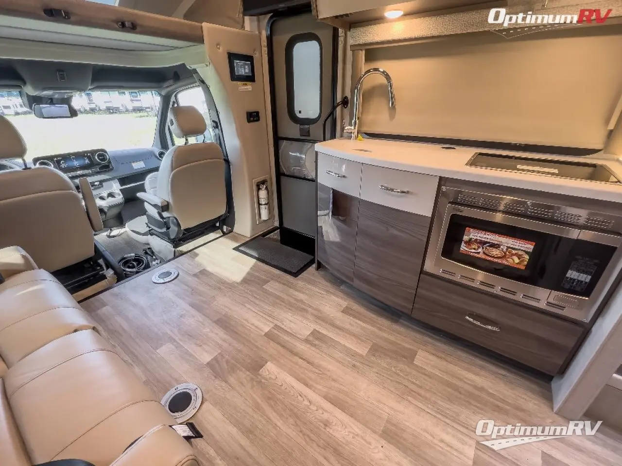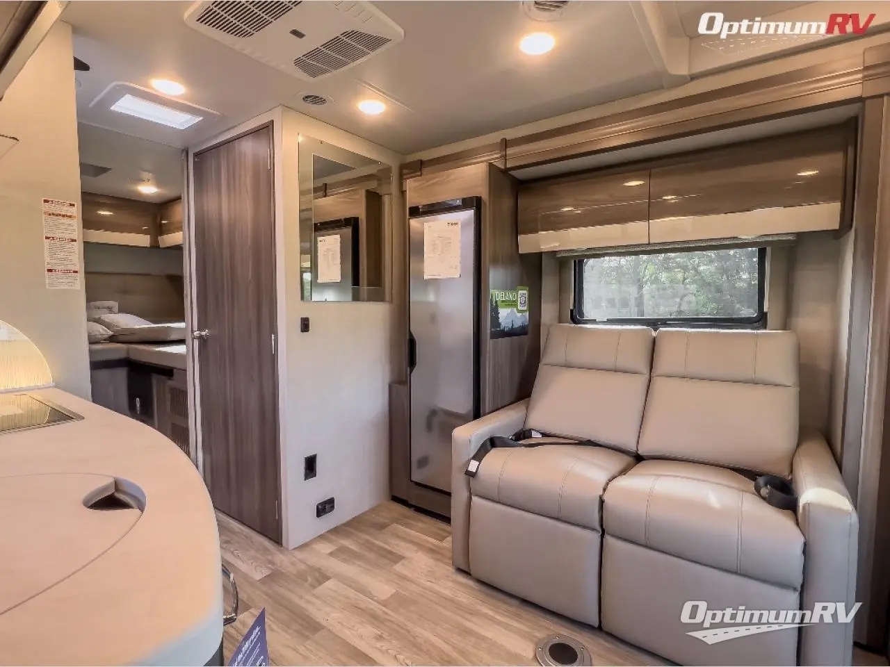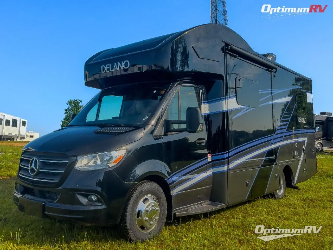 Luxury comes standard in the Delano Sprinter Class C diesel motorhomes by Thor Motor Coach. You will find it so easy to maneuver the road with the Mercedes-Benz Safety package that includes features such as active braking assist and distance regulator distronic plus that will help keep a safe distance from vehicles in front of you. The frameless windows and the full-body paint package with gel coated sidewalls is sure to be eye-catching, plus there is invisible front paint protection for added defense against the elements. Each model includes the Rapid Camp+ multiplex wiring control system that will make set-up easier than ever, a Winegard ConnecT 2.0 WiFi/4G/TV antenna to keep you connected to the outside world, and a whole coach water filtration system for fresh H2O day or night. The Delano Sprinter also includes many interior comforts, like the easy-to-clean residential vinyl flooring, the high-gloss Euro-style cabinetry, and the Leatherette furniture!
