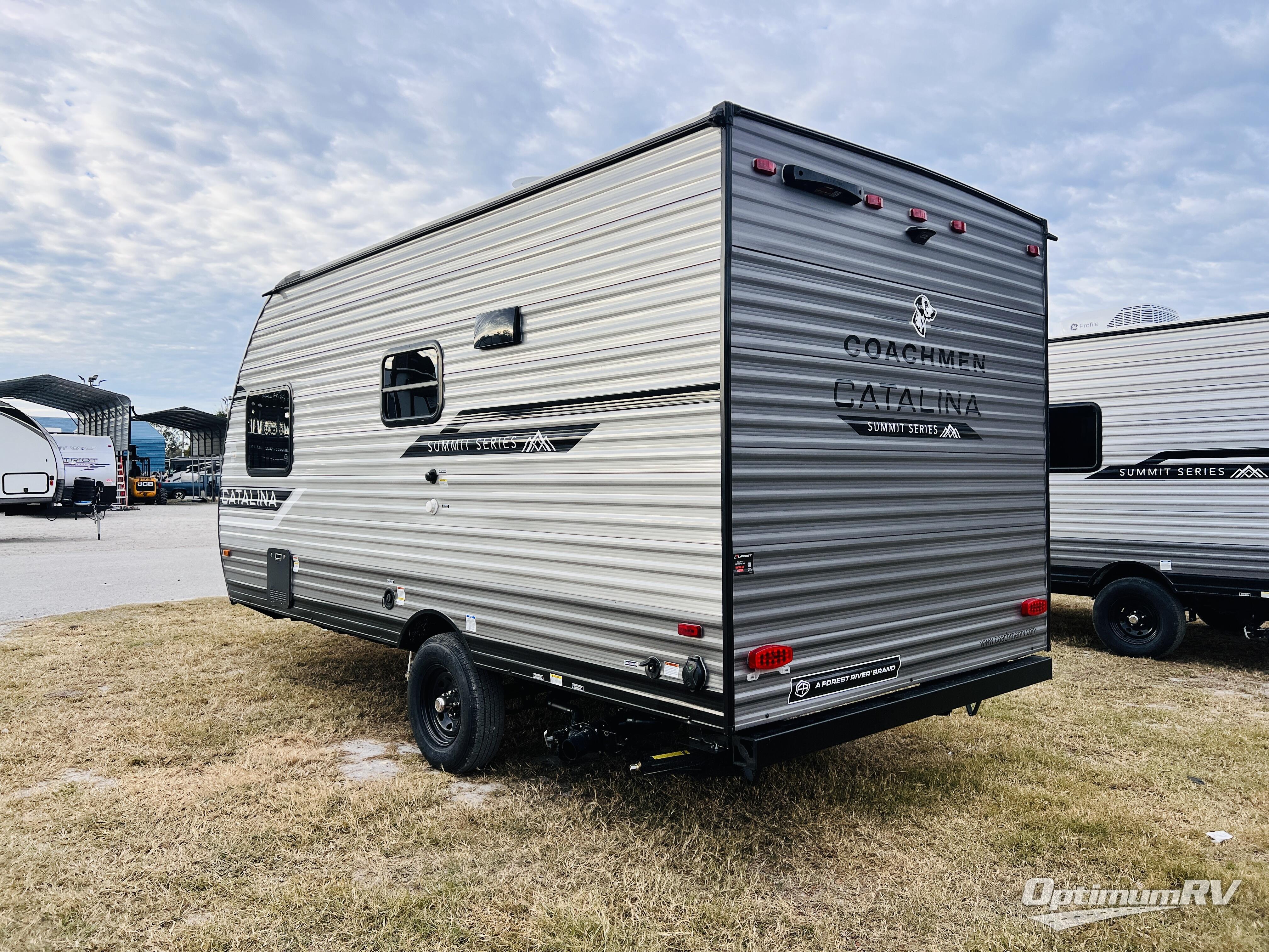 With any Catalina Summit Series 7' by Coachmen RV, you can create an easier adventure with the versatility and simplicity of the shorter lengths and lighter weights! Each includes a premium exterior graphics package, a smooth HD aluminum radius front, and EZ lube axles with leaf spring suspension. The exterior offers a heavy duty standard tongue jack, a diamond plate rock guard to protect against road debris, exterior RG-6 coax cabling and satellite prep, rear view camera prep, and flush mount baggage doors with radius corners for your outdoor gear. Inside, you will enjoy a premium JBL interior speaker, USB charging ports, seamless Thermofoil countertops throughout, a deep basin farm style sink for easy cleanup, and GE kitchen appliances. It's time to choose an affordable and maneuverable single axle trailer today!