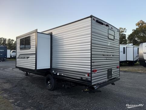 This spacious travel trailer can sleep eight campers each night thanks to the double-size bunks in the back, the U-shaped dinette within the slide out, and the queen bed up front! You can easily make meals for your crew with the two burner cooktop and microwave oven, and leftovers can go in the 10.7 cu. ft. 12V refrigerator! After you've cleaned up in the full bath, head outdoors to relax under the 15' power awning with multicolor LED lights and a remote!