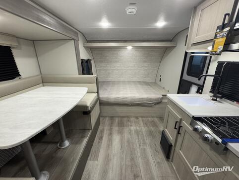 This spacious travel trailer can sleep eight campers each night thanks to the double-size bunks in the back, the U-shaped dinette within the slide out, and the queen bed up front! You can easily make meals for your crew with the two burner cooktop and microwave oven, and leftovers can go in the 10.7 cu. ft. 12V refrigerator! After you've cleaned up in the full bath, head outdoors to relax under the 15' power awning with multicolor LED lights and a remote!