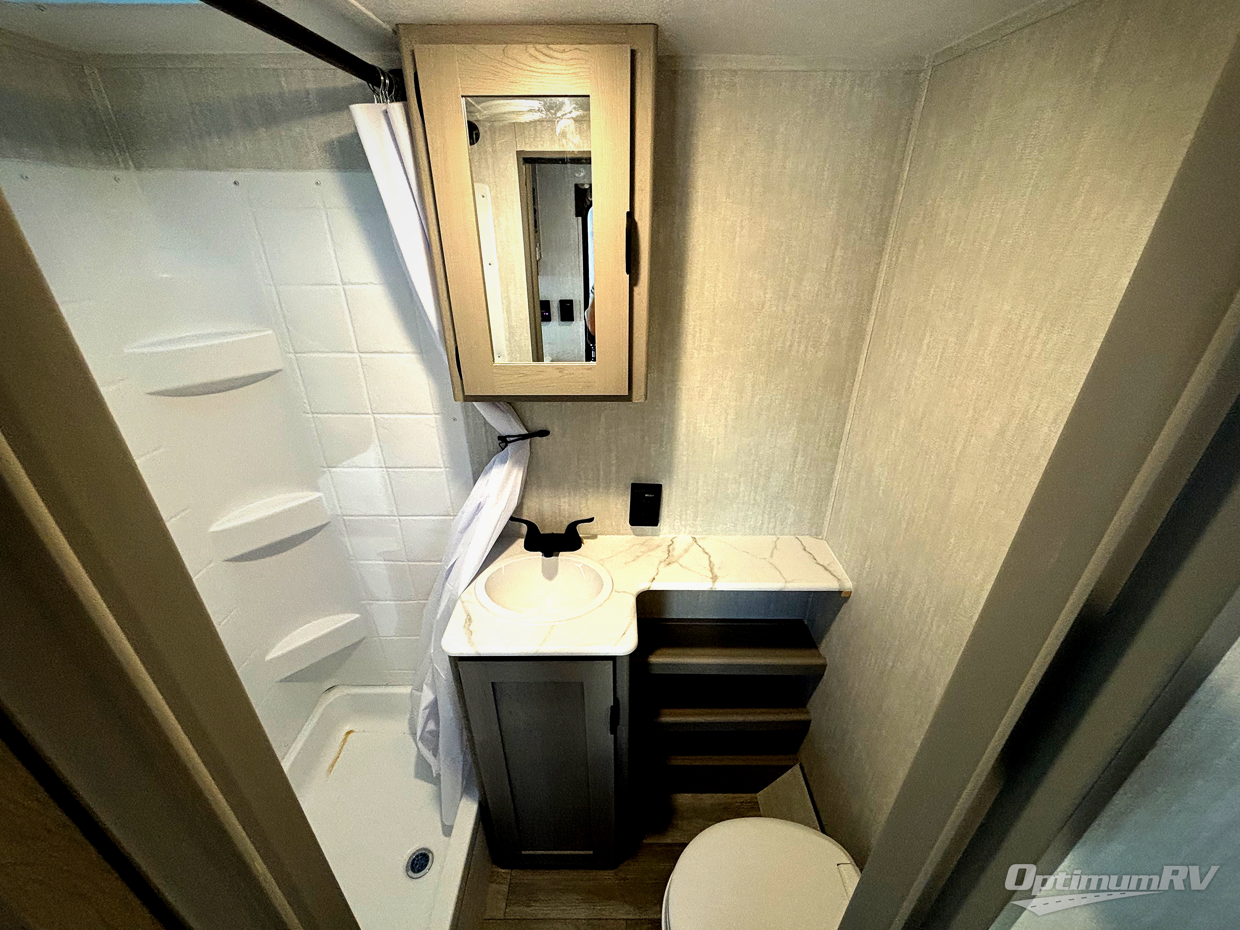 Enjoy the feeling of having your own bar thanks to the incredible bar stool and Large counter top that will allow you experience having a nice drink after a long day. Have a nice rest on the queen bed located in the front bedroom, which also has plenty of space due to its over head cabinet, dual wardrobes and private shelves besides the bed. Pamper yourself in the amazing full bath and after that have a relaxing time on the comfortable jack knife sofa.