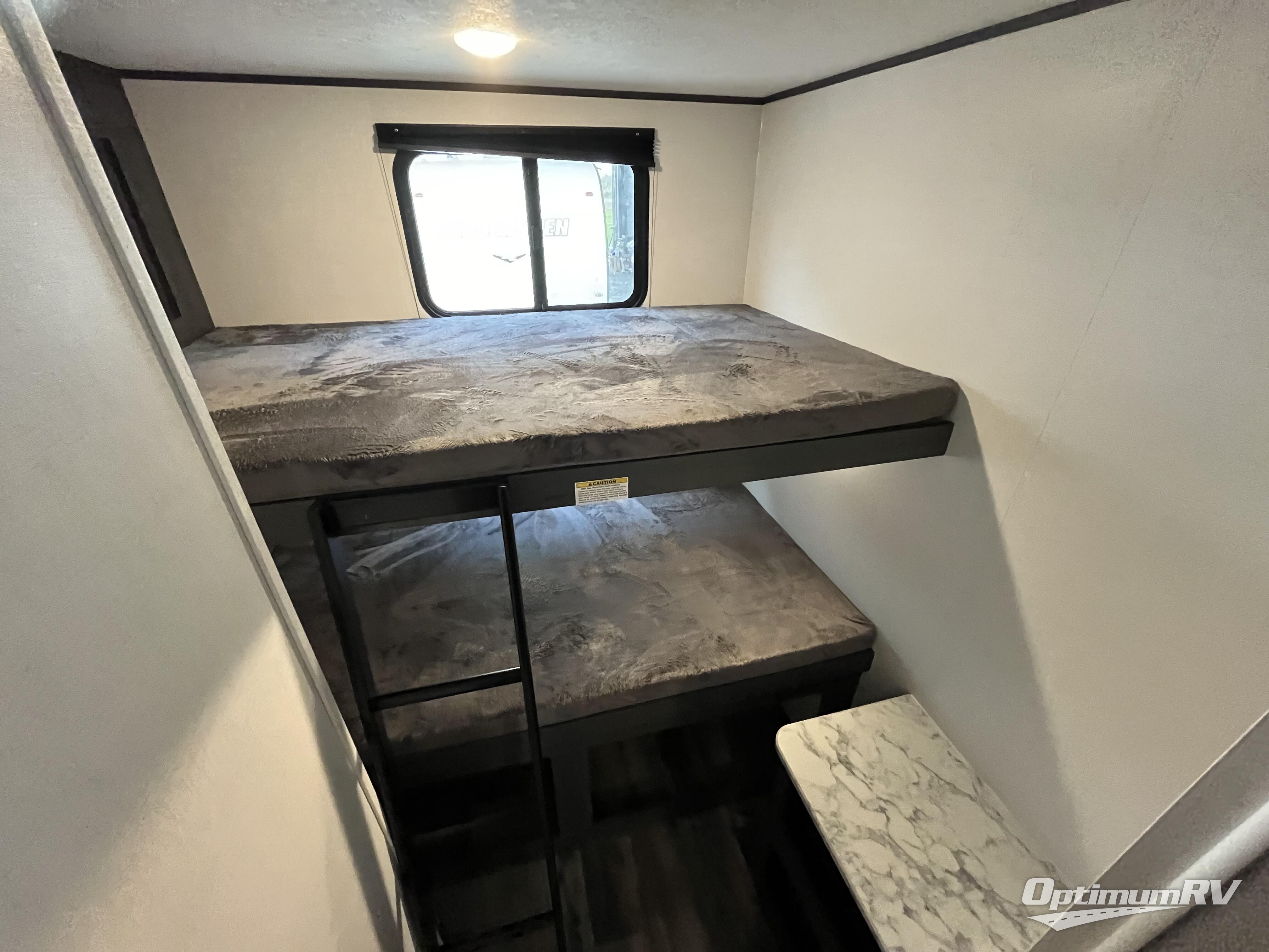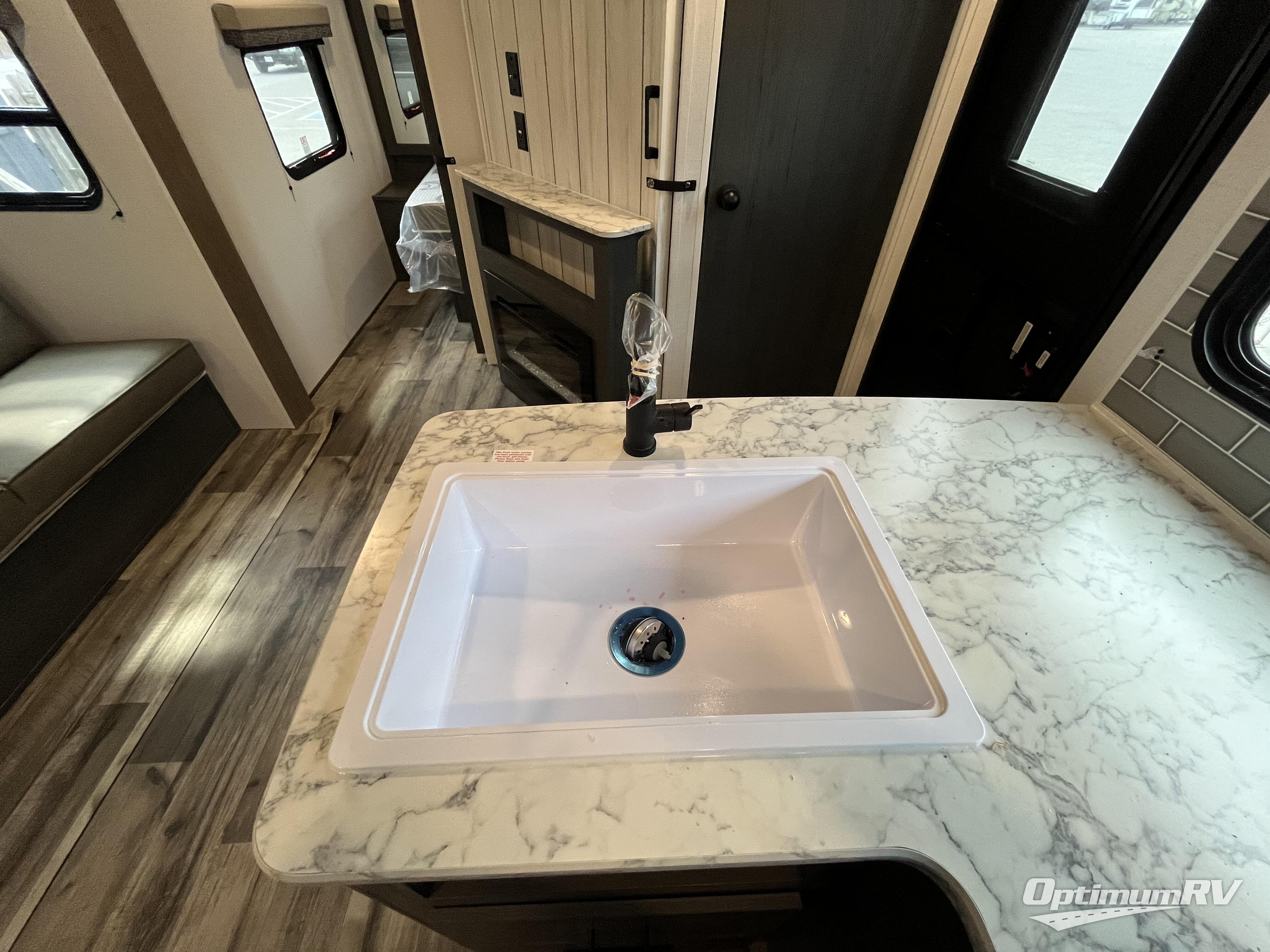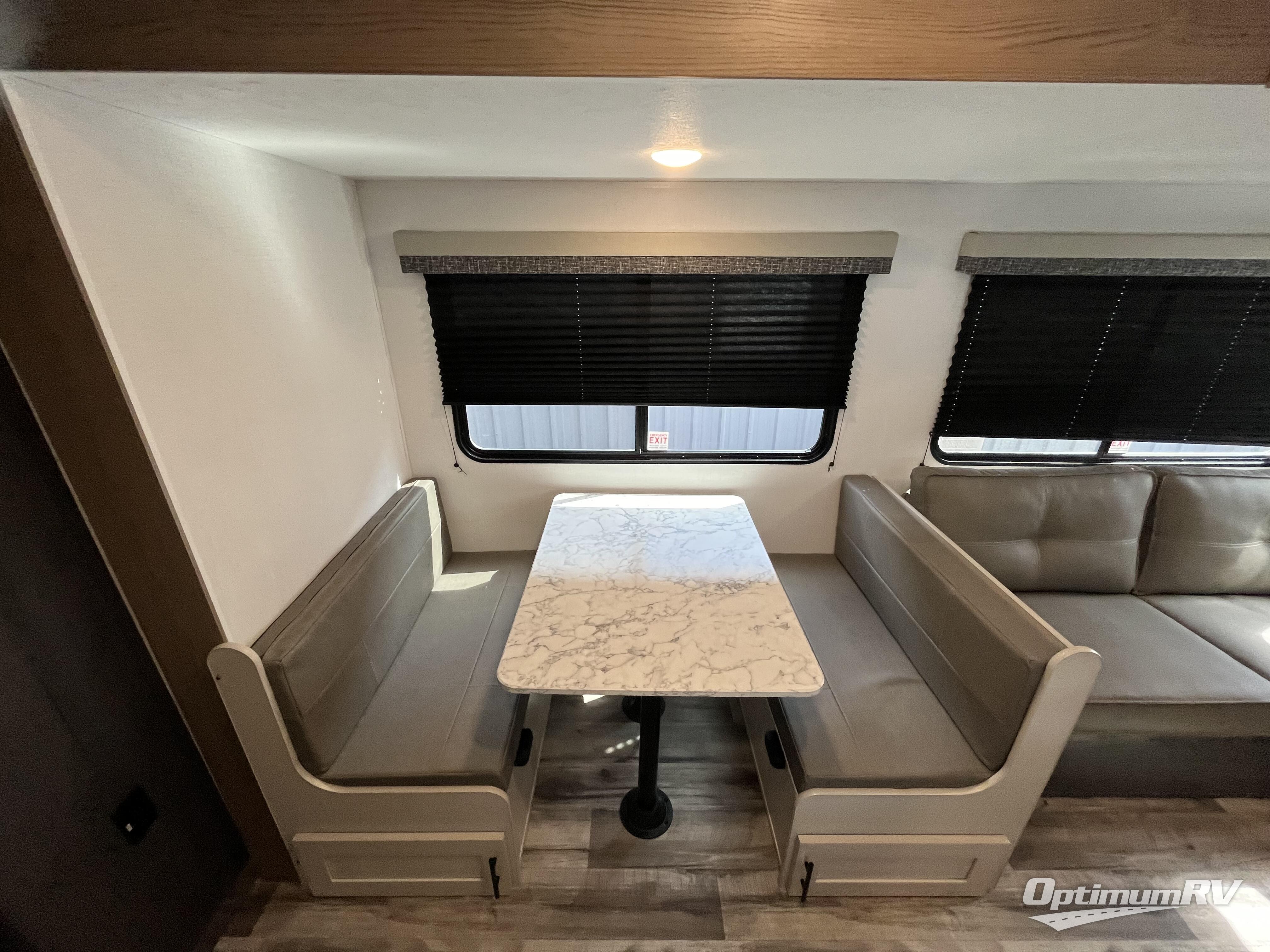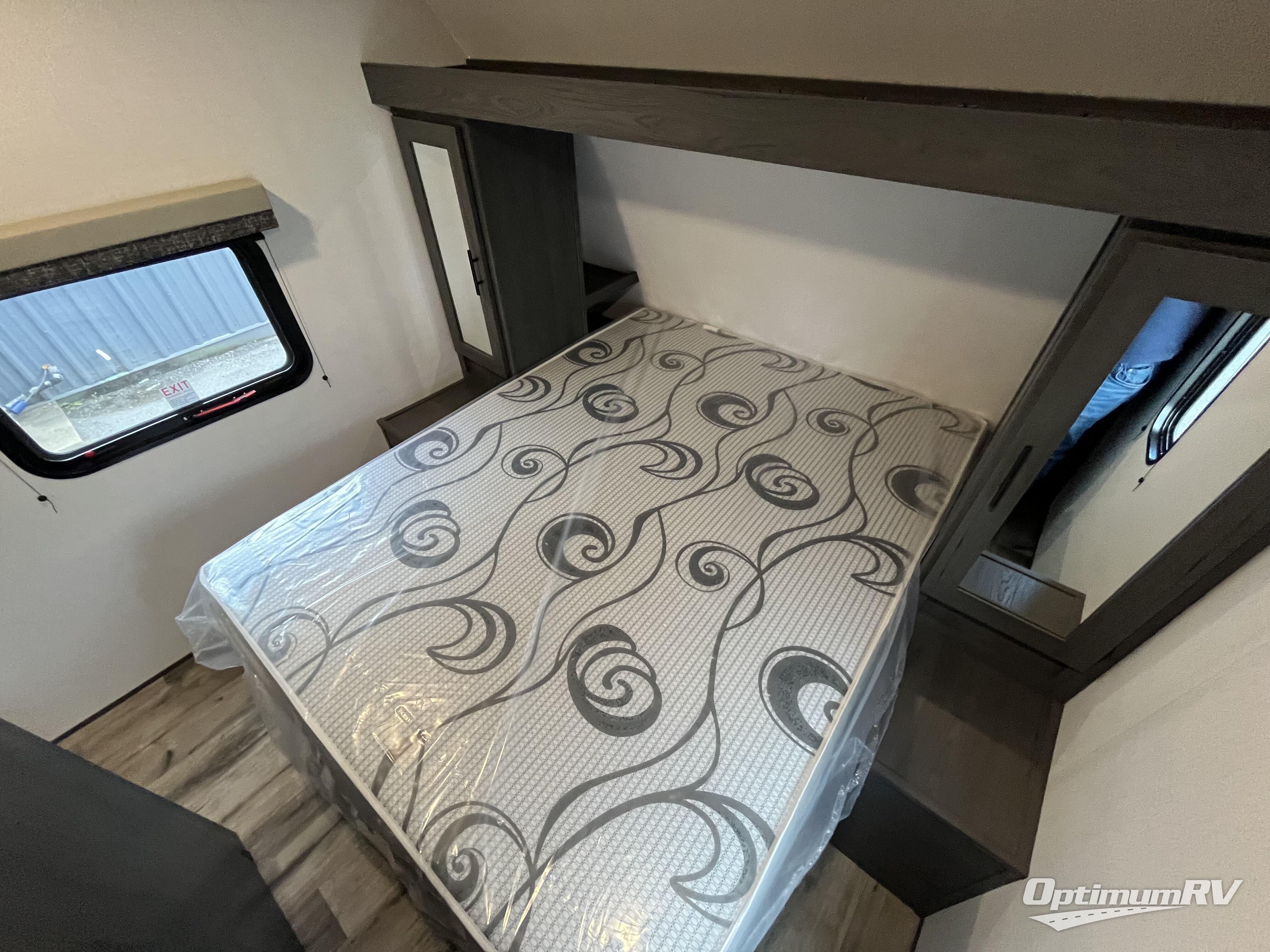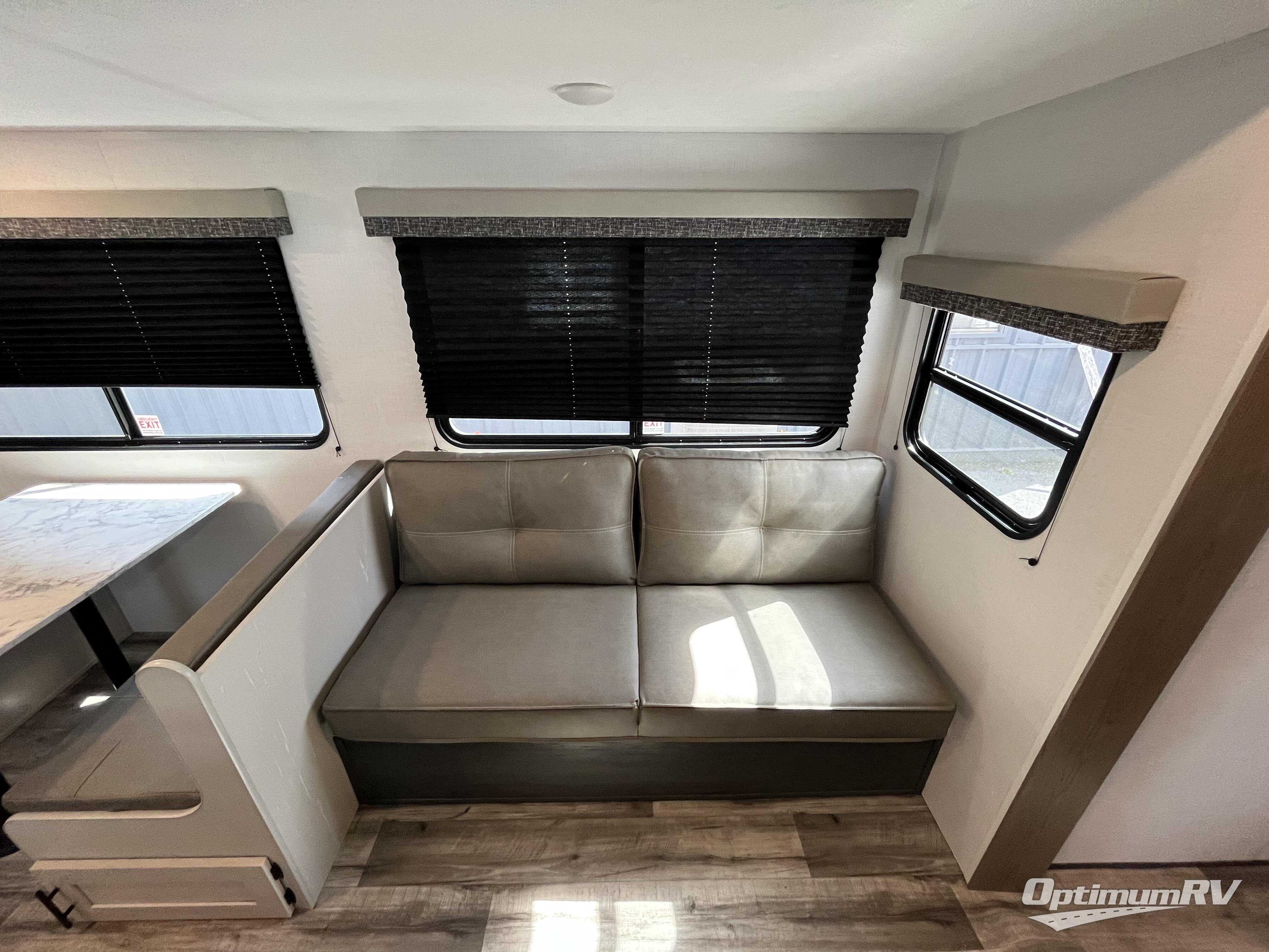 This travel trailer is one your whole crew will love! There is a rear private bunkhouse with double-size bunks for the little ones, a front private bedroom for you, and a booth dinette and jackknife sofa for even more sleeping space! The chef has their choice to cook indoors on the three burner range and microwave oven, or head outdoors to cook on the outdoor kitchen! The full bath will let everyone clean up each day, and the fireplace and large slide out will make your space feel more like home. And don't overlook the pass-through storage and 16' power awning with LED lights!