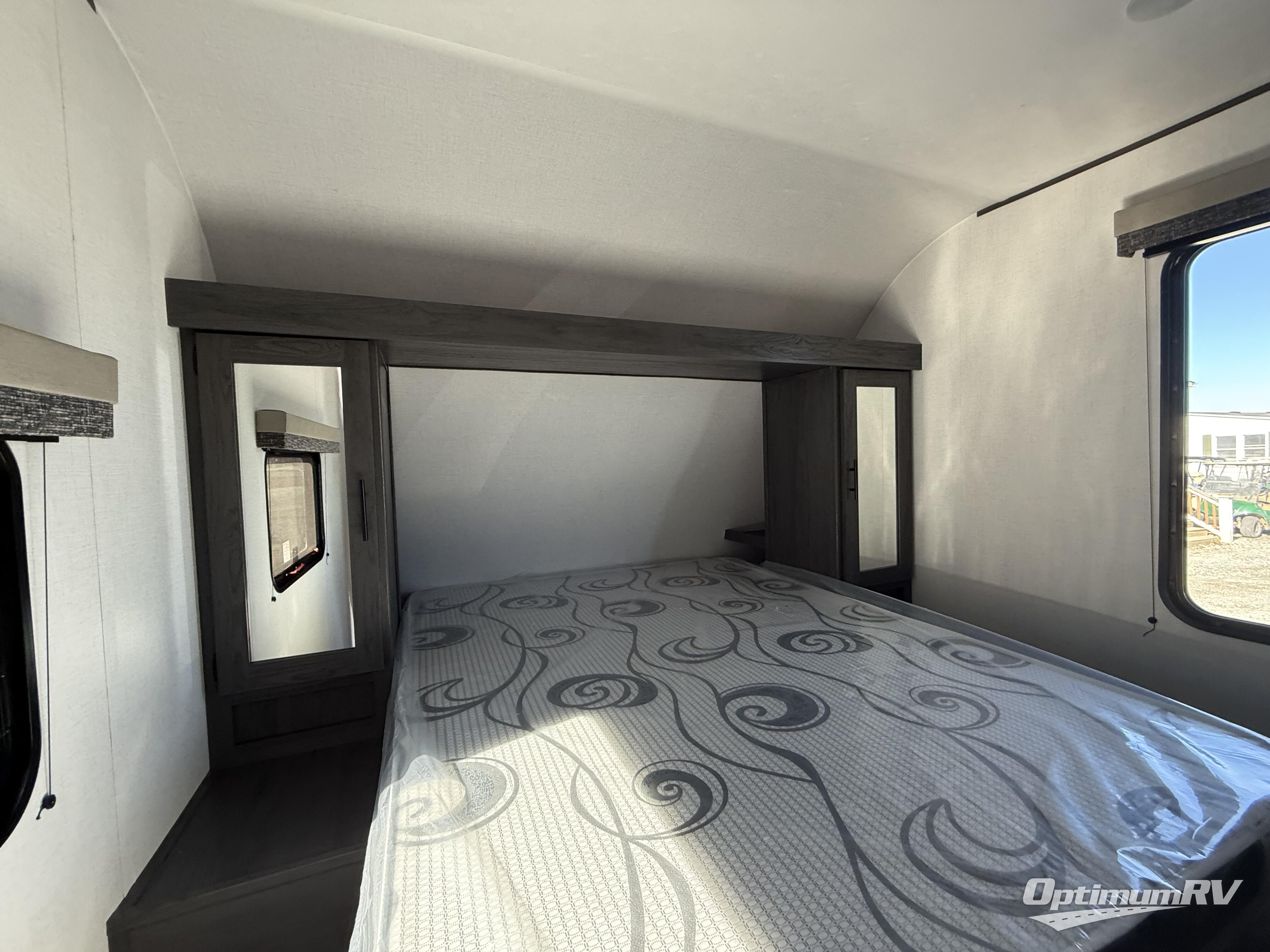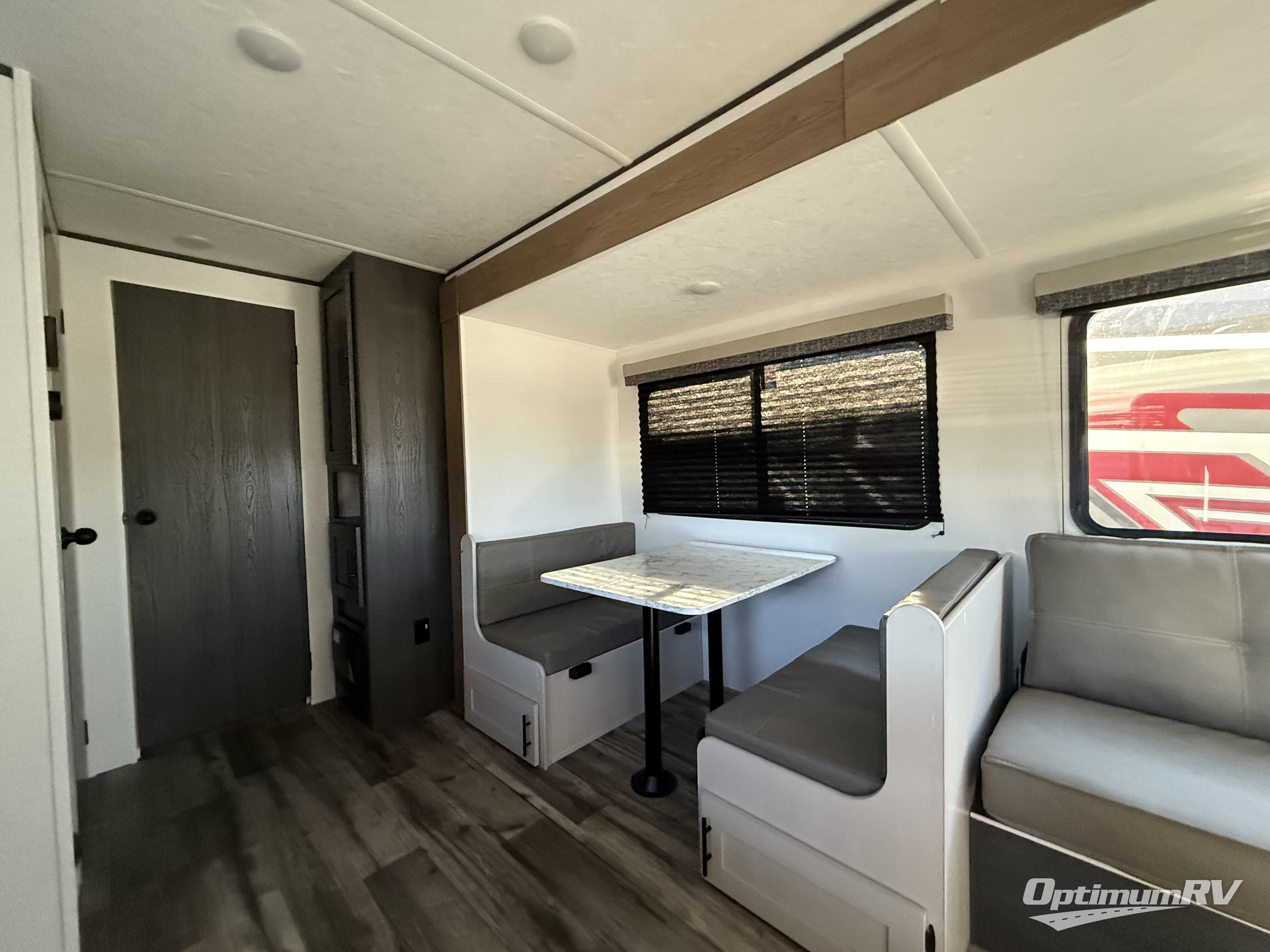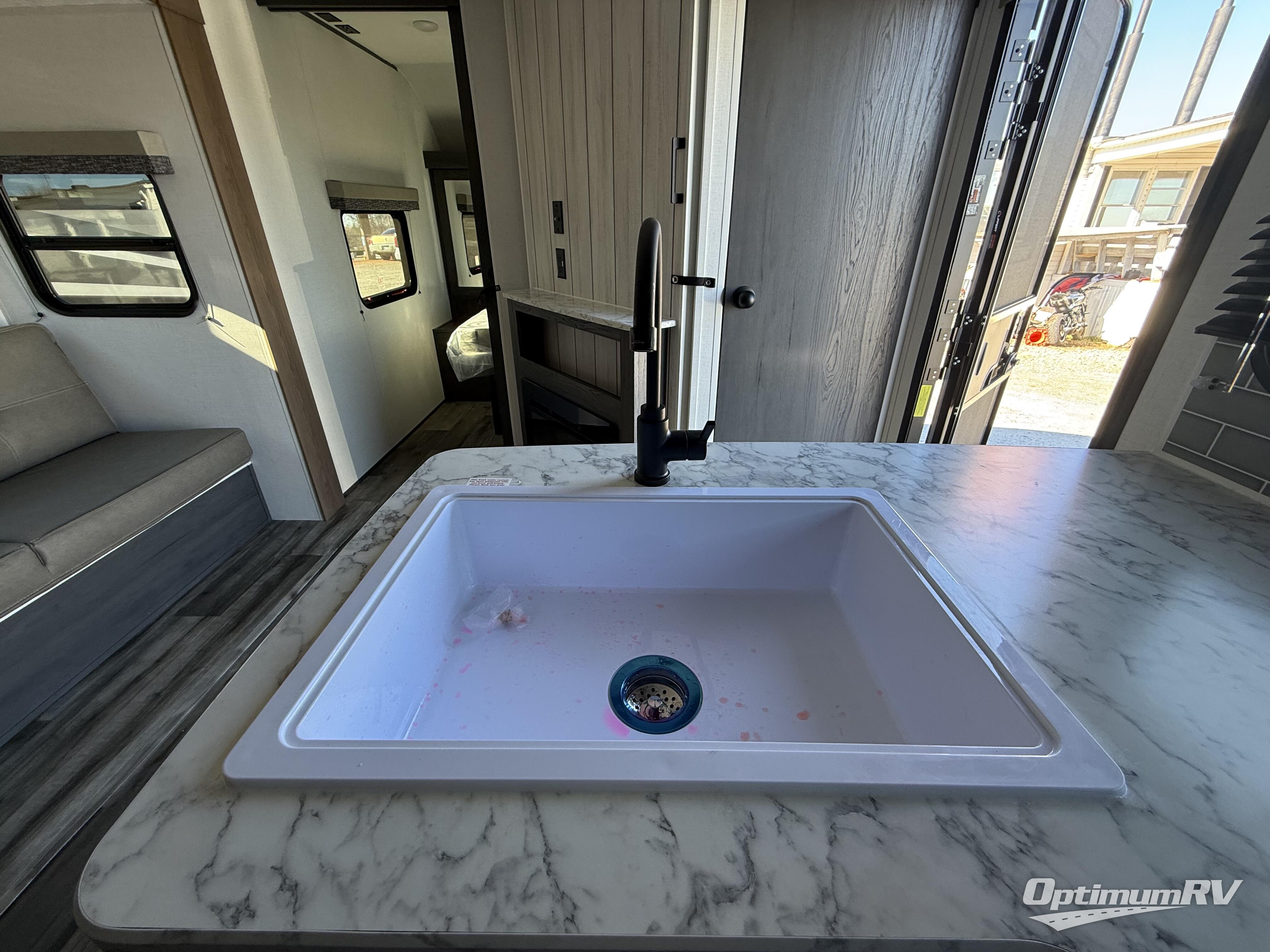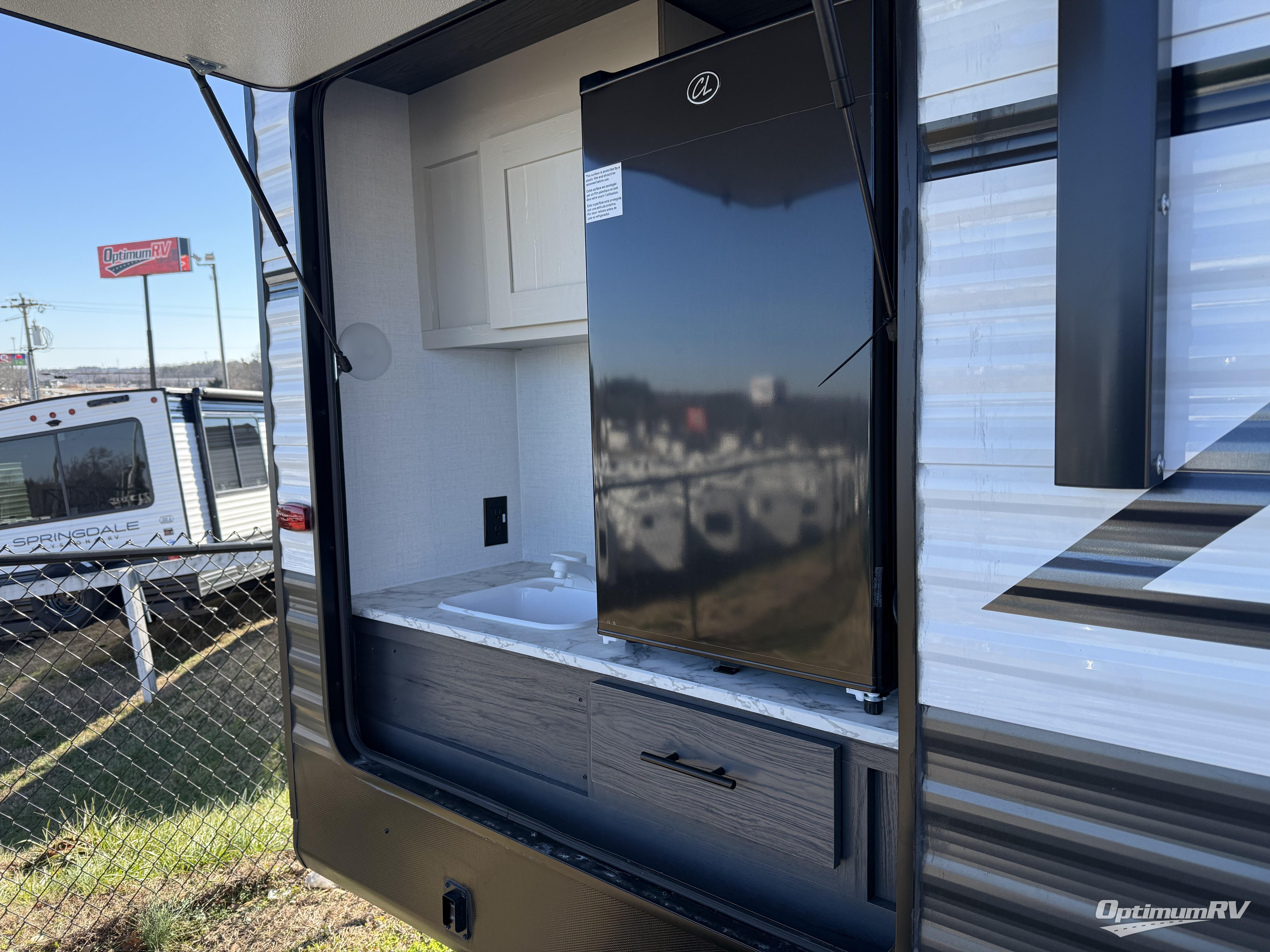 This travel trailer is one your whole crew will love! There is a rear private bunkhouse with double-size bunks for the little ones, a front private bedroom for you, and a booth dinette and jackknife sofa for even more sleeping space! The chef has their choice to cook indoors on the three burner range and microwave oven, or head outdoors to cook on the outdoor kitchen! The full bath will let everyone clean up each day, and the fireplace and large slide out will make your space feel more like home. And don't overlook the pass-through storage and 16' power awning with LED lights!