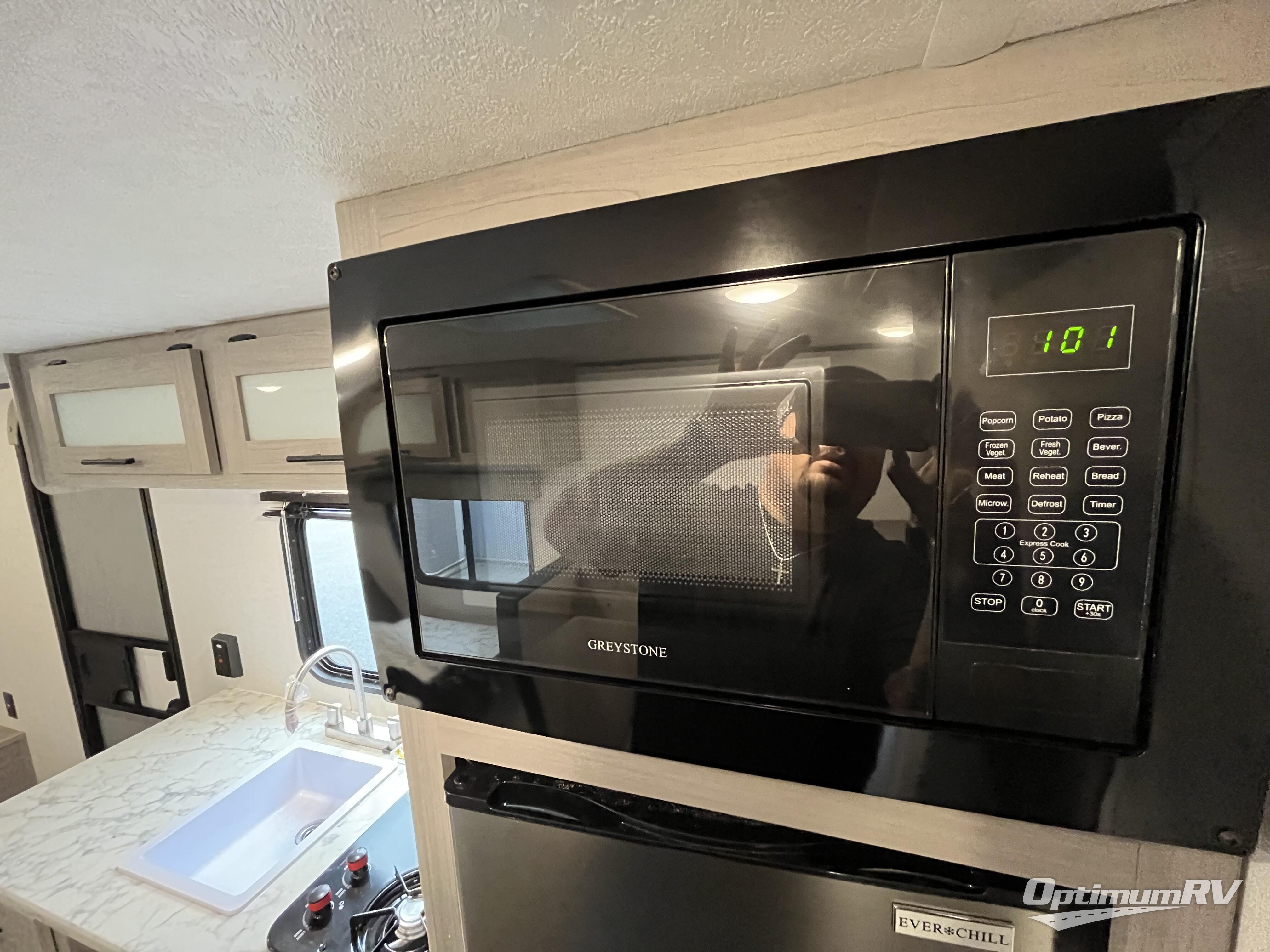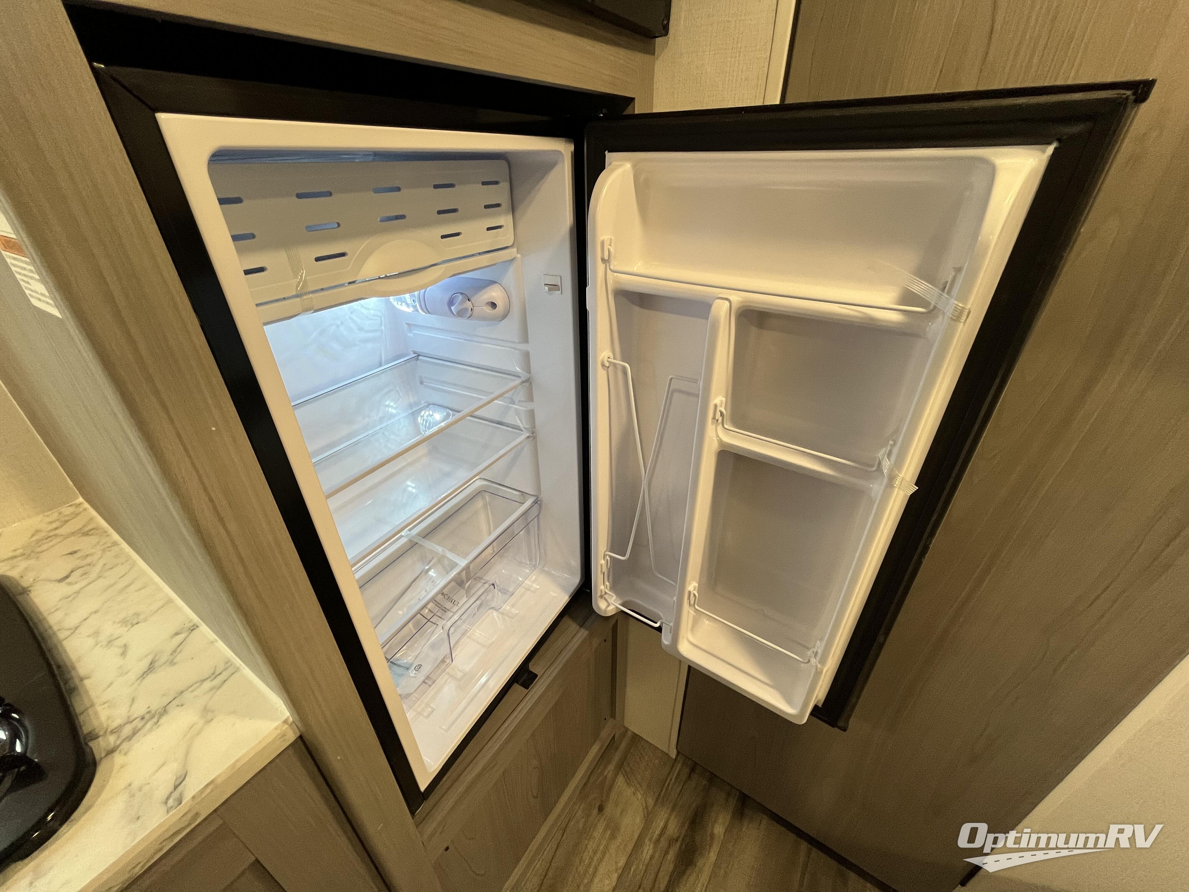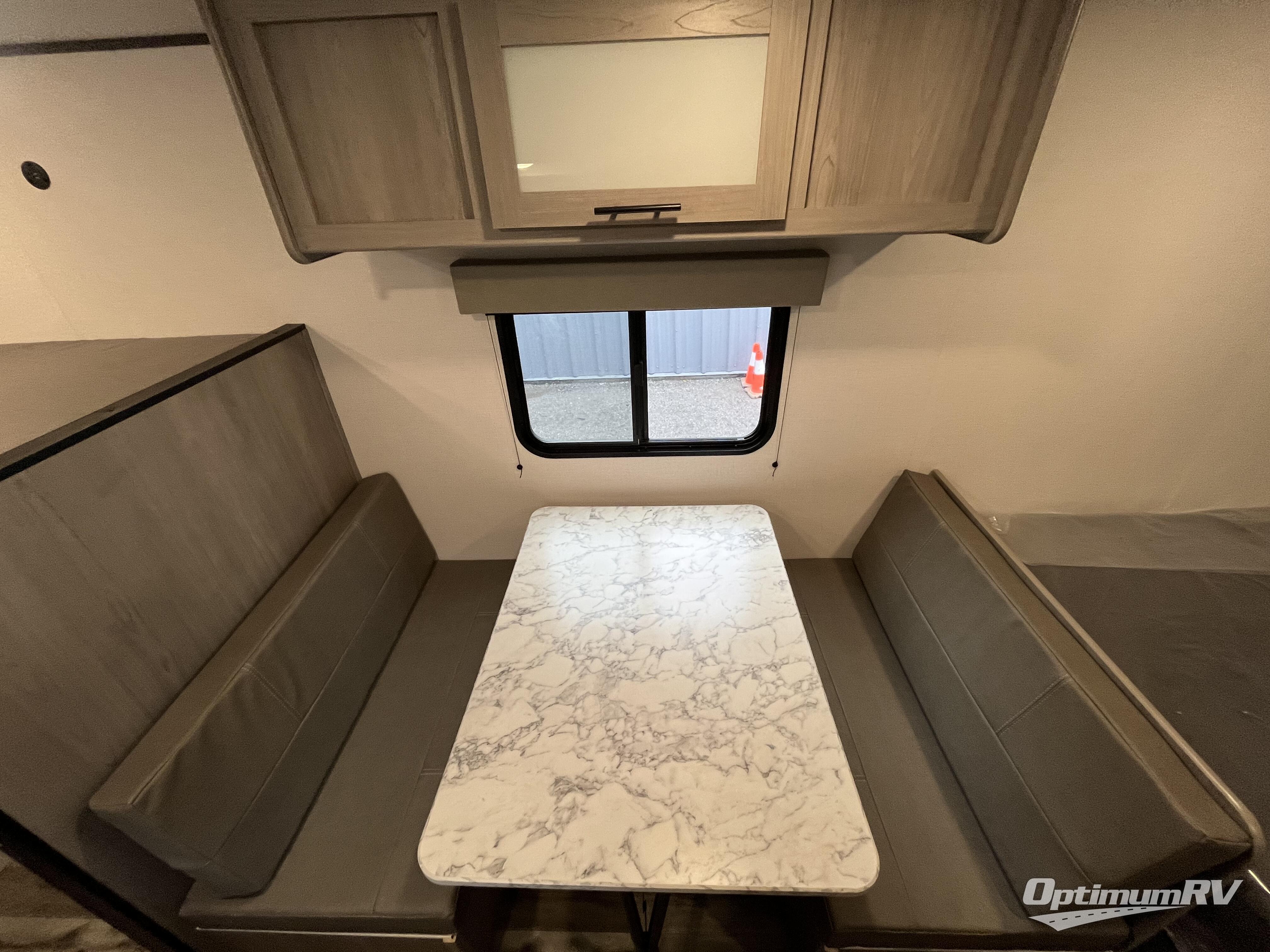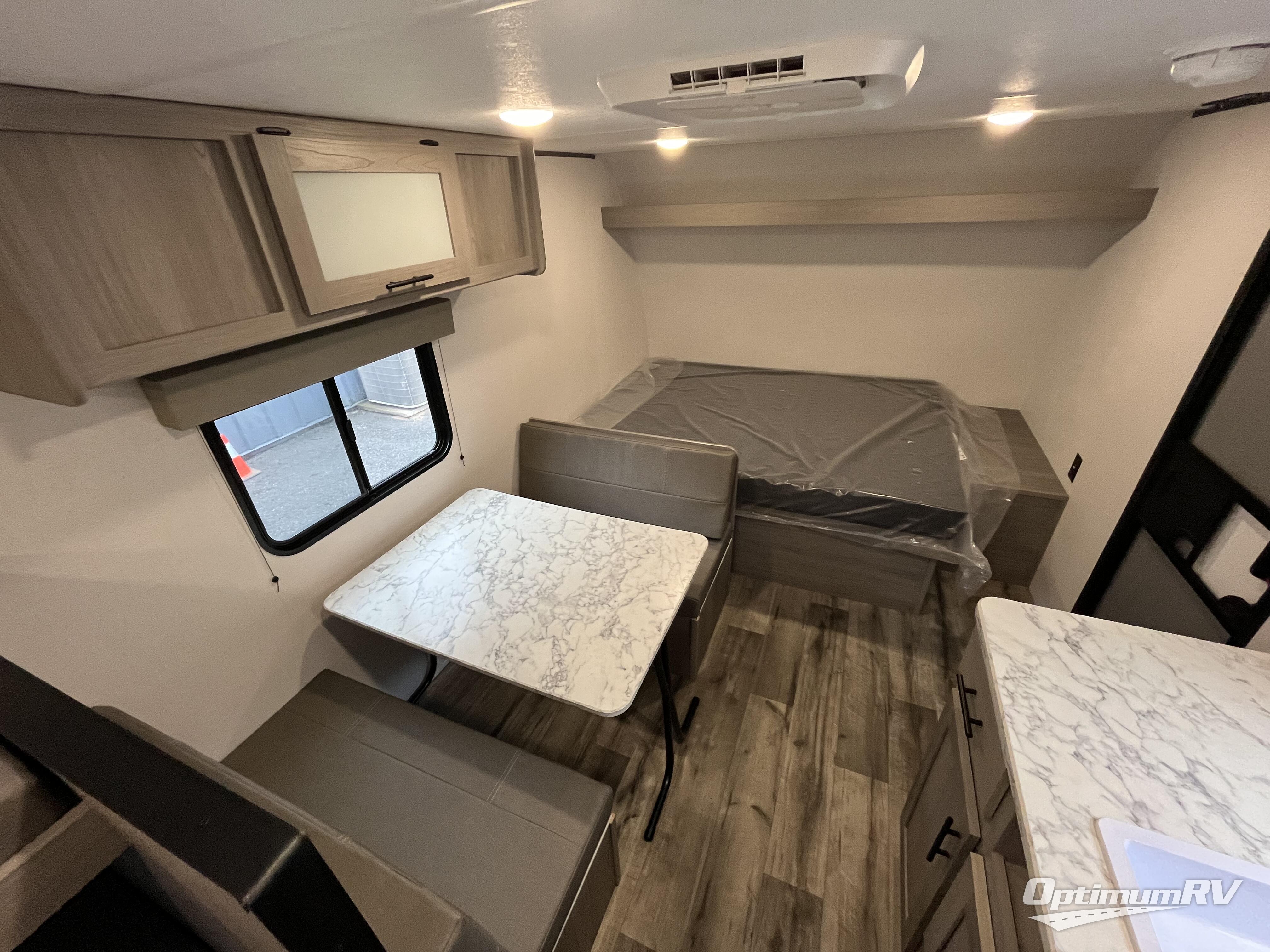 A perfect trailer for your family of three to five featuring a set of bunk beds for the kids, a queen bed up front for you, and the booth dinette that can be converted to sleep one or two more depending on size. For meals, there is a two burner cooktop and sink, plus a 3.3 cu. ft. refrigerator for your perishables. Overhead cabinetry can be found along both sides for your dishes and things. You will all appreciate the convenience of having your own private shower and toilet so that you don't need to use the campground facilities at night. If you enjoy spending time outside, an awning is available to provide even more living space outdoors!