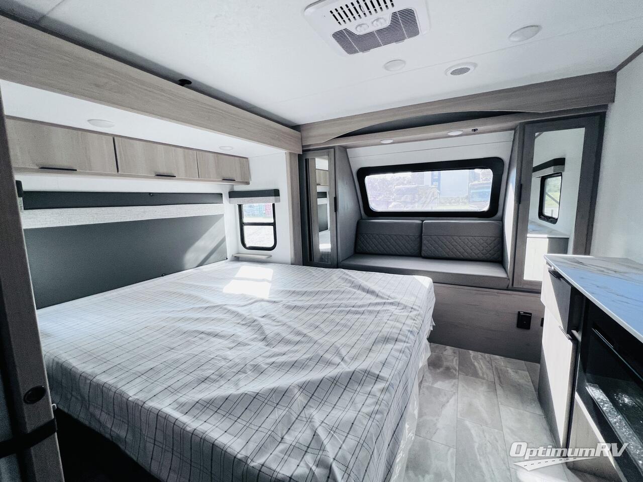 You will feel right at home in this spacious travel trailer that can sleep five people each night. The kitchen island includes a stainless kitchen sink, a three burner cooktop, plus a 10 cu. ft. 12V refrigerator for perishables. There is also an outside kitchen, which will make the outdoor cook very happy! The pass-through storage will be perfect for bringing along fishing poles or hiking gear, and there is a 20' power awning with LED lights if you enjoy relaxing outdoors in the evenings. Get cleaned up in the walk-through bath before heading off to the front master bedroom each night. You'll love the slide out king bed, the bedroom fireplace, and the front bench seat to read a book or two!