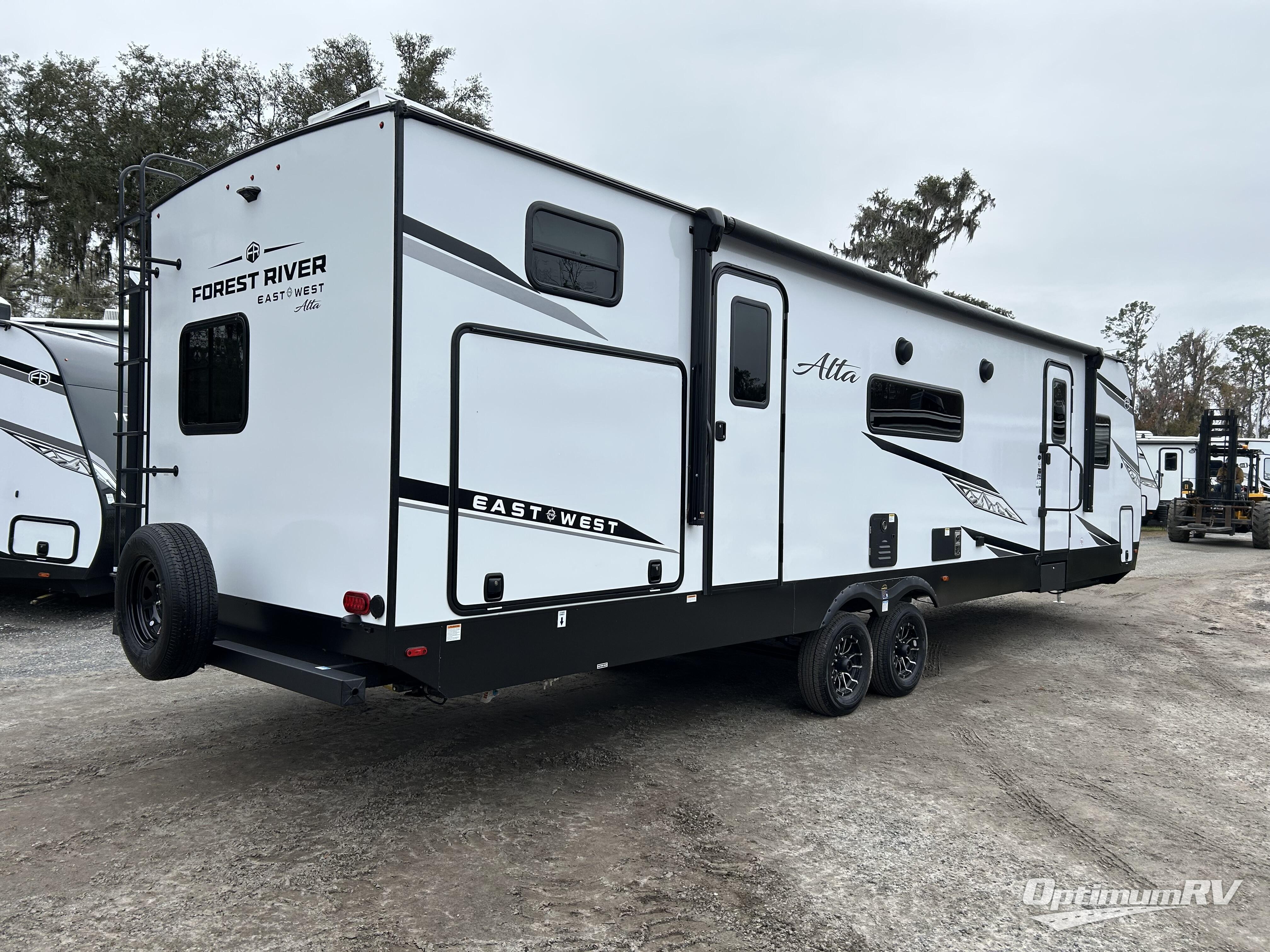 Each Alta travel trailer or toy hauler by EAST TO WEST is constructed with a 5" vacuum bonded roof, an enclosed and heated underbelly, and diamond plate front rock guard for added protection. Outside, you'll find marine-grade exterior speakers, a universal docking station, and back-up camera prep that can be added to make maneuvering in and out of campgrounds easier than ever. Inside, there are 4k interior LED lights, solid pressed membrane countertops, black roller shades, and many more interior comforts you are sure to love.