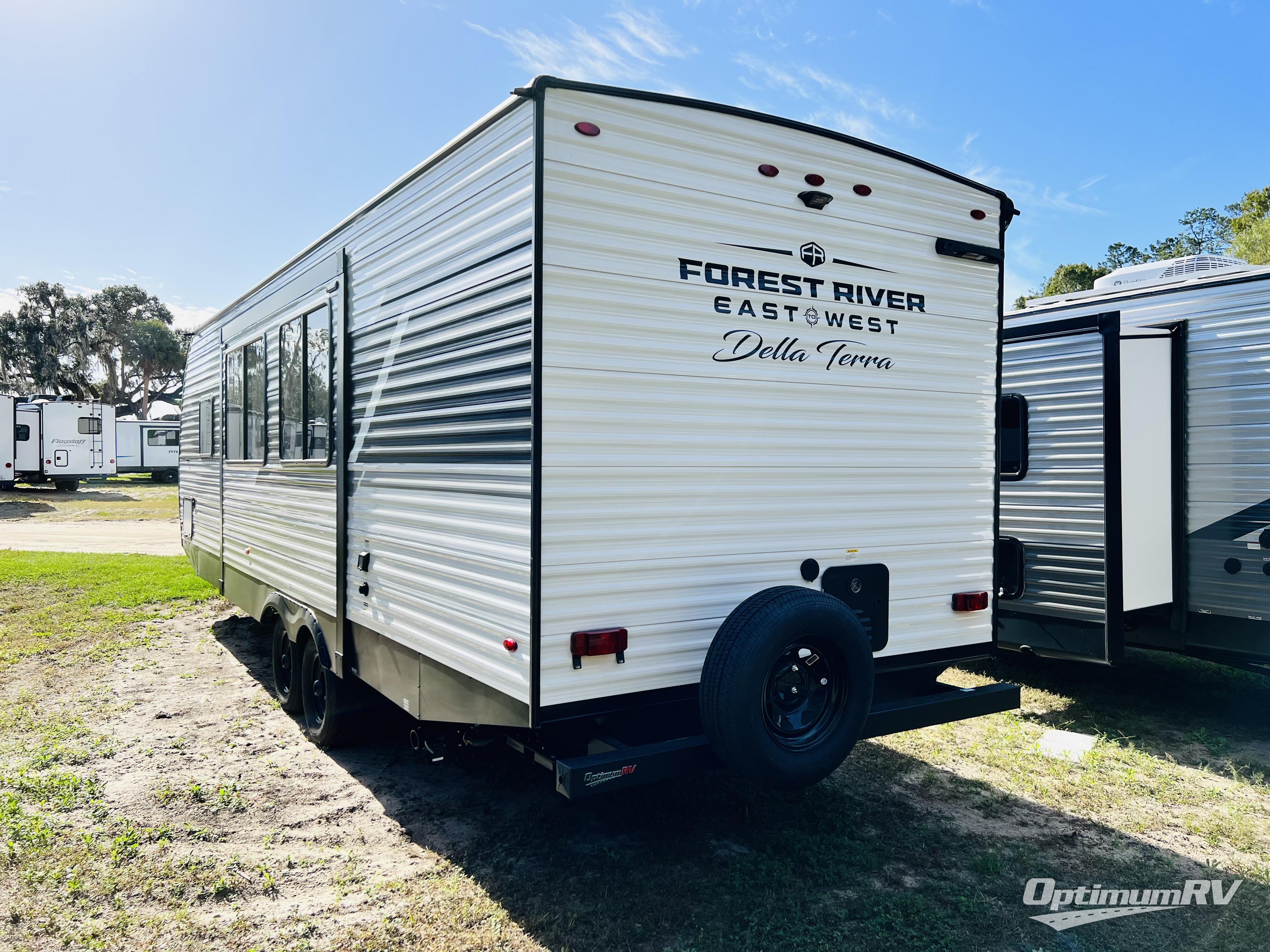 Each Della Terra travel trailer by EAST TO WEST is constructed with an enclosed and heated underbelly and enclosed holding tanks so you can camp all year long. There is also a power tongue jack with an LED light for easy set up and a power awning with LED lights you can rest under after you've unpacked. The Explore Comfort Package comes seamless pressed countertops, kitchen backsplash, window valance package with black night shades, and many more comforts. You will also appreciate the Adventure Outdoor Package with backup camera prep and solar prep, a tankless water heater, an RV grill quick disconnect, and a universal docking station with battery disconnect.