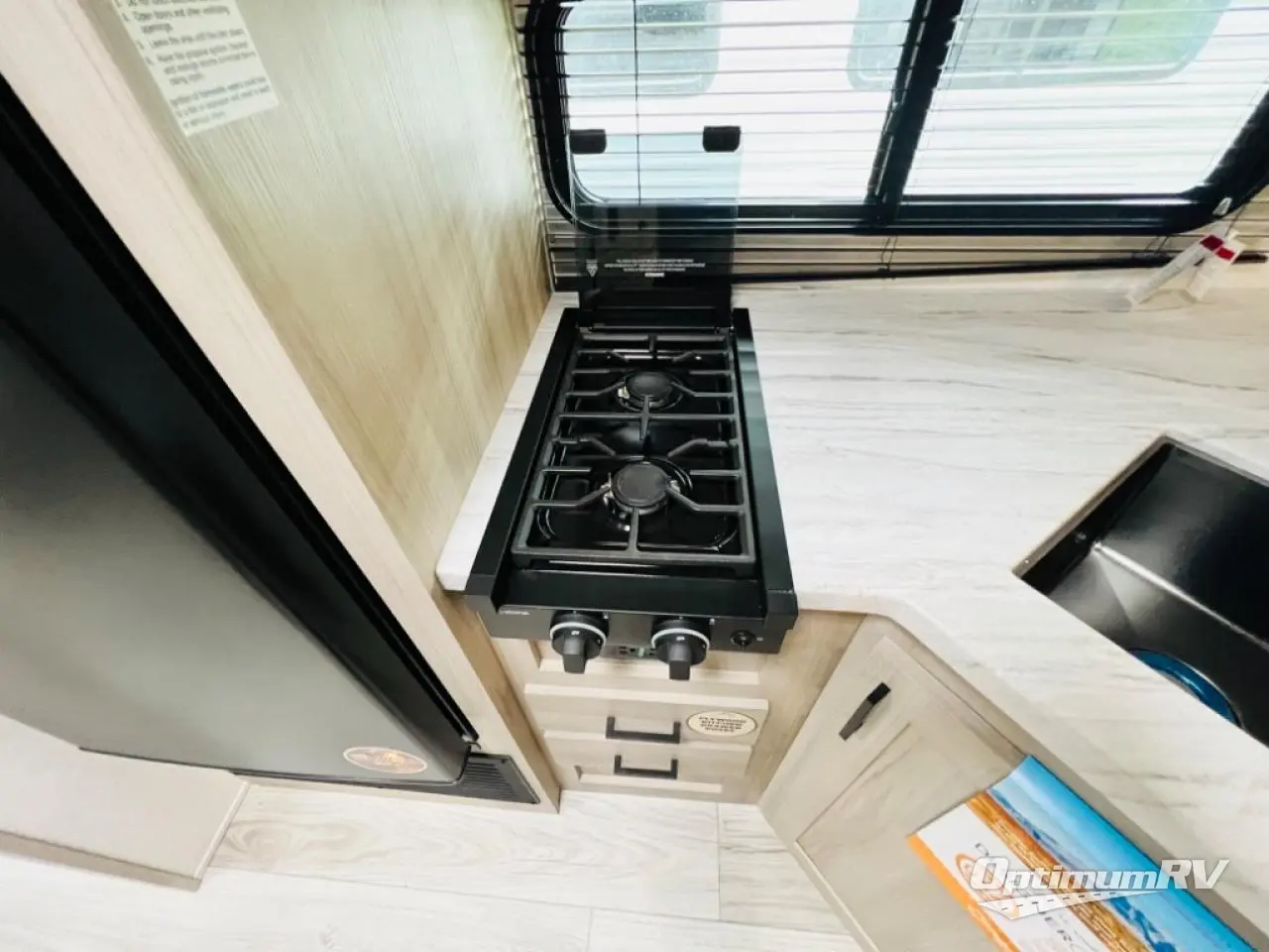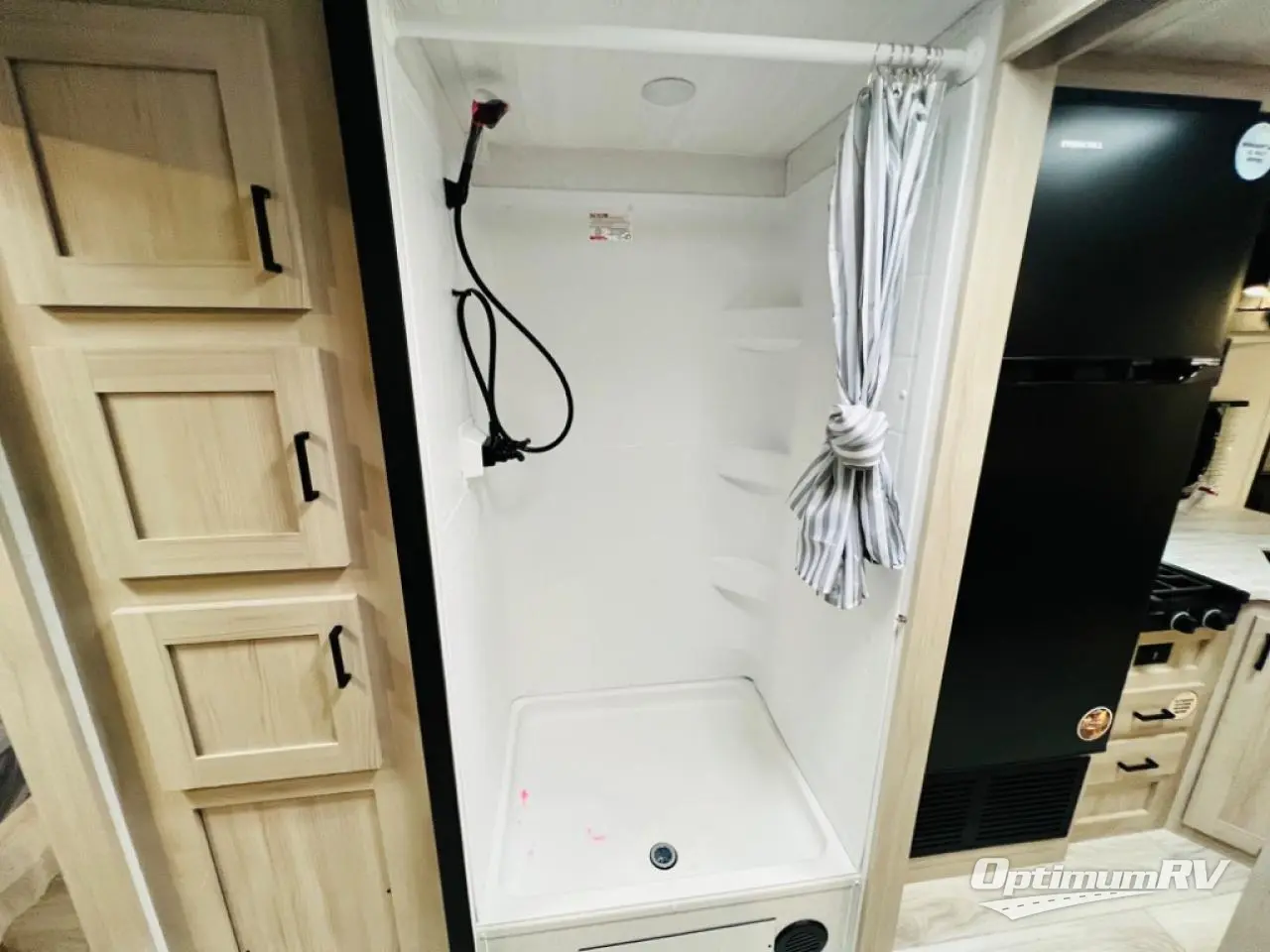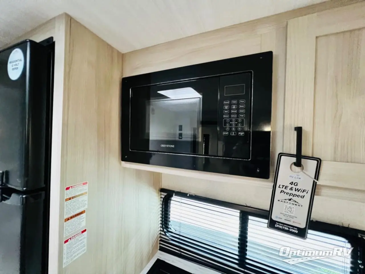 With any Della Terra LE travel trailer by EAST TO WEST, there is USA manufactured furniture, seamless countertops (no T-mold), and a 10.7 cu.ft. frost-free 12 volt refrigerator for your perishables. A Solera power awning with adjustable legs and LED light strip will also provide you with a great outdoor living area protected from both the sun and rain, and the outside hot/cold shower will let you easily wash off hiking gear or fill the dogs water bowl. These trailers also include Furrion back up camera prep, On The Go ladder prep, and slide out awning prep that will allow you to add these features to make your camping experience easier than ever. An optional power tongue jack can also be chosen for easy towing, as well as the optional Solar Package to enjoy some off-grid capabilities!