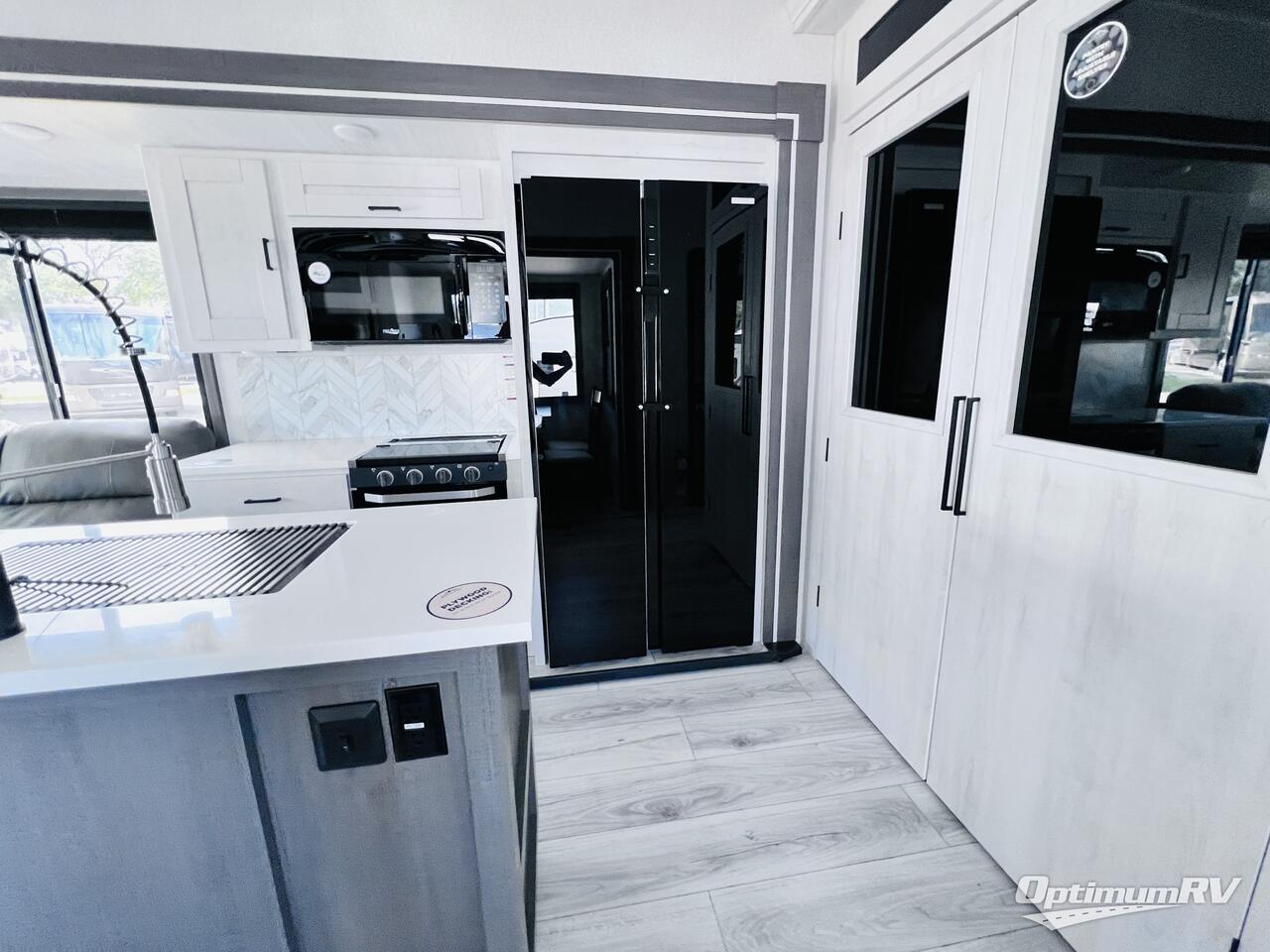 At any point you want to get away to your favorite secluded spot, you can grab your EAST TO WEST Tandara fifth wheel and head out because it has a 4 Seasons Package that will keep you protected during all seasons! There is a MORryde CRE 3000® suspension that will make traveling smooth, and the MORryde StepAbove entry steps provide a stable entrance into the unit. The Tandara has been prepped for a rearview camera, and the interior is very stylish with its artisan maple décor. Some of the luxury features you'll find are the shaker style cabinet doors, deep-seated stainless steel farmhouse sink, plus dimmable LED lights in the living area, kitchen, and bedroom!