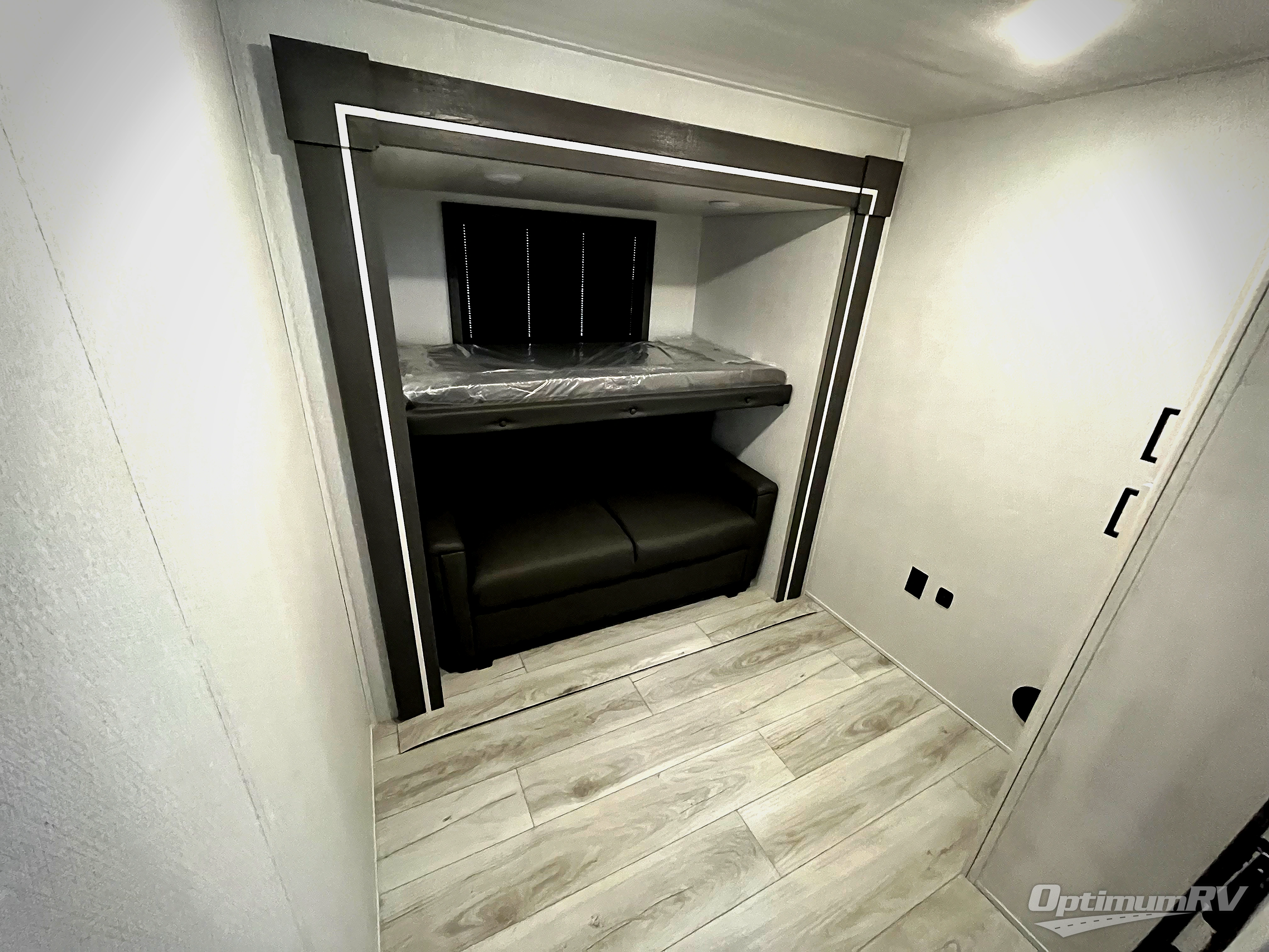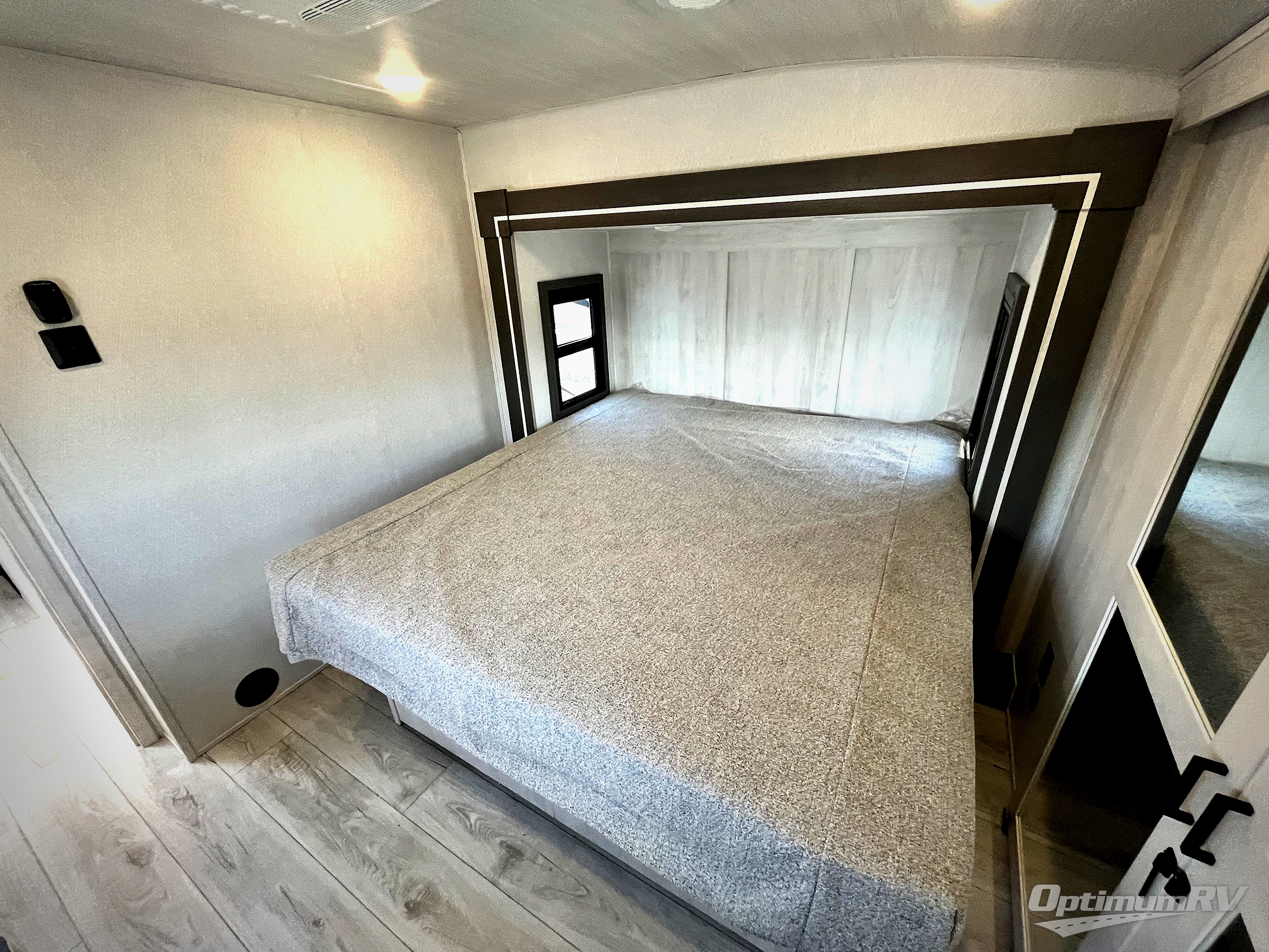 There is so much to fall in love with on this Tandara fifth wheel! From the front master suite with a full-width wardrobe and king bed slide to the spacious living area with opposing slides, theater seating, and a hide-a-bed sofa, there is quite a lot of comfort and convenience. The central bunkhouse comes with a fold-down bunk, hide-a-bed sofa, desk, and closet so that your kids or your guests can have some added space to work or play, and the loft above the bunkhouse adds room for more campers to sleep. Everyone will benefit from the 50" LED TV and fireplace, and the 16 cu. ft. 12V refrigerator is going to provide you with plenty of space to store your fresh fruits and veggies.