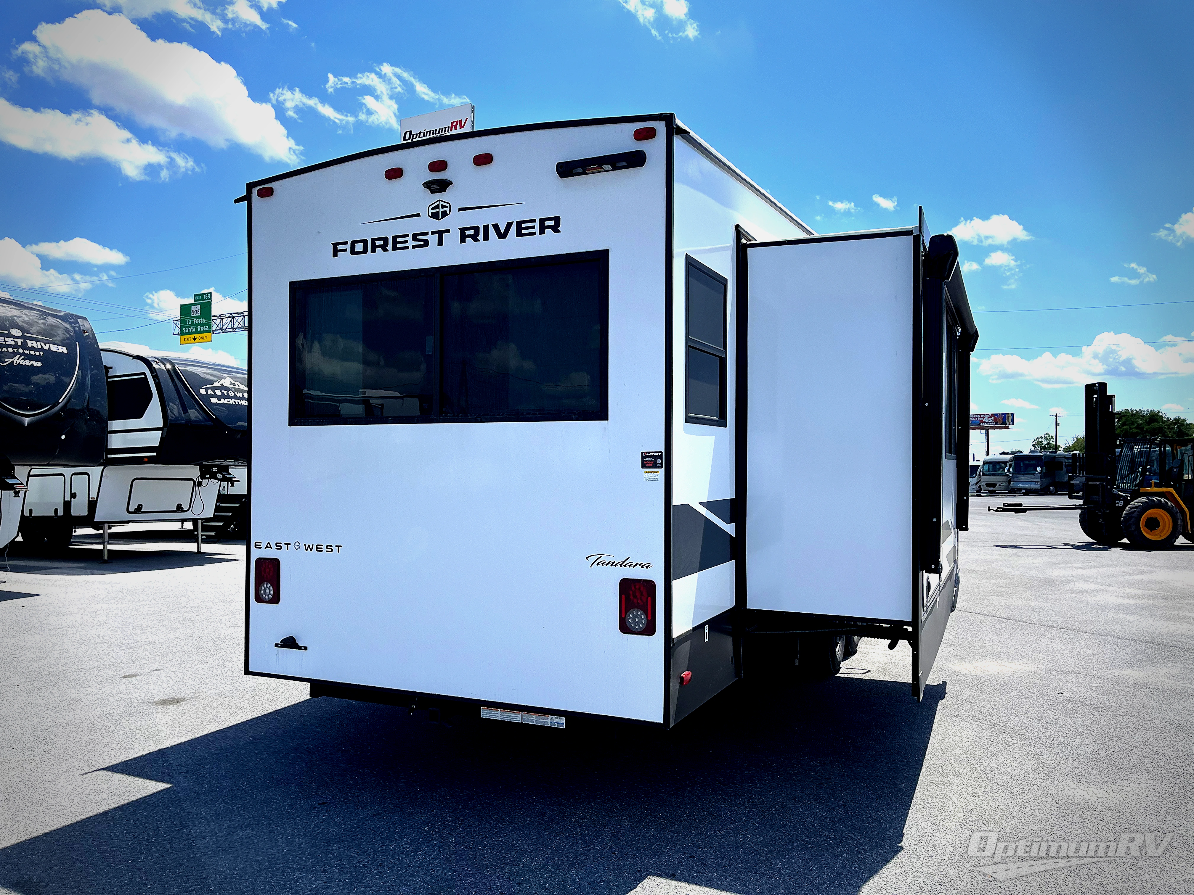 At any point you want to get away to your favorite secluded spot, you can grab your EAST TO WEST Tandara fifth wheel and head out because it has a 4 Seasons Package that will keep you protected during all seasons! There is a MORryde CRE 3000® suspension that will make traveling smooth, and the MORryde StepAbove entry steps provide a stable entrance into the unit. The Tandara has been prepped for a rearview camera, and the interior is very stylish with its artisan maple décor. Some of the luxury features you'll find are the shaker style cabinet doors, deep-seated stainless steel farmhouse sink, plus dimmable LED lights in the living area, kitchen, and bedroom!