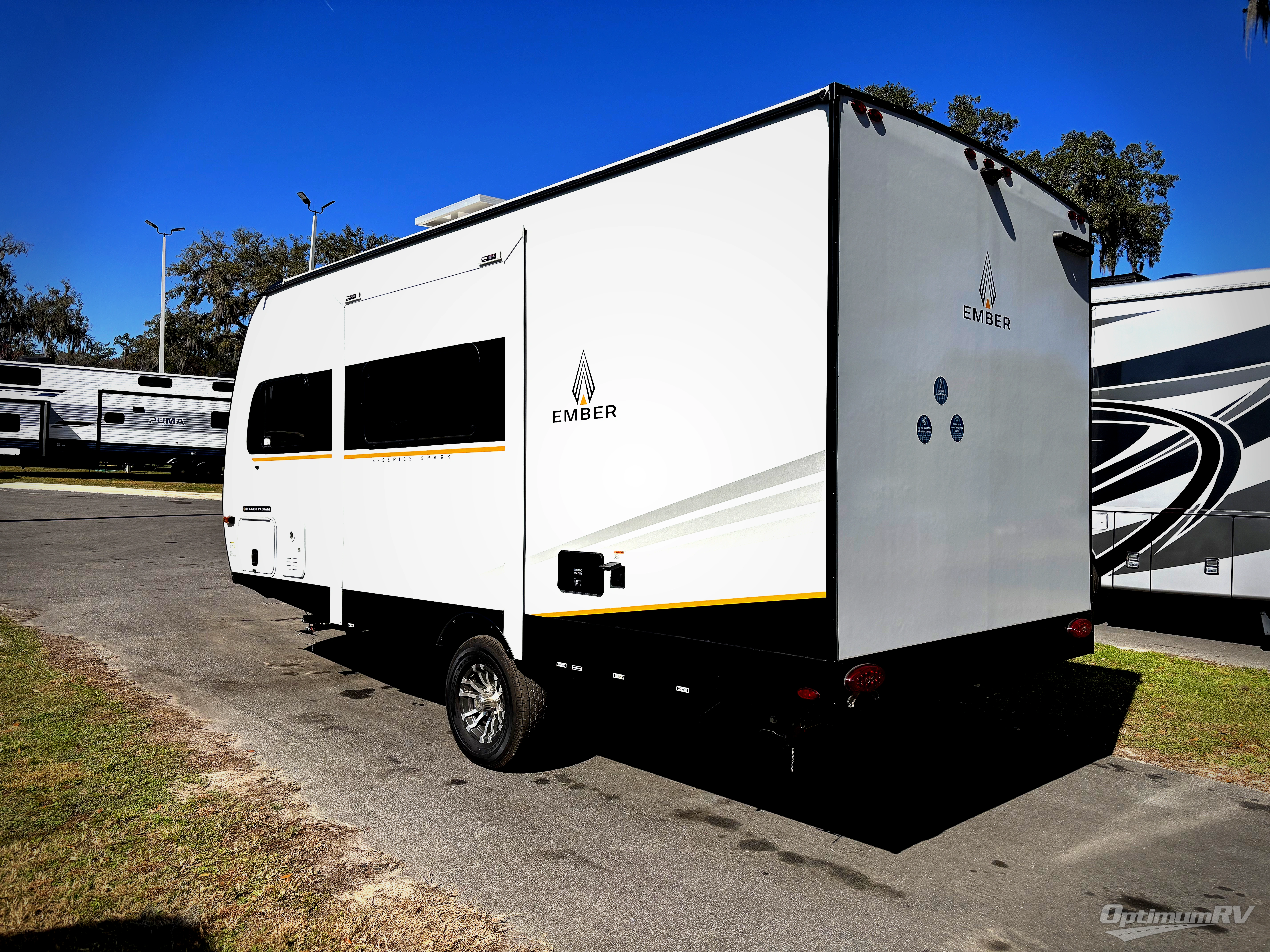 With any E-Series travel trailer by Ember RV you will enjoy a lightweight RV with all the "Essentials" needed for memorable trips in the great outdoors! Each model is constructed with durable laminated Azdel Onboard composite walls, a full walkable roof with a one-piece Tufflex PVC roofing material, and a gel-coated fiberglass exterior. The Dexter axles with E-Z lube hubs and forward self-adjusting electric brakes plus Goodyear Endurance tires will provide a smooth tow from home to campground. You will appreciate the Congoleum DiamondFlor "carpetless" interior that is easy to clean, and the hardwood framed cabinet doors will create a more residential feel. Each model includes a tankless on-demand water heater for endless hot showers and an 18,000 BTU Max Cool "Whisper Quiet" A/C, which is the largest single A/C in its class! If you're looking for off-grid capabilities, you might want to choose the optional Off-Grid Solar Package with 400 total watts of solar panels, a 2,000W Pure Sine wave inverter, and a Victron MPPT solar controller!