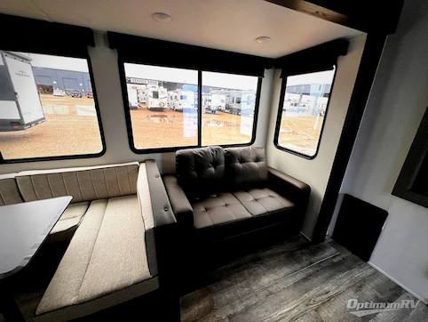 Let the fun times begin with the purchase of this Cherokee Arctic Wolf fifth wheel! You'll have loads of sleeping space for ten tired travelers with the front private bedroom, rear private bunkhouse, U-shaped dinette, and tri-fold sofa. You'll also have excellent storage space with the bunkhouse wardrobe, large walk-in pantry next to the entry door, and the outside storage areas. The large slide in the main living area offers more living space, and the fireplace will make it feel more like home.