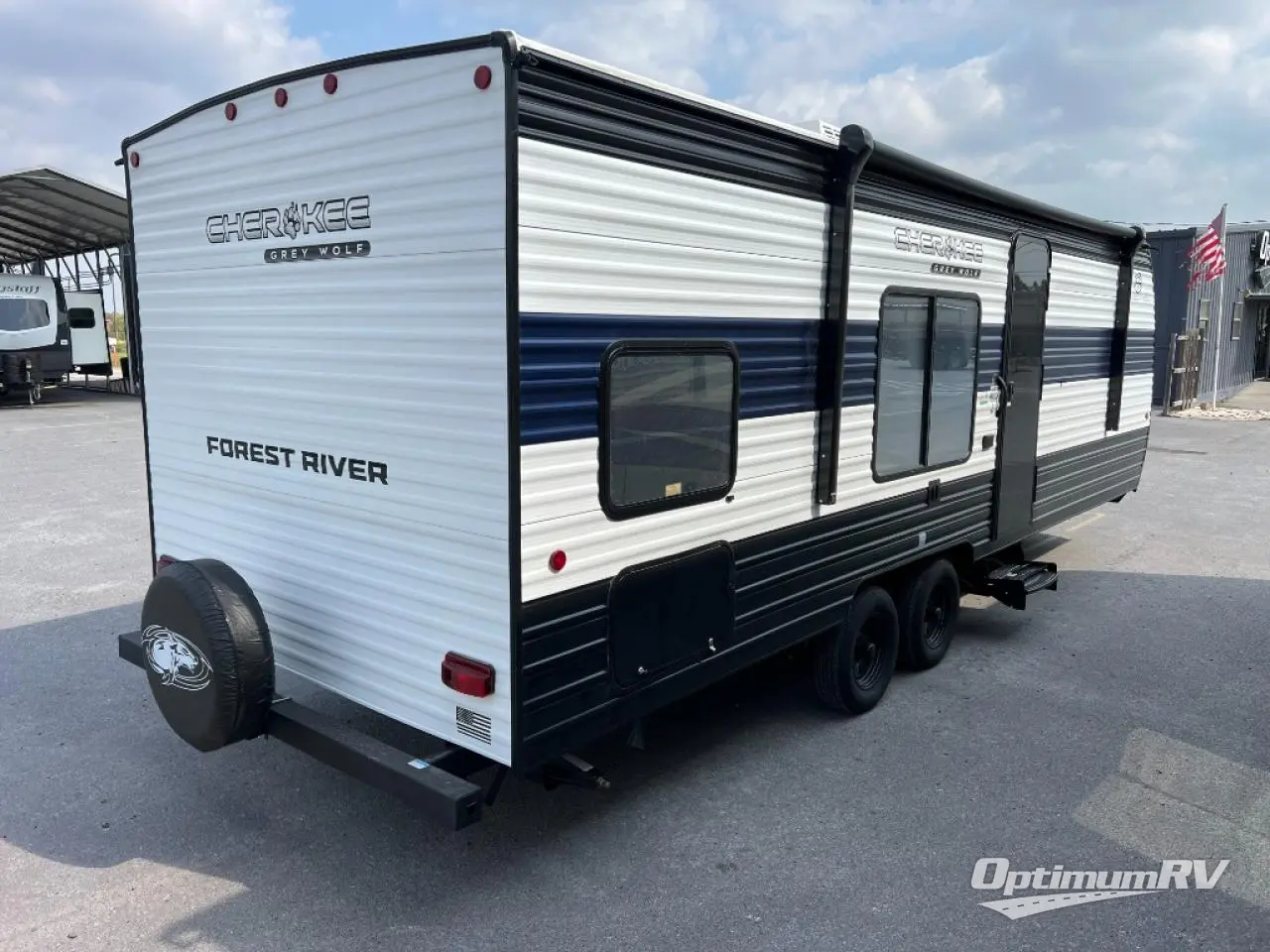 Whether it's a journey that will take you to new locations or a tried-and-true getaway to that favorite and memorable destination, the Forest River Cherokee Grey Wolf travel trailers and toy haulers are going to make the trip worth it every single time! You can travel in confidence with the premium wheel package, seamless roofing membrane with heat reflectivity, Power Gear frame technology with space-saver rail design, and Cherokee back-up camera system. The Cherokee Grey Wolf's interior is highly attractive with its stainless steel kitchen suite package and premium bedding ensemble and comforter. You will also find a black waste tank flush-out kit, an outside shower with hot and cold water, an armored underbelly tank enclosure, and an RV grill quick connect.