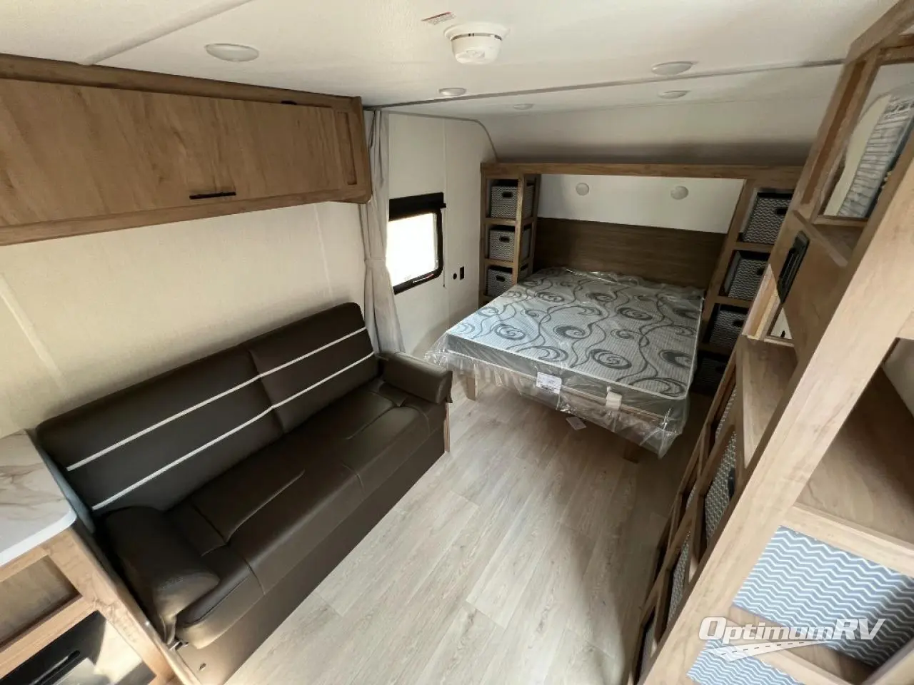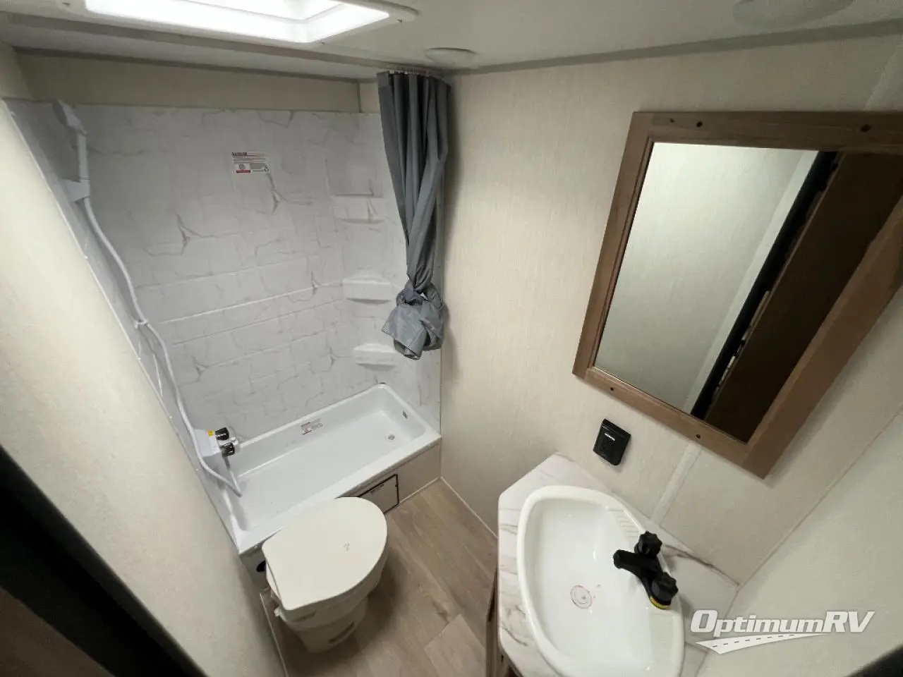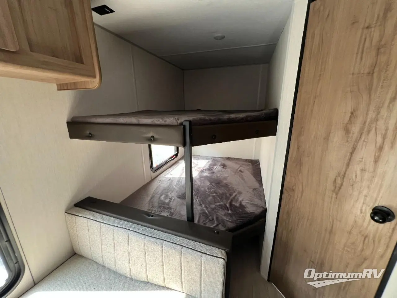 Enjoy family adventures in this bunk model which features sleeping for eight to ten depending on size with a queen bed up front, double-size bunks in the rear curbside corner, and you could even convert the booth dinette and sofa to sleep more. Inside, you will find ample storage with overhead cabinets and a large shelf above the queen bed, plus more shelves next to the entry door, as well as a pantry and storage on either side of the bed. You will appreciate the full bath with tub/shower, toilet, and sink so you can skip the campground facilities. On the outside, you will also find a 12' awning for added outdoor living, and outside storage for your camping gear, plus more!