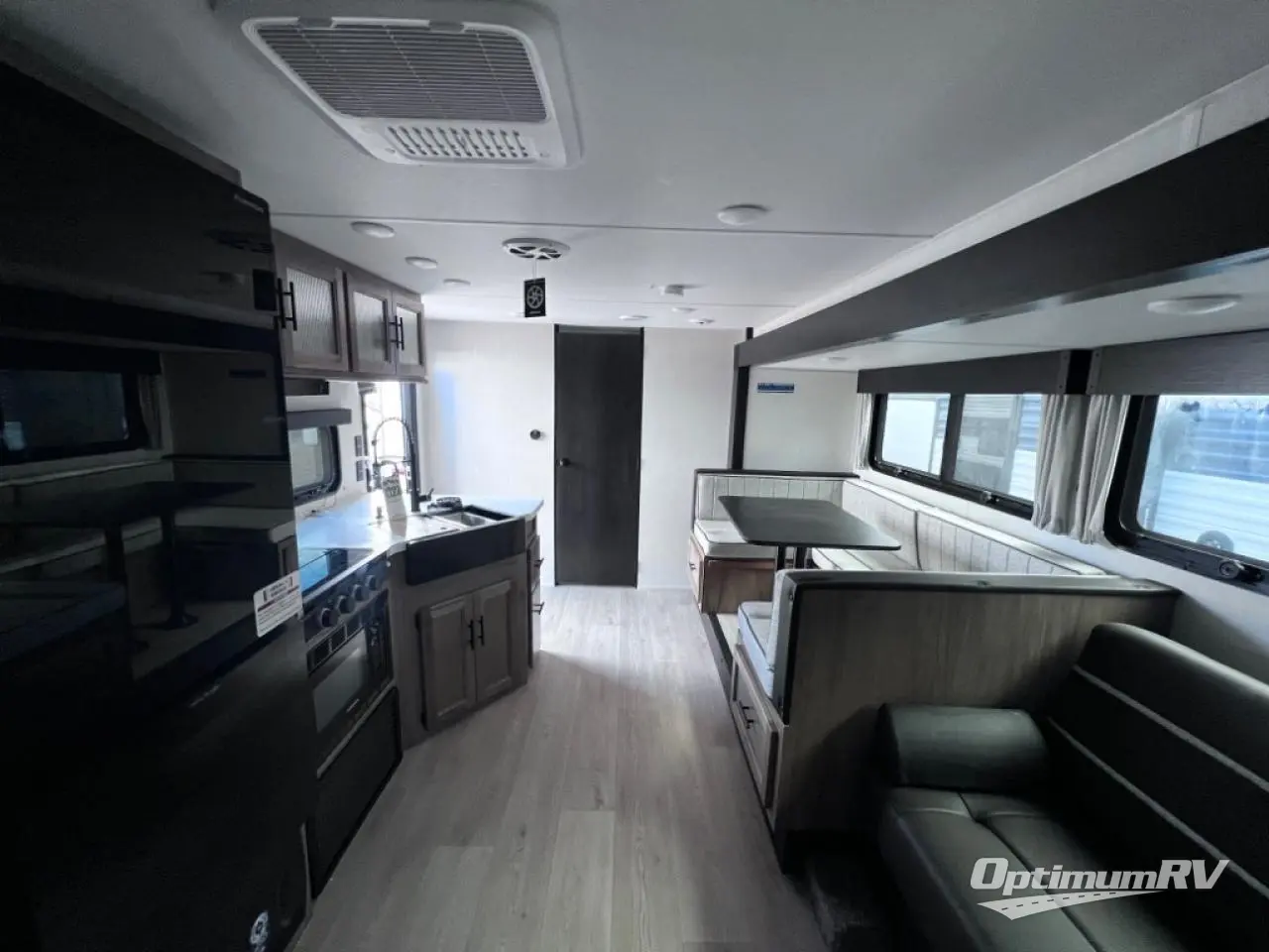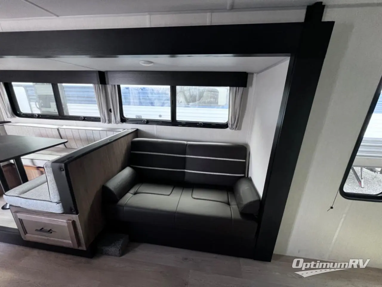 You will have such a great time making memories in this Cherokee Grey Wolf Black Label travel trailer! This amazing trailer not only has a master suite up front, but it also has another private bedroom in the back which means that both you and the rest of your fellow campers will sleep peacefully and privately. There is also a U-shaped dinette and sofa on the large slide in the main living area so that if you have anyone else traveling with you, they can also have a place to sleep. A full kitchen with an air fryer will help you whip up a hearty meal to replenish your tired bodies, and a oversized pantry will hold onto your snacks and sweets for later.