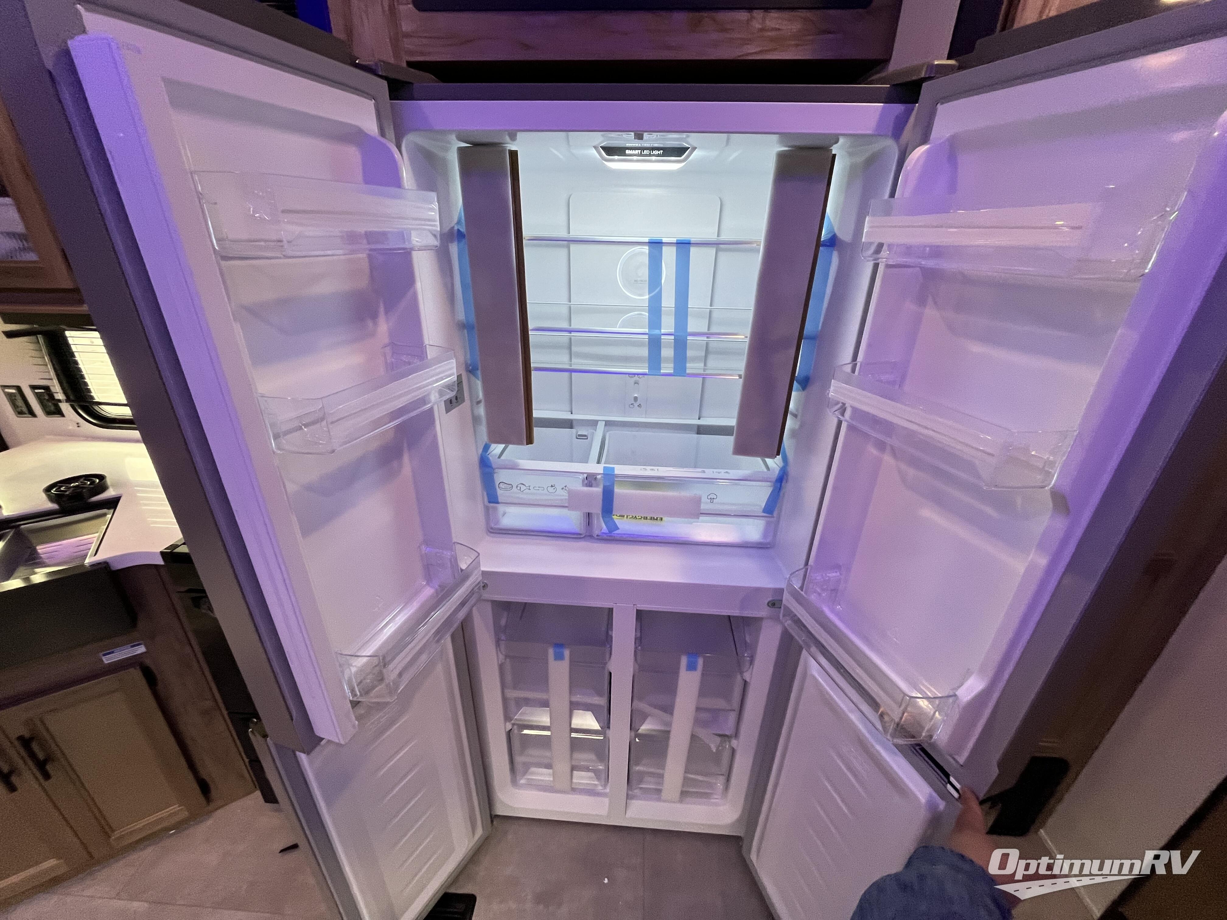 Spacious and comfortable is how you will describe this destination travel trailer featuring triple slides, two full baths, and a spacious combined kitchen and living area thanks to the large slide here featuring a free standing dinette and sofa. The kitchen includes everything you need to comfortably cook while you are away, and allows you to make meals for your family just like at home. There is a large pantry where you can keep plenty of snacks and dry goods for your trip. In the rear of the coach, there is a private bedroom featuring a queen bed slide for added space, comfortable sleeping, as well as ample storage between a dresser and wardrobe for your clothing. In the very back, a master suite bath featuring a vanity with sink, a shower with a seat, and linen storage for your towels and toiletries. This front bedroom also features a king bed slide!