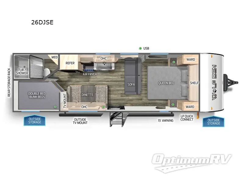Forest River Cherokee Wolf Den travel trailer 26DJSE highlights: