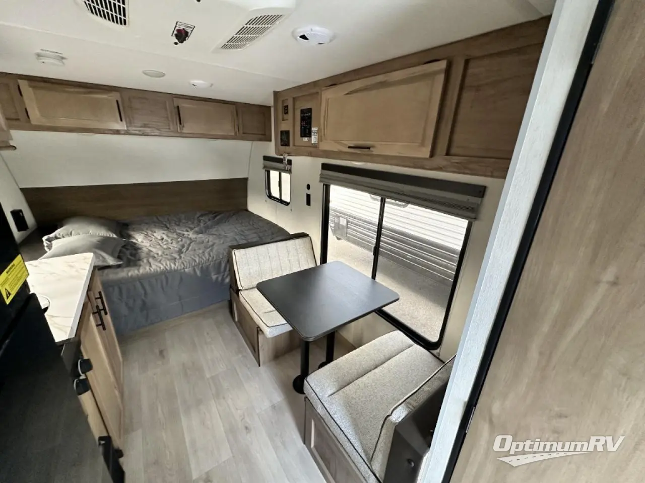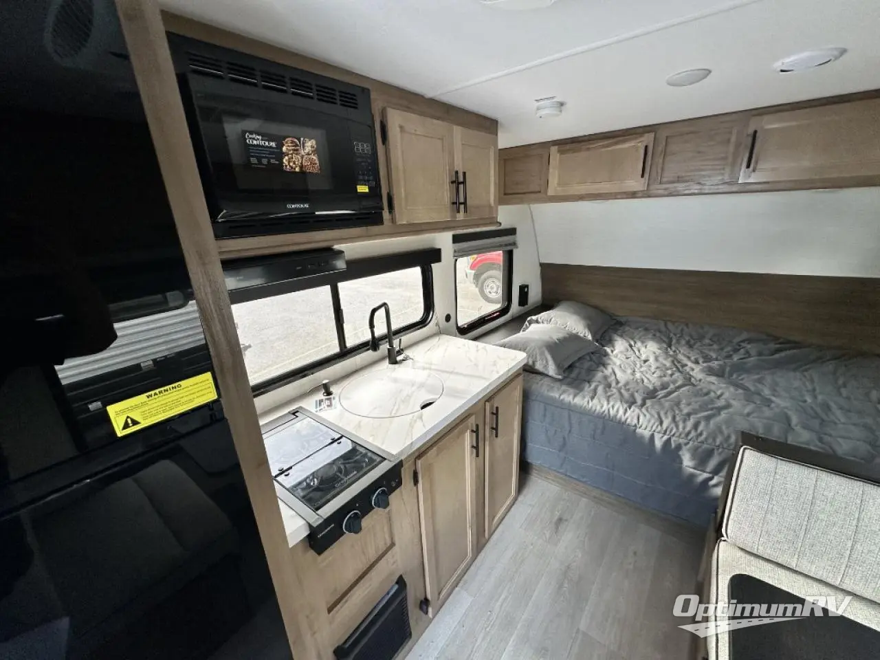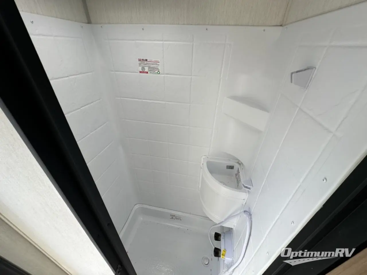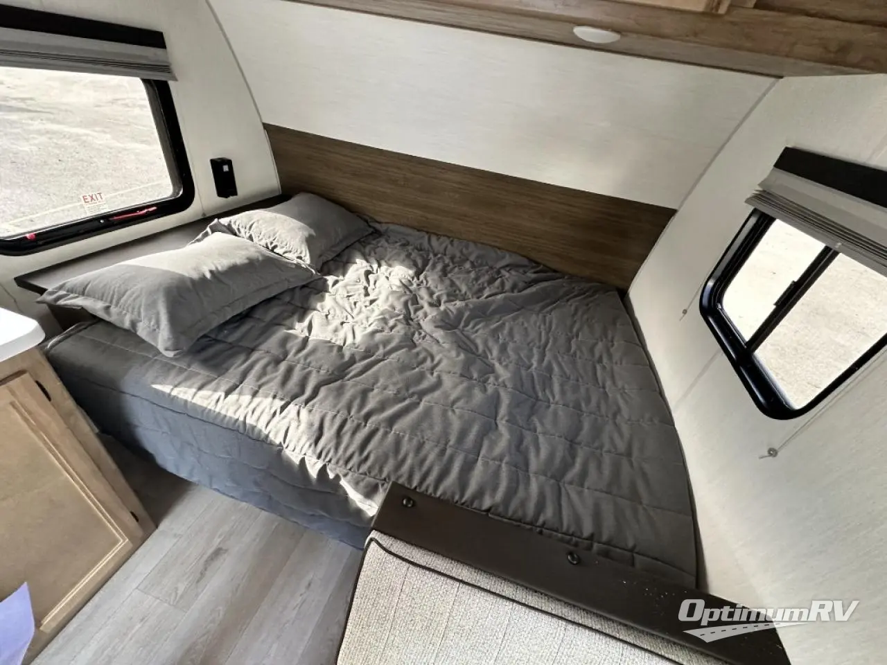 There are lots of features packed into this 19' travel trailer! The rear entry design creates a split bathroom for one person to use the private toilet while another freshens up in the private shower. You can prepare your best home cooked meals with the high output cooktop, the 11 cu. ft. 12V high efficiency residential refrigerator, and a sink to make clean up easier, plus you can comfortably enjoy your meals at the booth dinette with a TV mount location. The front queen bed provides a comfortable place to lay your head at night. Store your outdoor gear in the outside storage area, rinse the mud off your feet with the outside shower, and watch the big game outdoors with the outside TV mount!