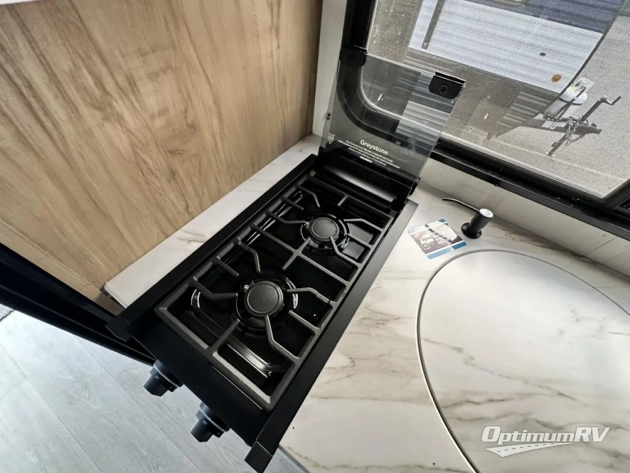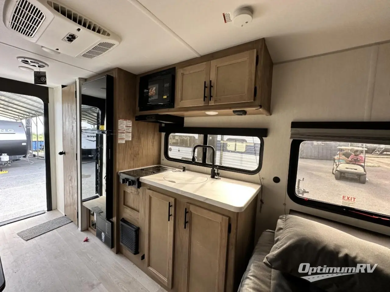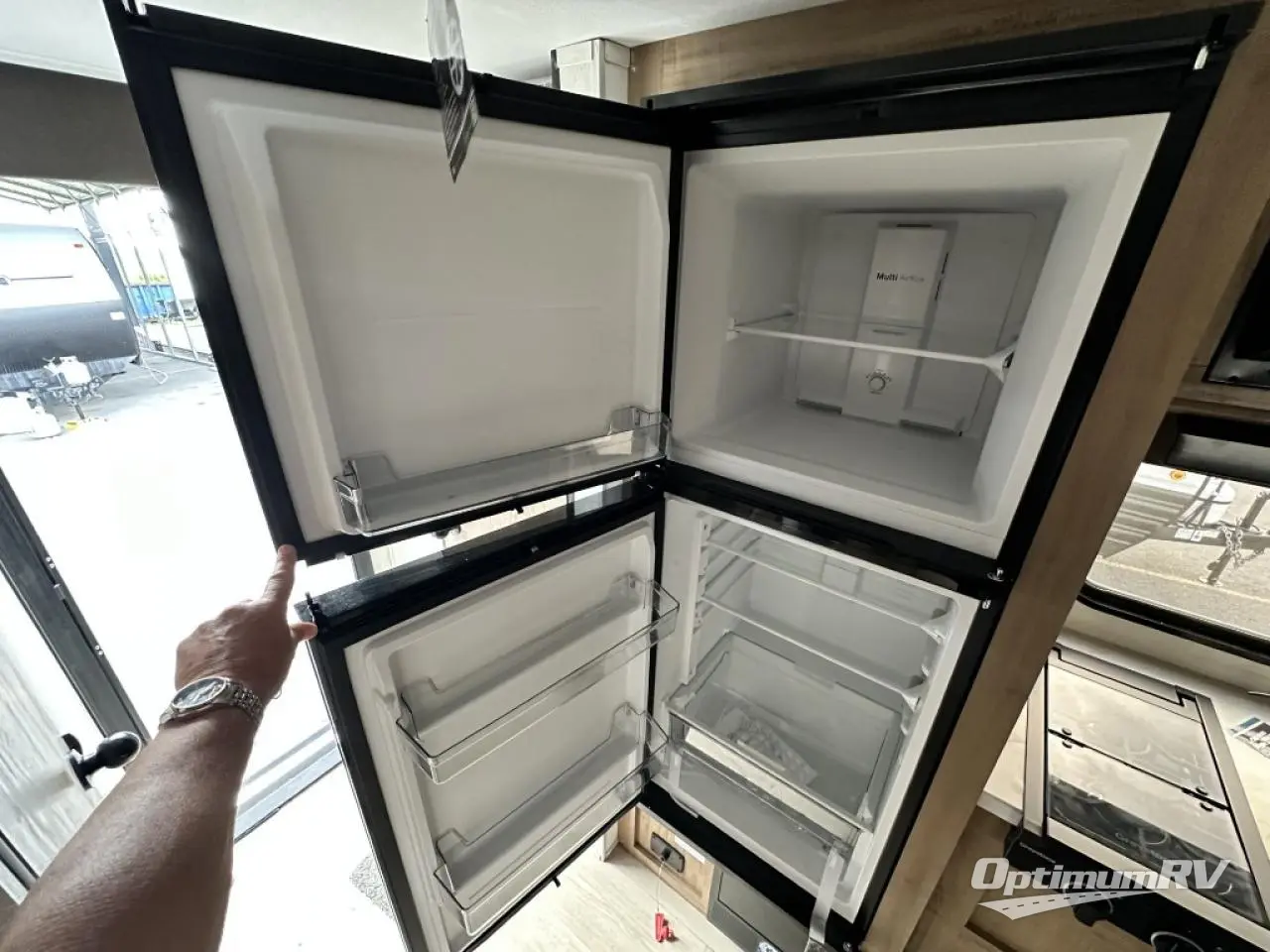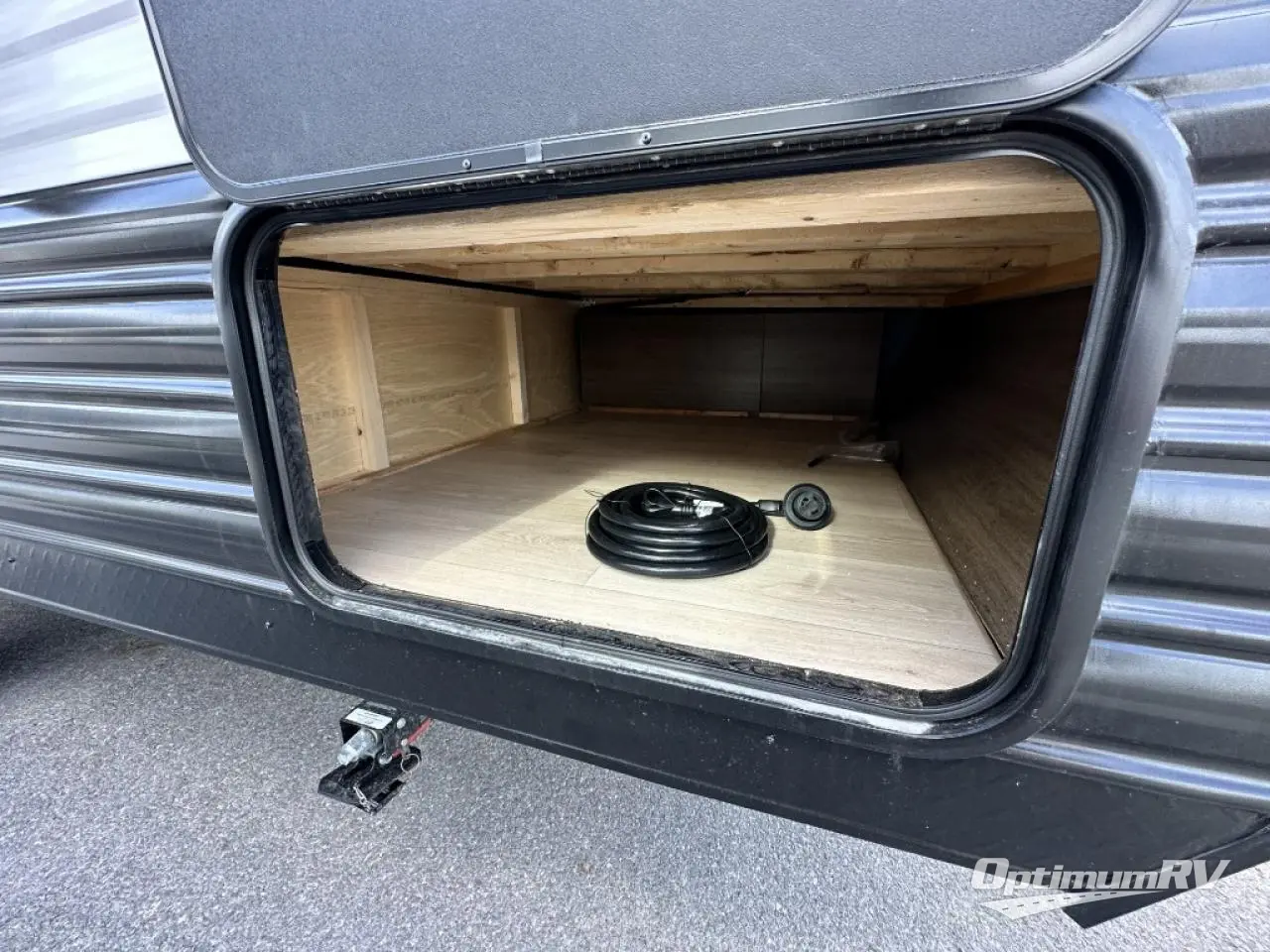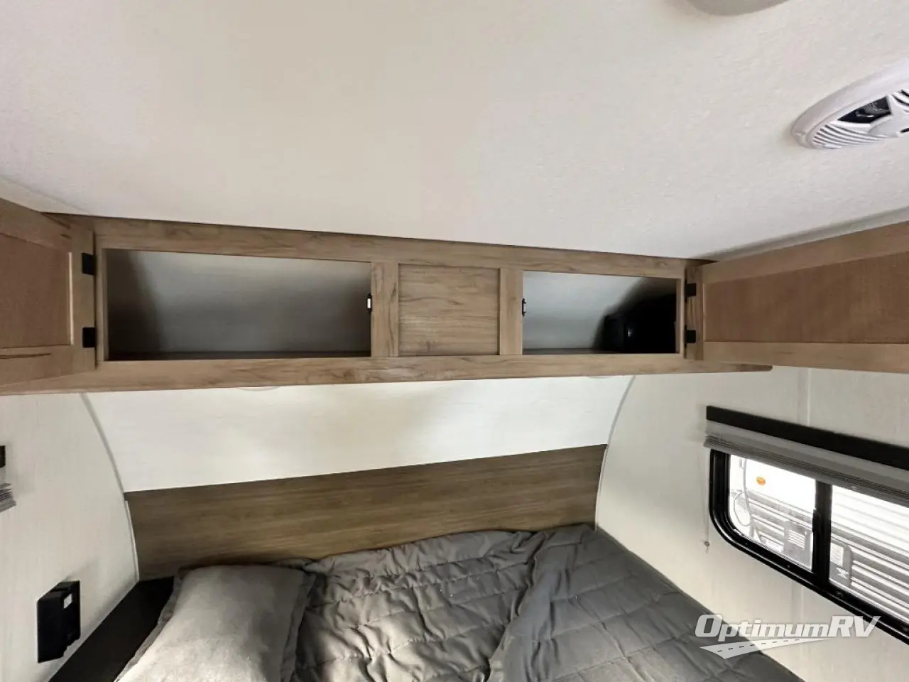 There are lots of features packed into this 19' travel trailer! The rear entry design creates a split bathroom for one person to use the private toilet while another freshens up in the private shower. You can prepare your best home cooked meals with the high output cooktop, the 11 cu. ft. 12V high efficiency residential refrigerator, and a sink to make clean up easier, plus you can comfortably enjoy your meals at the booth dinette with a TV mount location. The front queen bed provides a comfortable place to lay your head at night. Store your outdoor gear in the outside storage area, rinse the mud off your feet with the outside shower, and watch the big game outdoors with the outside TV mount!