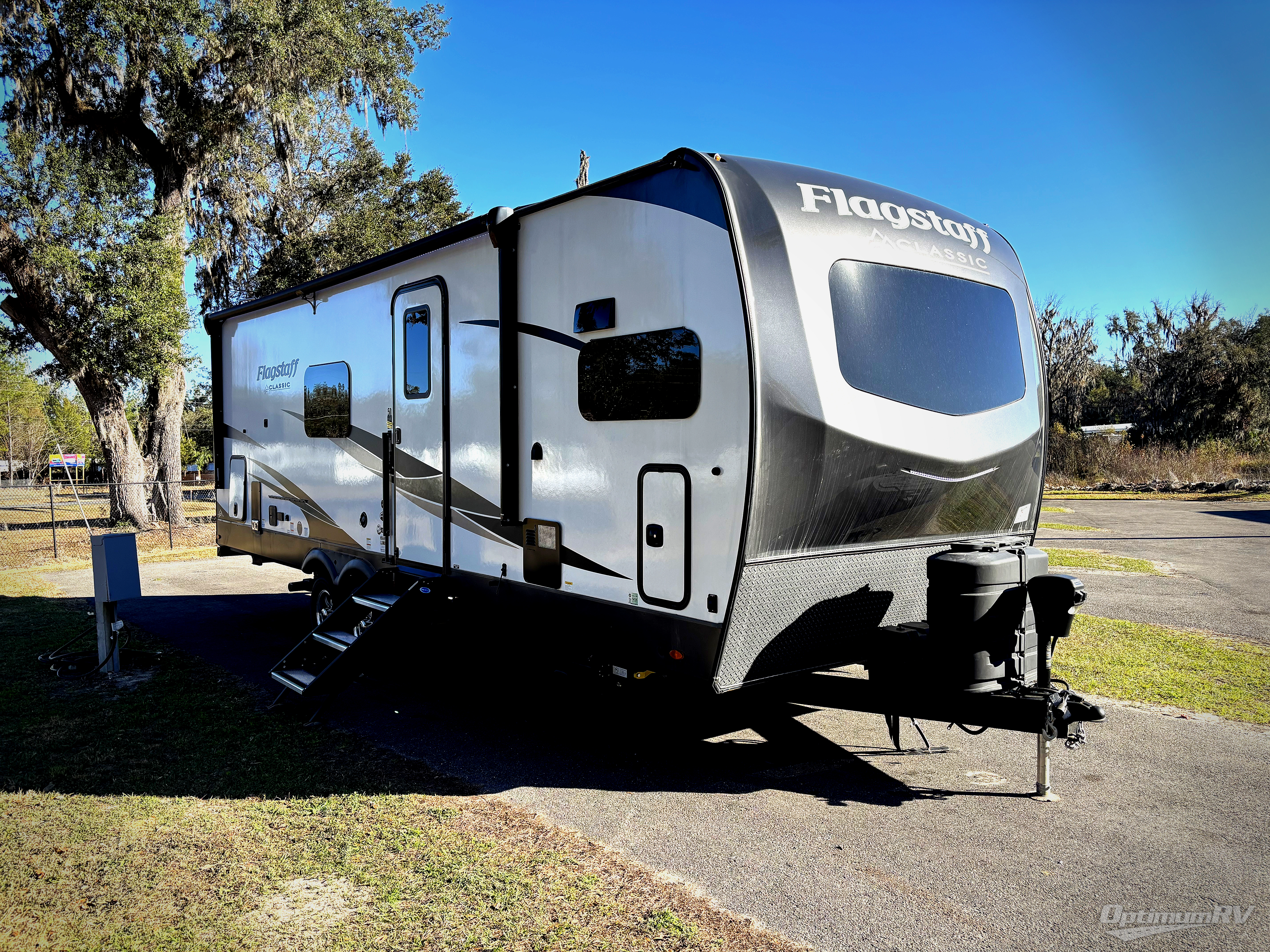Each one of these Forest River Flagstaff Classic fifth wheels or travel trailers will be your home on wheels! Their quality craftsmanship and attention to detail shines through the surface-coated steel I-beam frame on fifth wheels, the enclosed underbelly, the radius roof with vaulted interior ceilings, and six-sided fully aluminum-framed floor, walls, and roof. Towing your unit will be easy with the torsion axle, Rubber-Ryde suspension, and nitrogen-filled Goodyear Endurance tires. You will even reduce your use of water with the Showermiser water saving system in the bathroom. A few other convenient features you will enjoy include a control panel with WeRV app control, a designer headboard and bedding, and an outside shower with hot and cold water. Come choose your favorite one today!