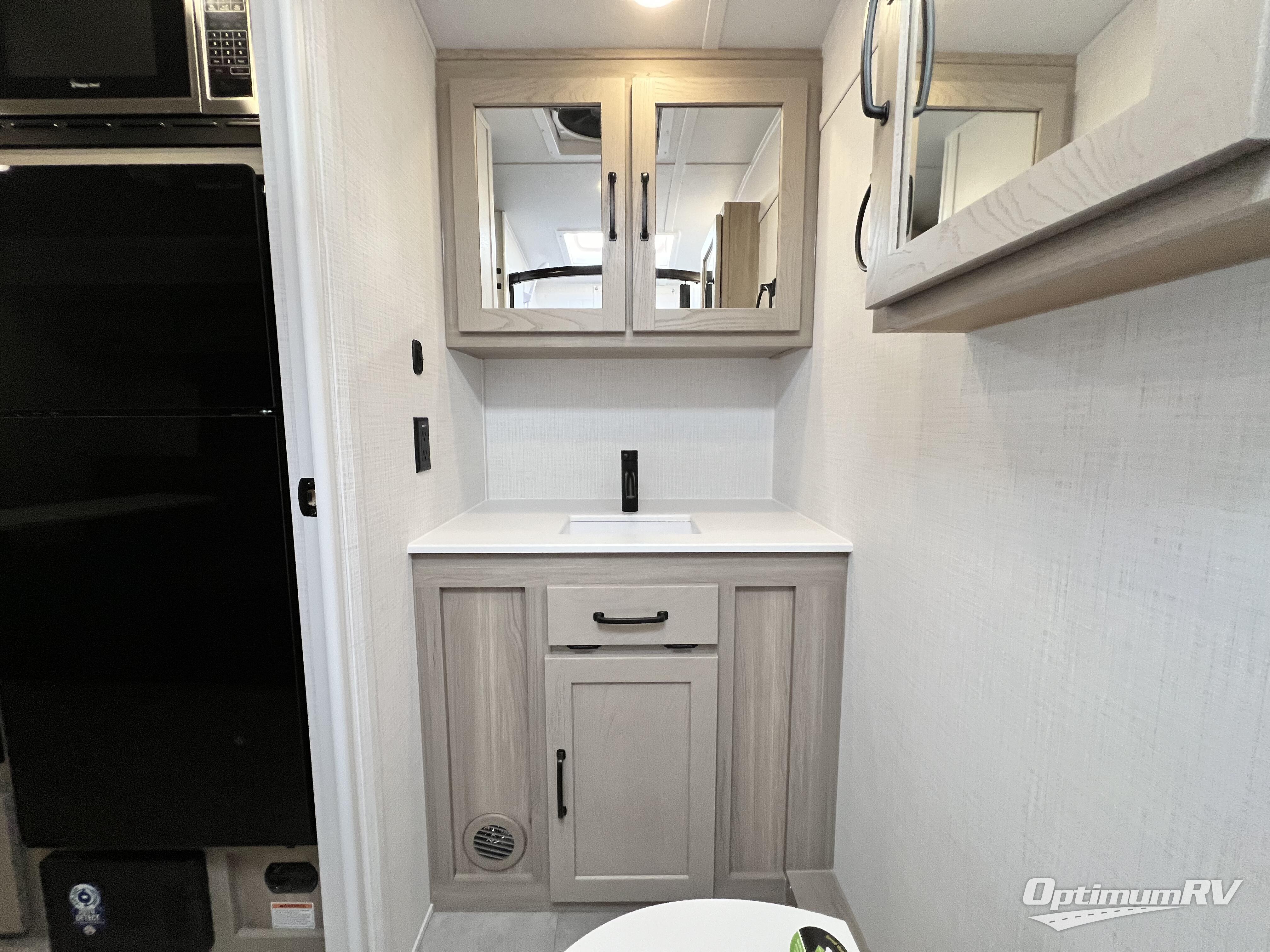 Get ready for a spacious and comfortable trip in this trailer, plus you will have a convenient rear full bathroom with an oversized shower and linen storage to utilize instead of using the campground's facilities. The walk-around full bed gives you two sides with wardrobes to claim as your own. And the kitchen offers full amenities to make meals, and the outside griddle gives you even more choices when cooking. You can relax, dine, or even work from the slide out sofa with a 30" x 15" table and watch the 32" TV. You will find storage along the exterior for your outdoor gear, plus a 14' power awning.
