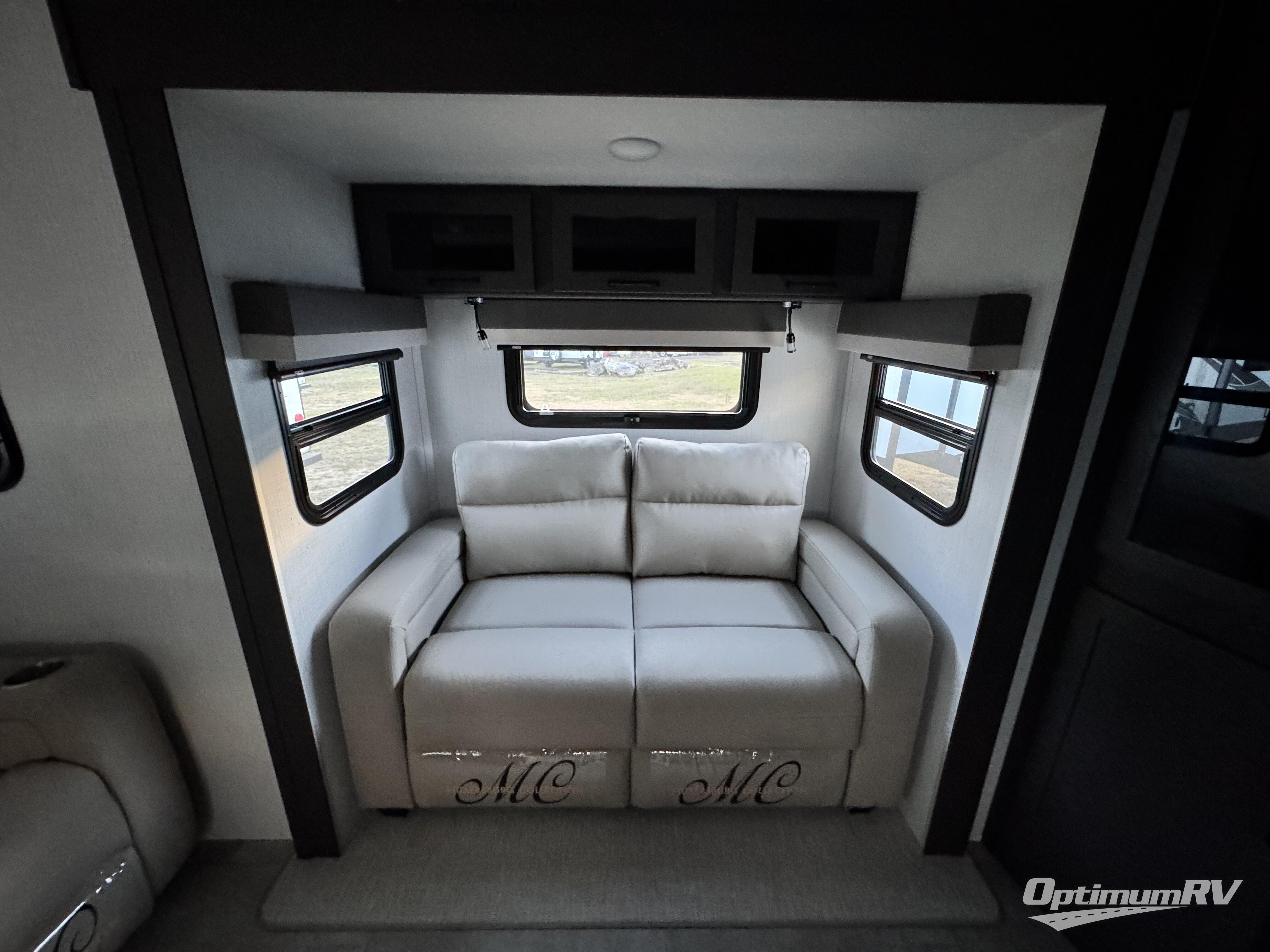 Weekends at the lake are made easy in this spacious travel trailer that can sleep six each night. Once you arrive at the campsite, unload your things from the exterior storage, set up the 21' awning, then head out on a trail to stretch your legs. You can freshen up in the dual entry bath when you return before preparing lunch for everyone. A three burner range comes standard, along with a 21" gas oven and microwave oven, and there is a table with bar stools that overlooks the rear living area for those who want to relax. Your guests can convert the rear living area into their bedroom at night since there are dual hide-a-bed sofas, and the rear entertainment center includes a Smart TV so they can watch a movie in bed. And check out the front master bedroom with its queen bed slide out, wardrobe, front shelf, and optional TV!