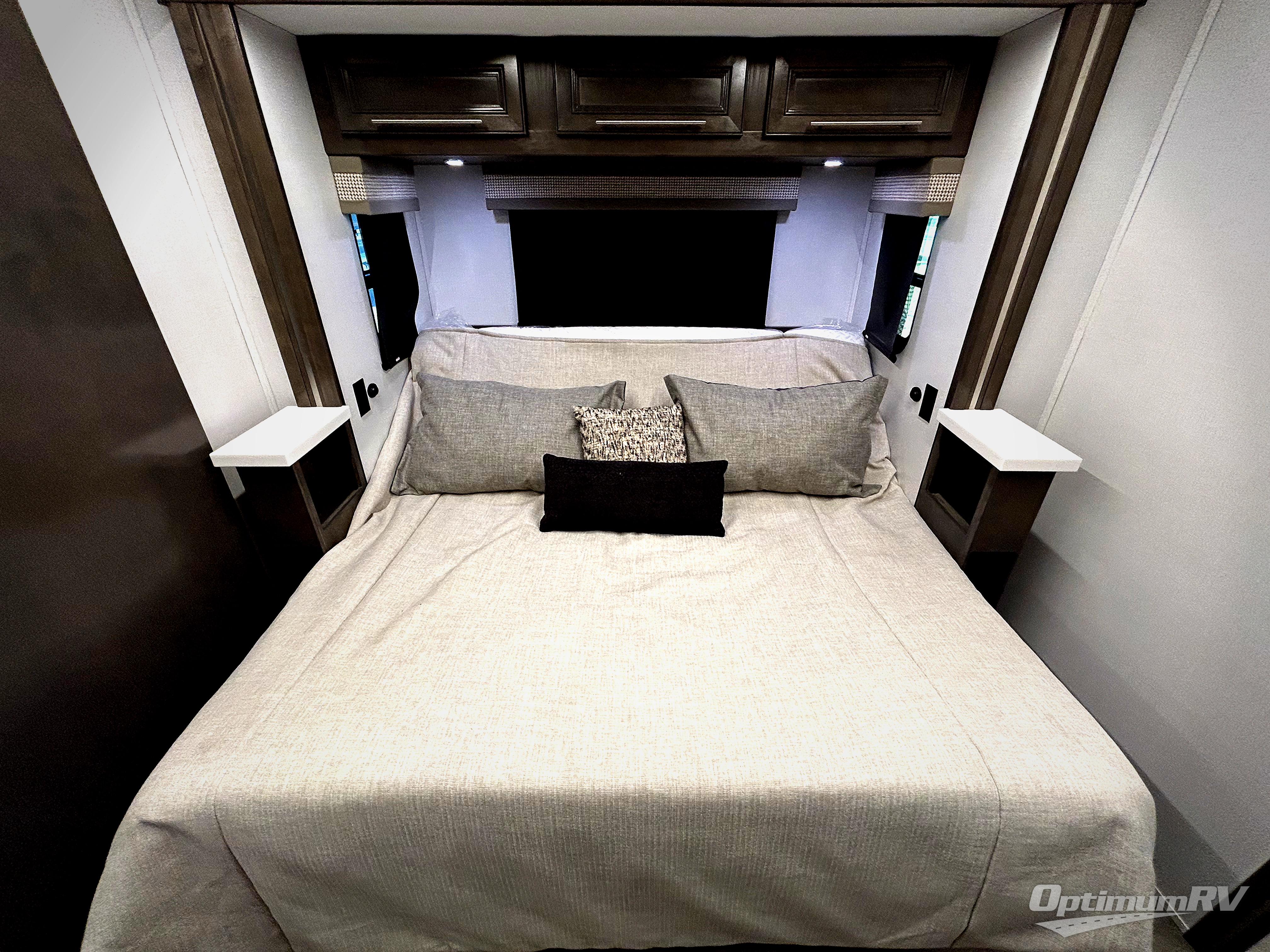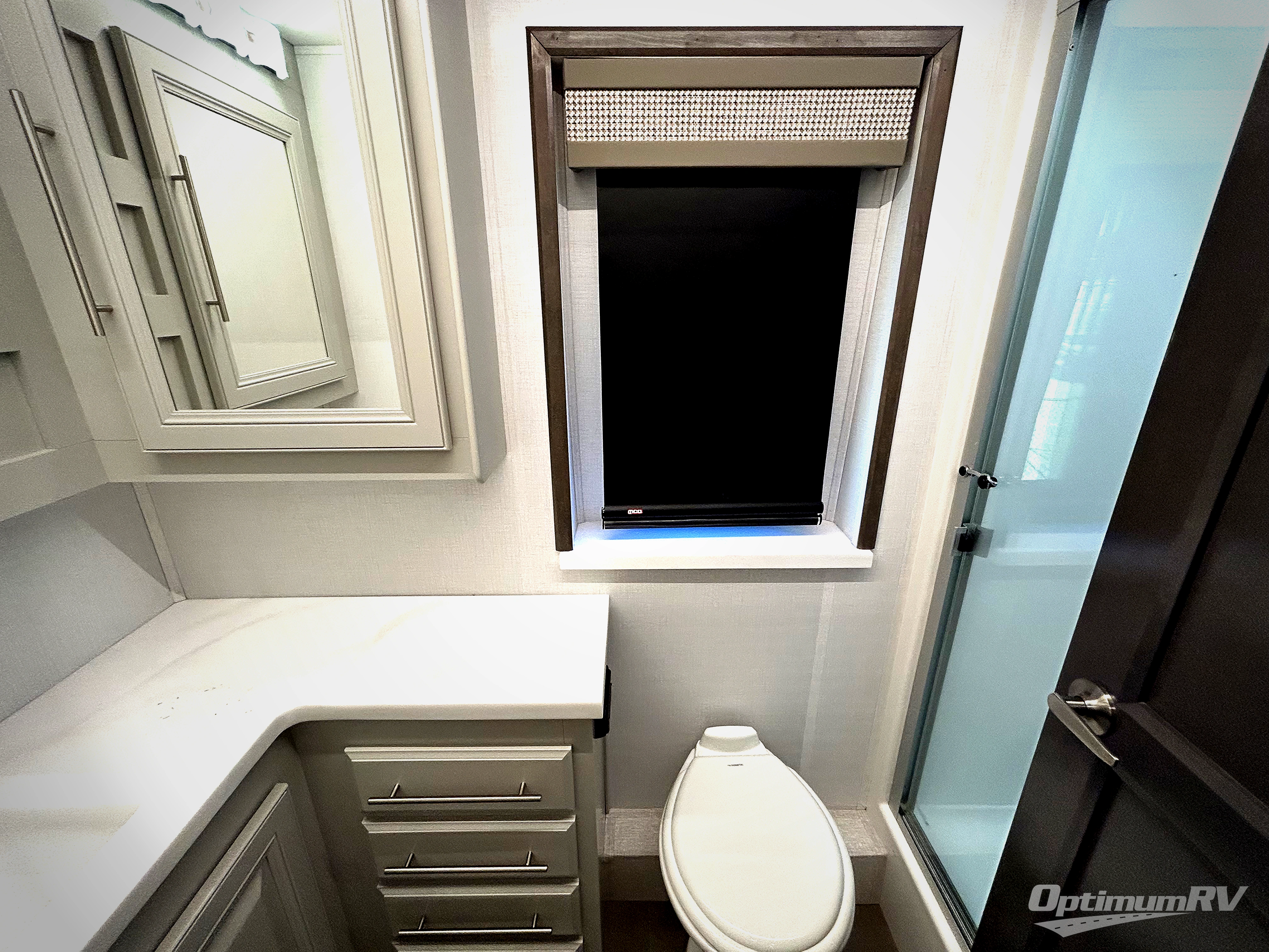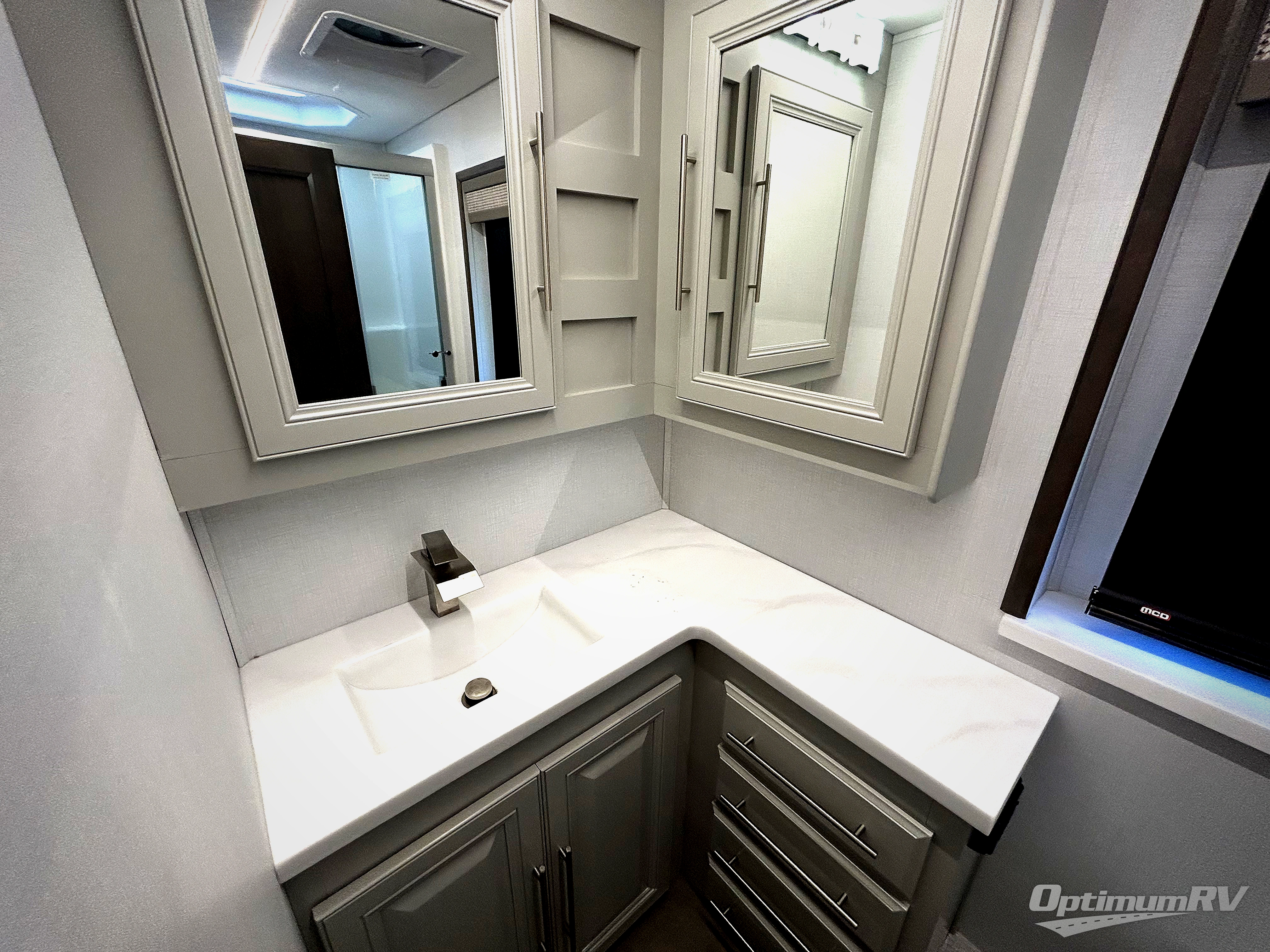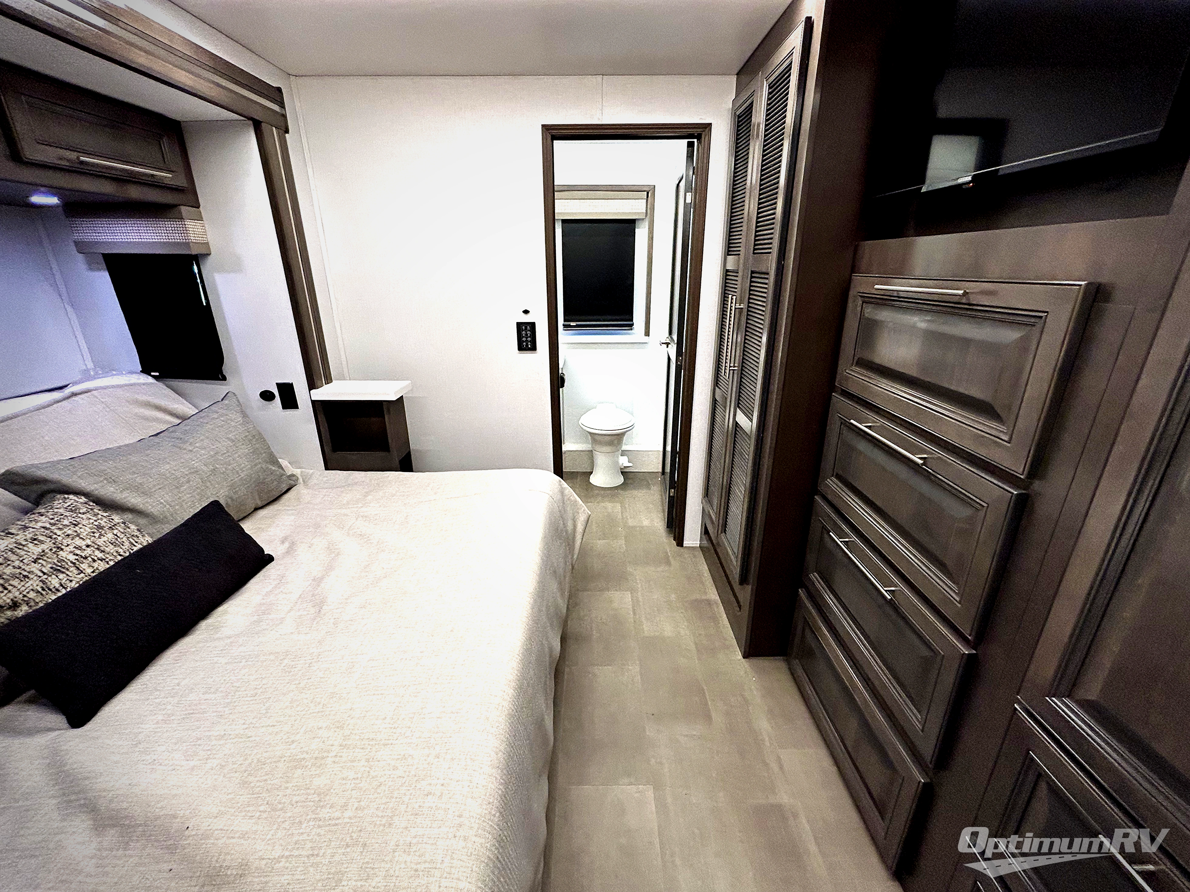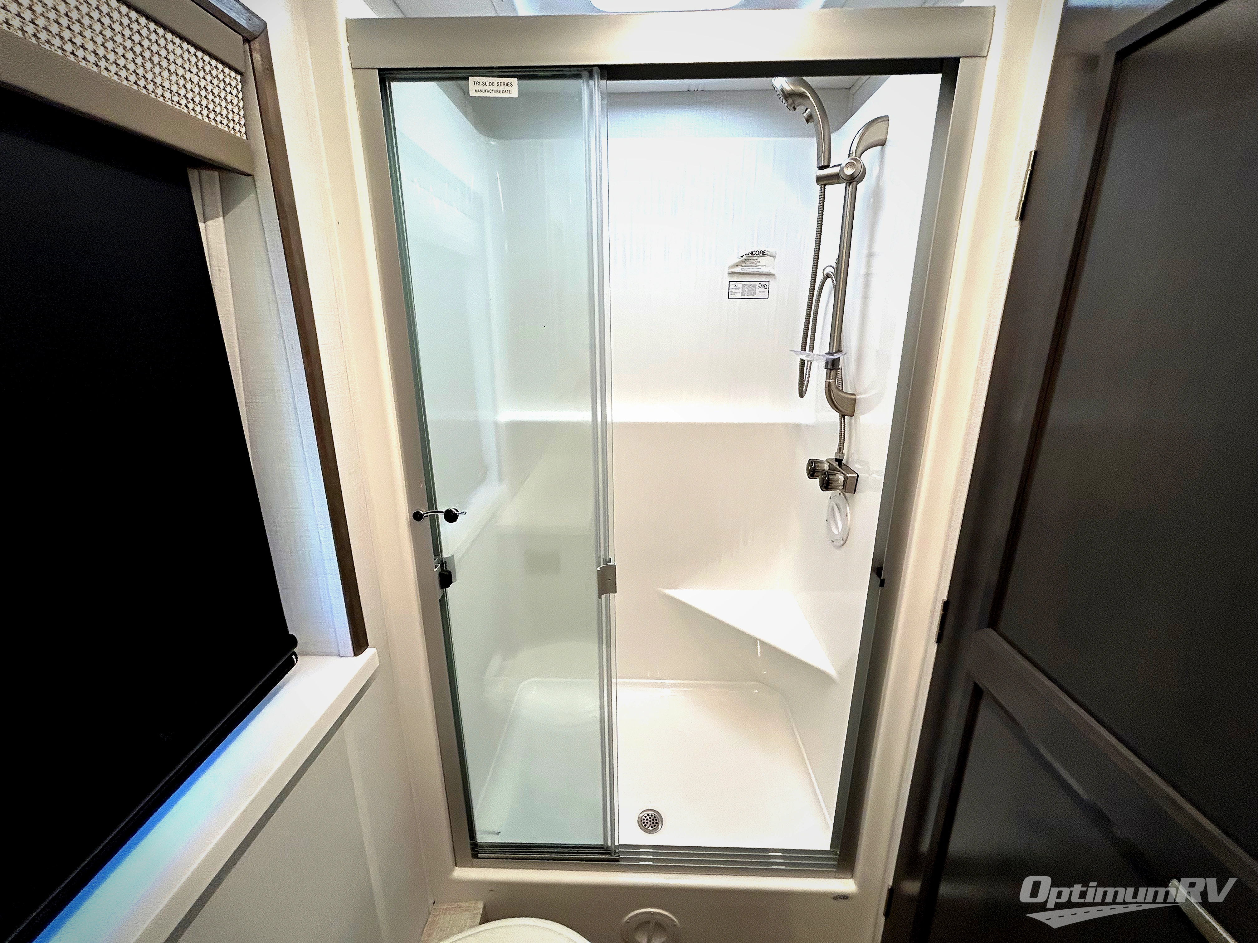 It's a clean decision to take this motorhome on all of your adventures with two full bathrooms! The full rear bathroom has a shower with a seat and creates a master suite with the bedroom which has a 72" x 80" Power Tilt king bed slide across from a dresser with a 32" LED TV and wardrobes on either side of it with one of them with washer and dryer prep. The set of bunk beds are conveniently across from the second full bathroom which will come in handy at night and keep things running smoothly in the mornings with a shower. Prepare your best home cooked meals with the three burner cooktop and enjoy them at the booth dinette then relax on the theater seating!