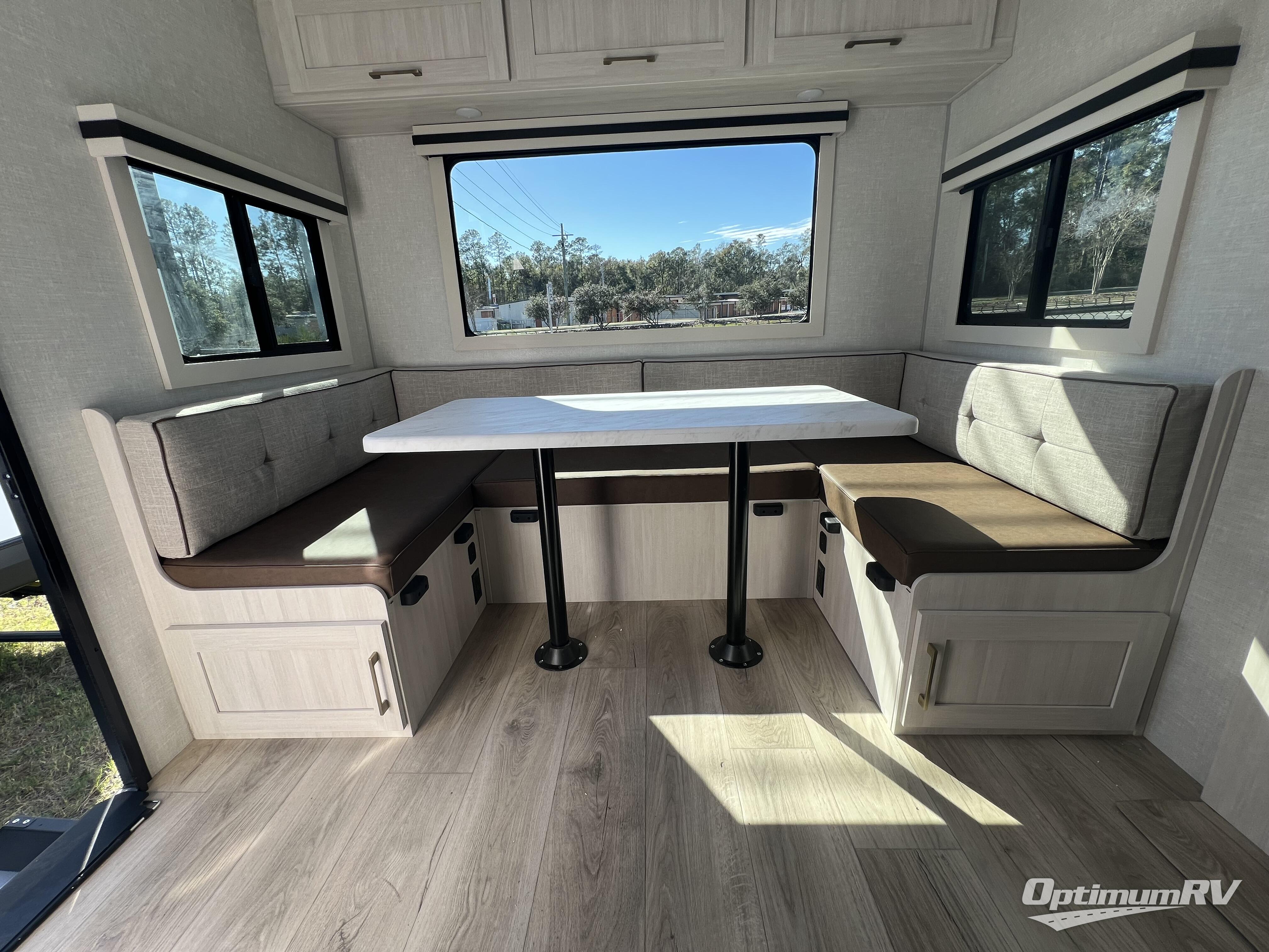 Camping your favorite site has never been more relaxing than in this travel trailer. You can comfortably sleep five to six each night with the custom king bed in the front master bedroom, plus the tri-fold sofa and booth dinette in the rear living area. There is also a walk-through bath that will easily accessible for everyone to use. Whip up your best meals on the residential range, or head outdoors to cook on the gas griddle included within the outdoor kitchen. You'll also find a sink and a refrigerator, and a 21' power awning with LED lights to create the perfect outdoor living space. After a day outdoors, you can relax by the fireplace or watch a movie on the HD TV, and there is a large kitchen pantry to stock up on snacks!