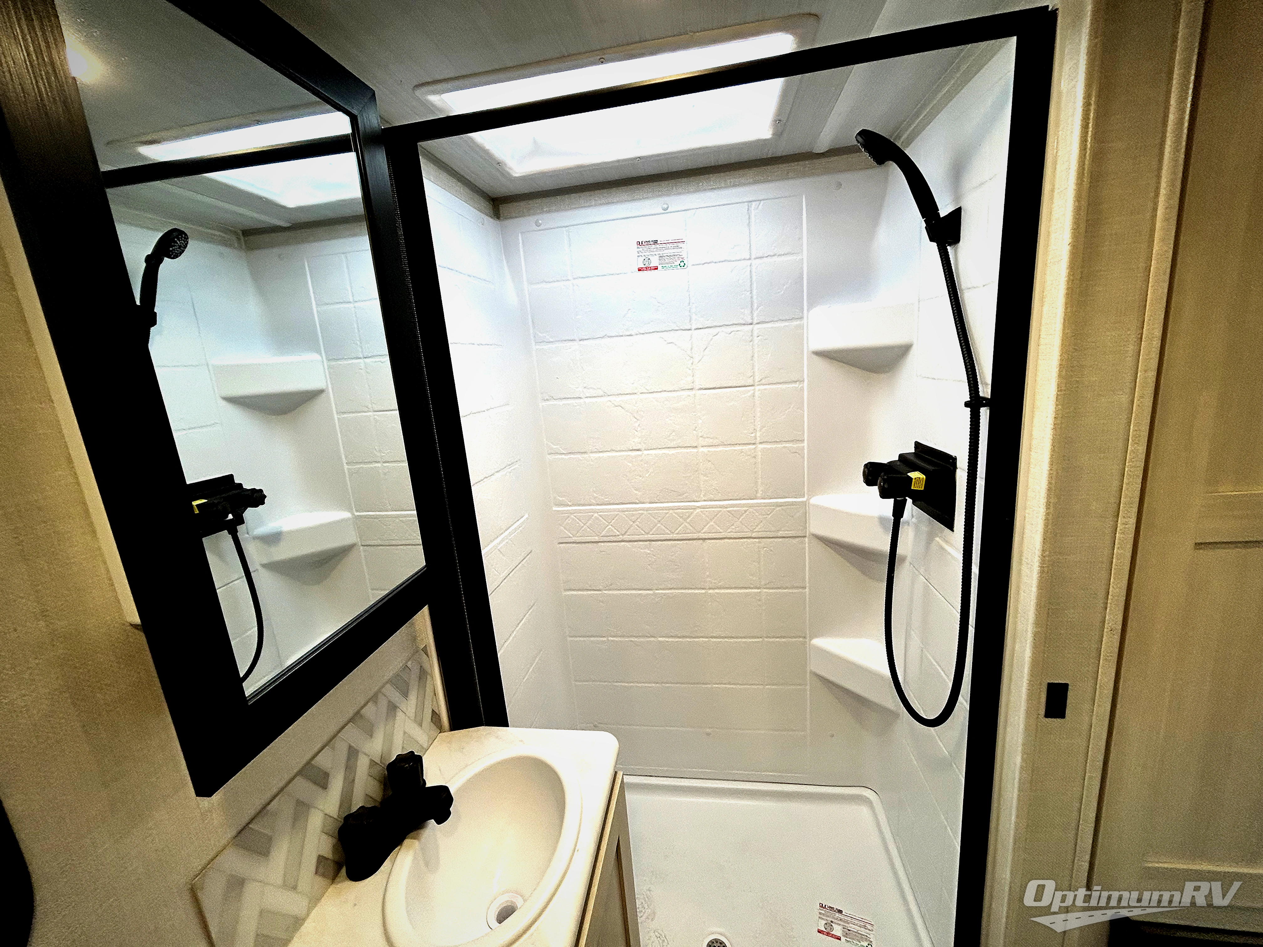 You're going to love all of the conveniences and versatility of this travel trailer! The front Murphy bed can fold away to reveal a sofa which gives you a comfortable place to sit during the day and to sleep at night too. The rear full bath features everything you will need to get squeaky clean each morning, as well as a large wardrobe for you to store your linens. After you have whipped up your best meal with the two-burner cooktop or convection microwave, you can head to the booth dinette and enjoy eating it there comfortably.