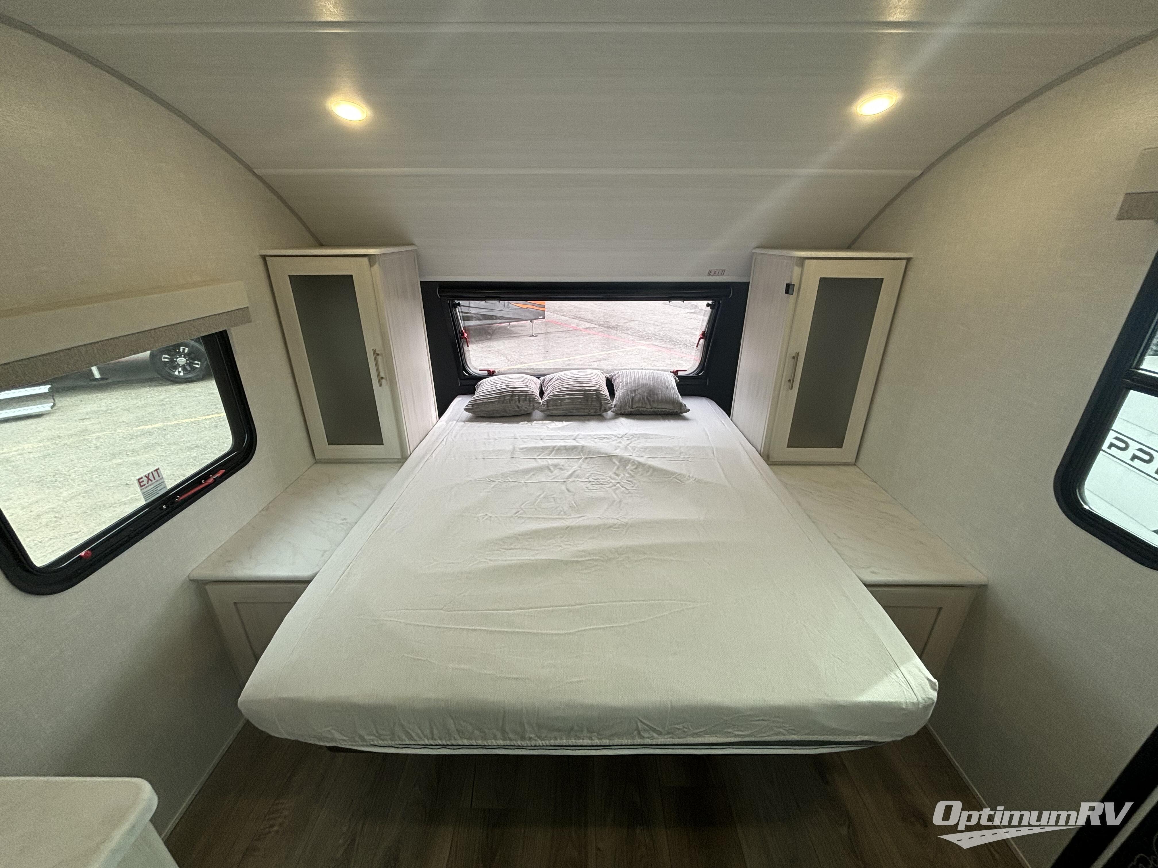 This versatile travel trailer is perfect for two adventure-seeking campers! You will love having a queen-size Murphy bed up front since you can fold it away during the day and relax on the sofa. There are also dual wardrobes to keep your clothes out of the way plus dual end end tables to set your coffee or book on. A full kitchen includes a convection microwave, 12V black glass refrigerator, and a counter with two chairs where you can dine each day. You will also love the flip-up window above the table, along with a 12V TV to keep you entertained, plus a pantry to keep food stocked. Head to the full rear bath that includes a large linen closet, a shower, and a night light for added convenience. The exterior is just as accommodating with its large roof mounted solar panel, rear accessory hitch, slam latch cargo doors, and more!