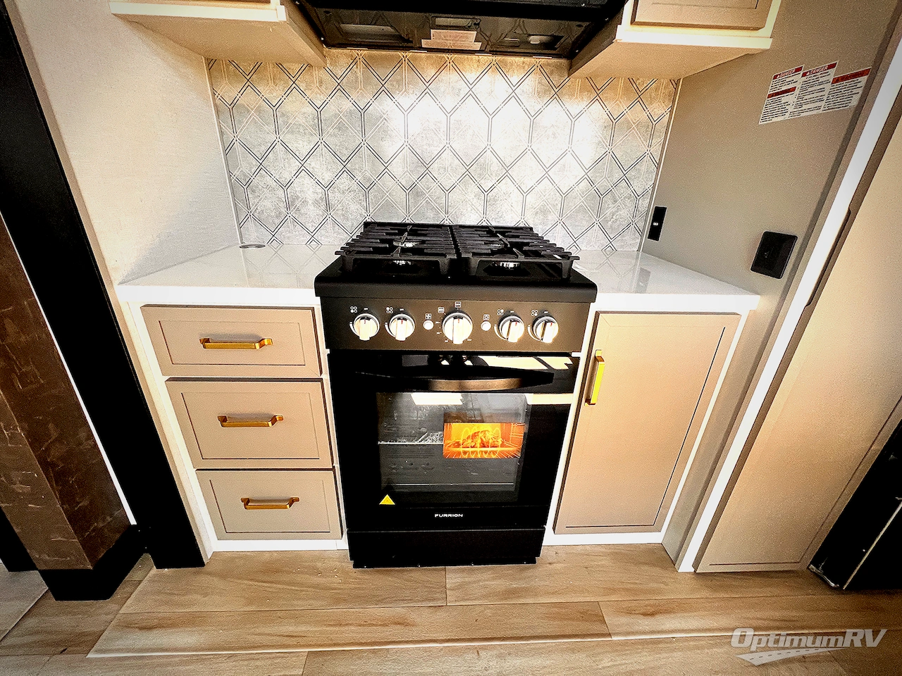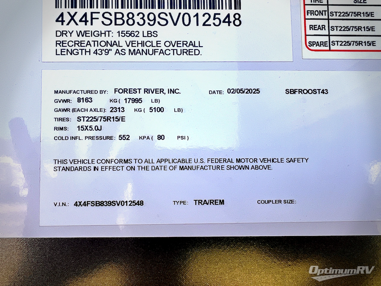 Introducing a new RV of its kind, the ROOST43 is a destination-style fifth wheel you are sure to love! There are two levels, making it feel more like home, and you can sleep six to eight each night. The master bedroom includes a custom king bed slide out, a 32" TV and fireplace, a desk/vanity, plus a half bath for convenience. A custom king-size bed is also found in the front loft, and there are storage cubbies plus a coax/110V outlet here to plug in chargers or a laptop. The second loft in the back includes spiral stairs, two bunk mats, a wardrobe, and cubby cubes here also for your guests' things. Some of the stand-out features you'll find on the first level are the sectional sofa with a coffee table, an entertainment center with a 65" TV, a kitchen island with five chairs, and a fully-equipped kitchen. The 20 cu. ft. 12V refrigerator and pull-out pantry will let you stock up on food, and the kitchen hutch will be perfect for nice dishes. The full bath on this model is one to remember; there is a one-piece fiberglass shower with a teak seat, a flip-up shelf and a washer/dryer, a backlit mirror, and more. And we haven't even touched on the exterior features, such as the pull-out tray, outdoor refrigerators, 20' awning, and more!