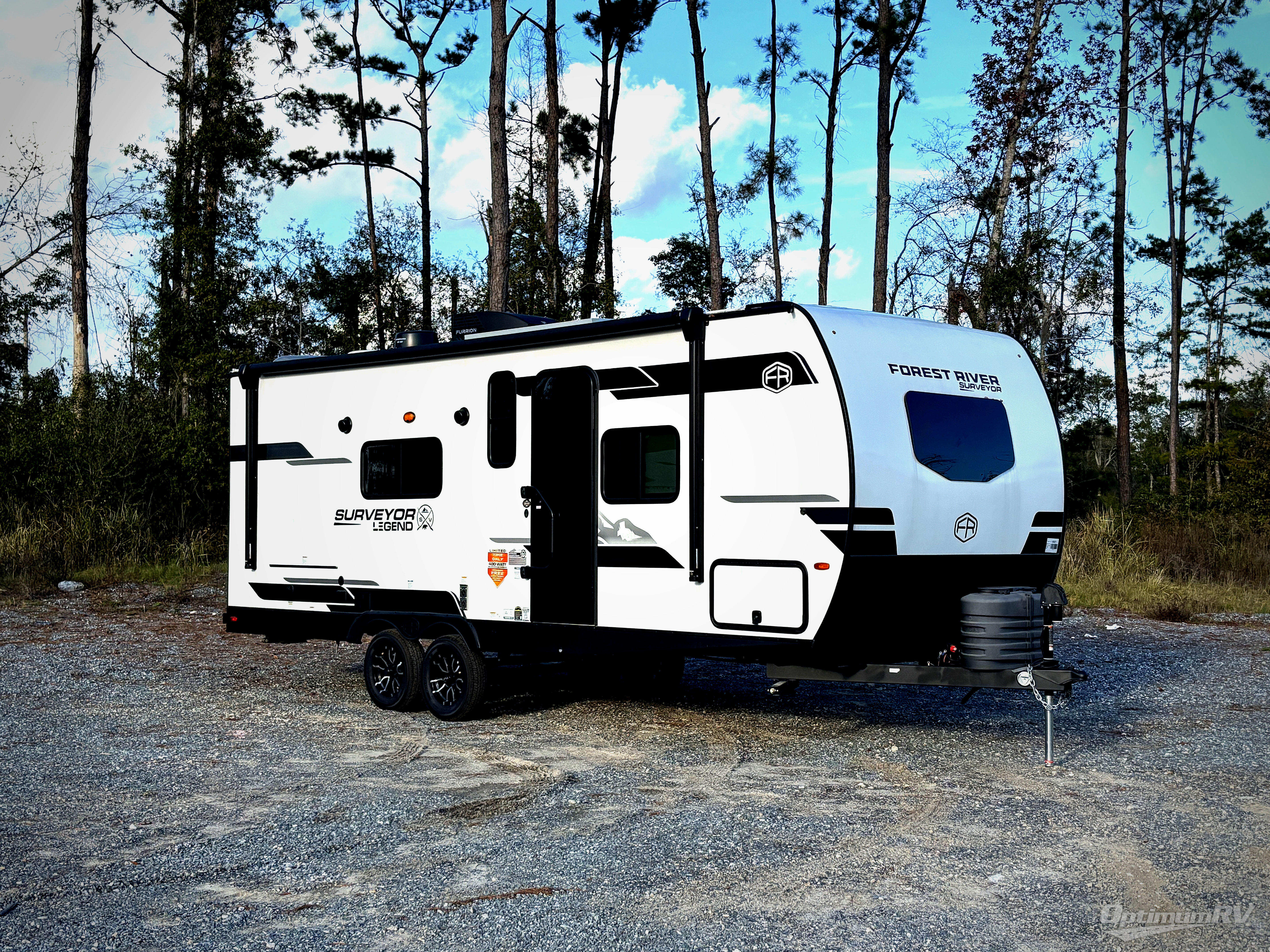 With any Surveyor Legend travel trailer by Forest River you will enjoy quality craftsmanship, convenient amenities, and at-home comforts. The Azdel composite walls provide a longer-lasting trailer, and the power tongue jack with a hitch light will get you back on the road in no-time. There are also Goodyear tires and a tire pressure monitoring system for hassle-free towing. Each model includes the Surveyor Legend Package that comes standard with oversized dinette storage access doors, front slam latch baggage doors, plus an automotive style tinted front windshield. You'll appreciate camping with a tankless water heater for endless hot showers, a 2" accessory hitch to bring bikes along, plus carpet-free interiors and a central vacuum system for easy clean up.
