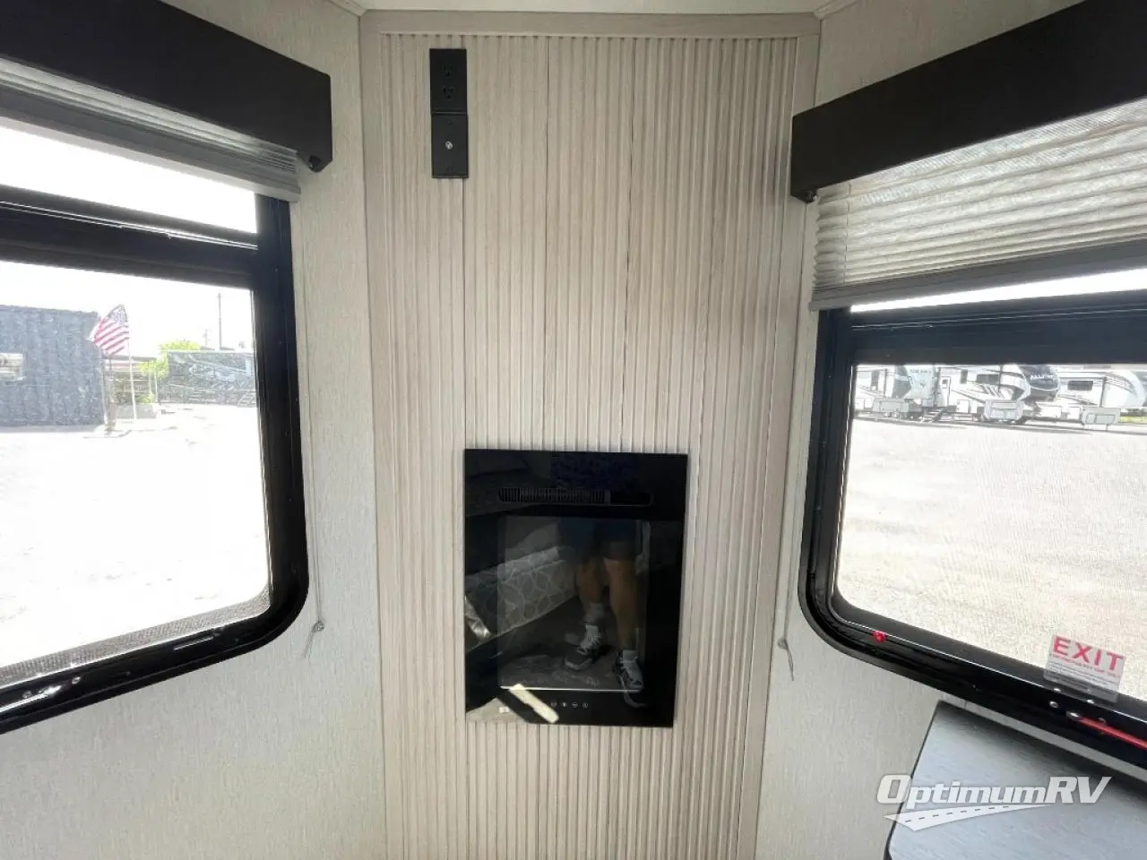 Time spent in this destination trailer will be time well spent! You will appreciate triple entry doors for maximum convenience, plus a spacious full bath that is close by the front private bedroom! Your crew can relax in the middle living area on the L-shaped sofa, or play a game at the free-standing table with chairs. The rear kitchen will be any chef's dream with its island with three stools and all the appliances to create meals each day. This model also features triple slides so you can enjoy more space to relax!