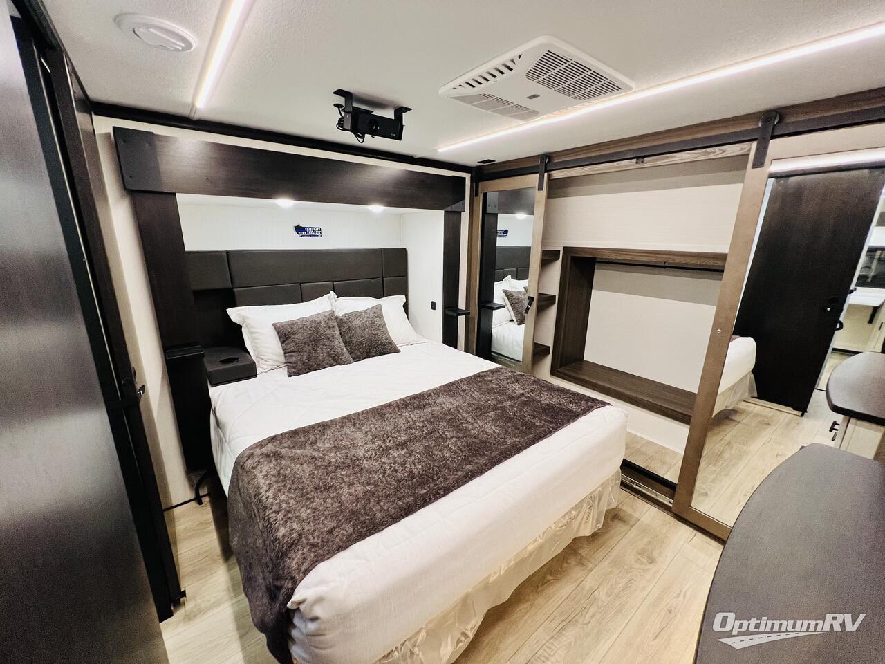 This toy hauler with an 11' separate garage is sure to meet your needs! After you've unloaded your toys, you can relax on the Euro recliners or set up the drop-down queen bed for guests if it's getting late. There is also a window in the garage that opens to the main living area to keep everyone connected, and the flip-up table on the other side of the window provides a place to dine at. A counter peninsula will give the chef of your group more space to prep meals, and the dual opposing slides in this space make it more open. You'll also enjoy the sofa with recliners across from the entertainment center with a fireplace. A full bath with a spacious shower is perfect for cleaning up after a day of trail riding, and the front private bedroom with a queen bed slide is sure to have you feeling right at home!