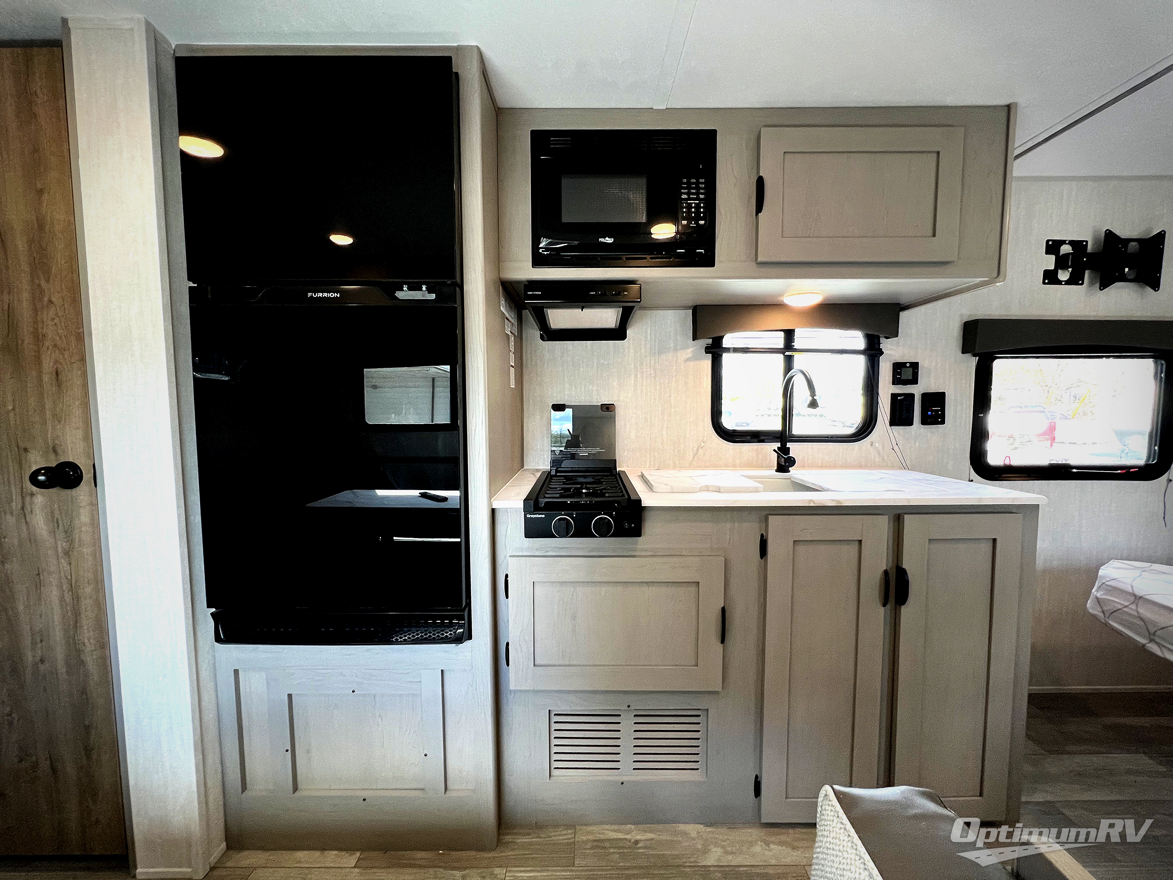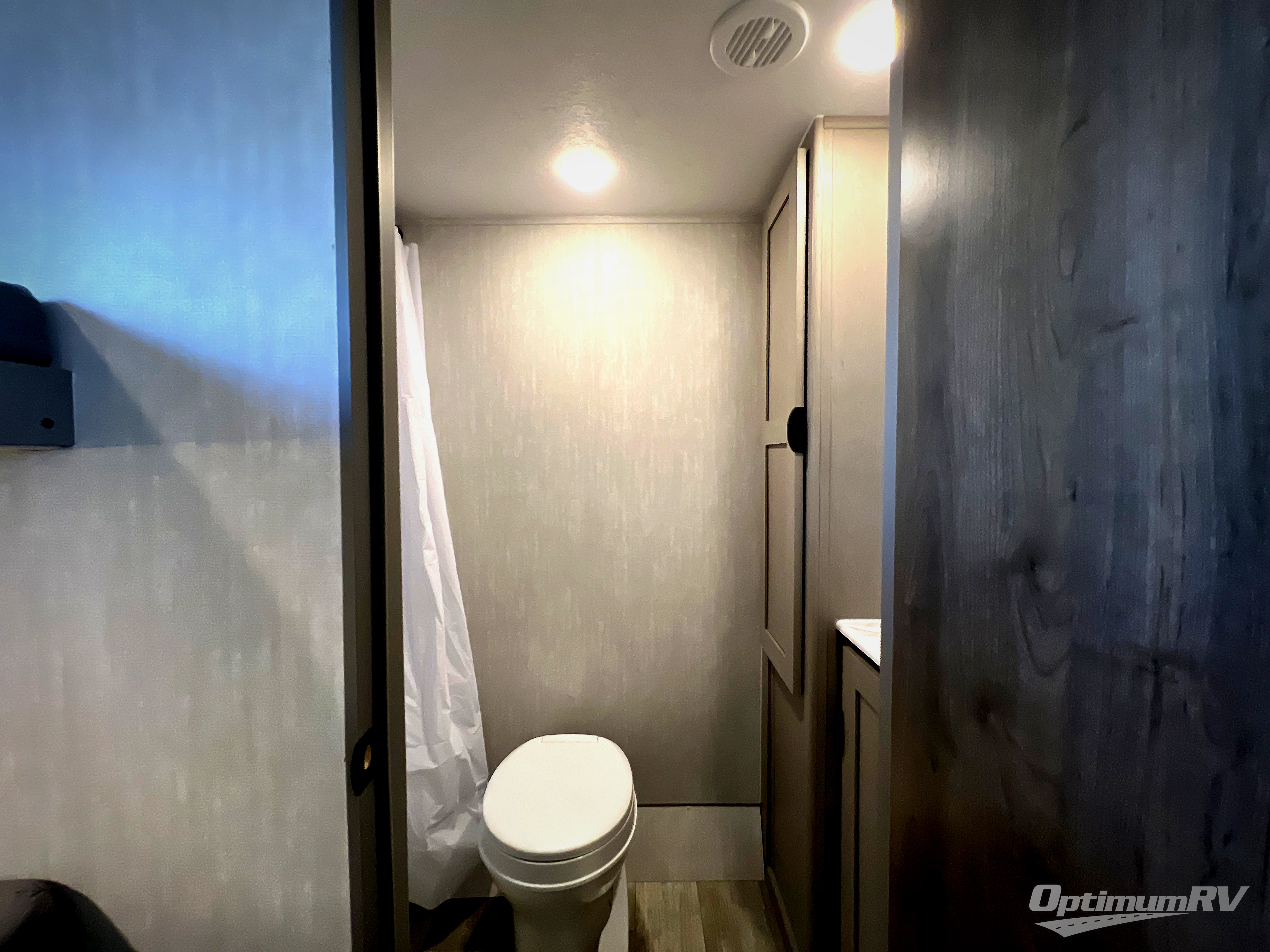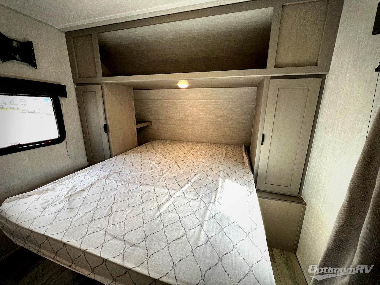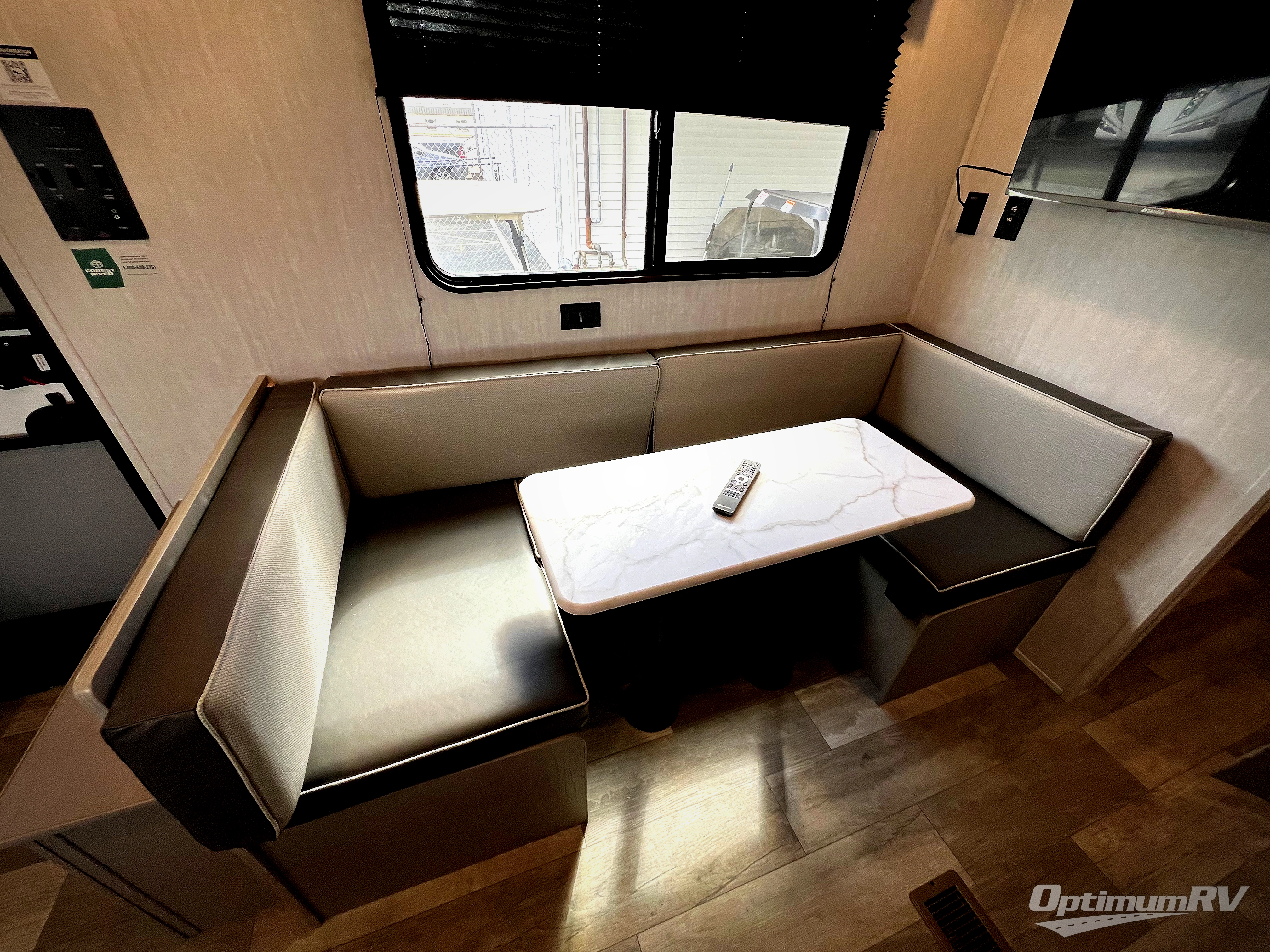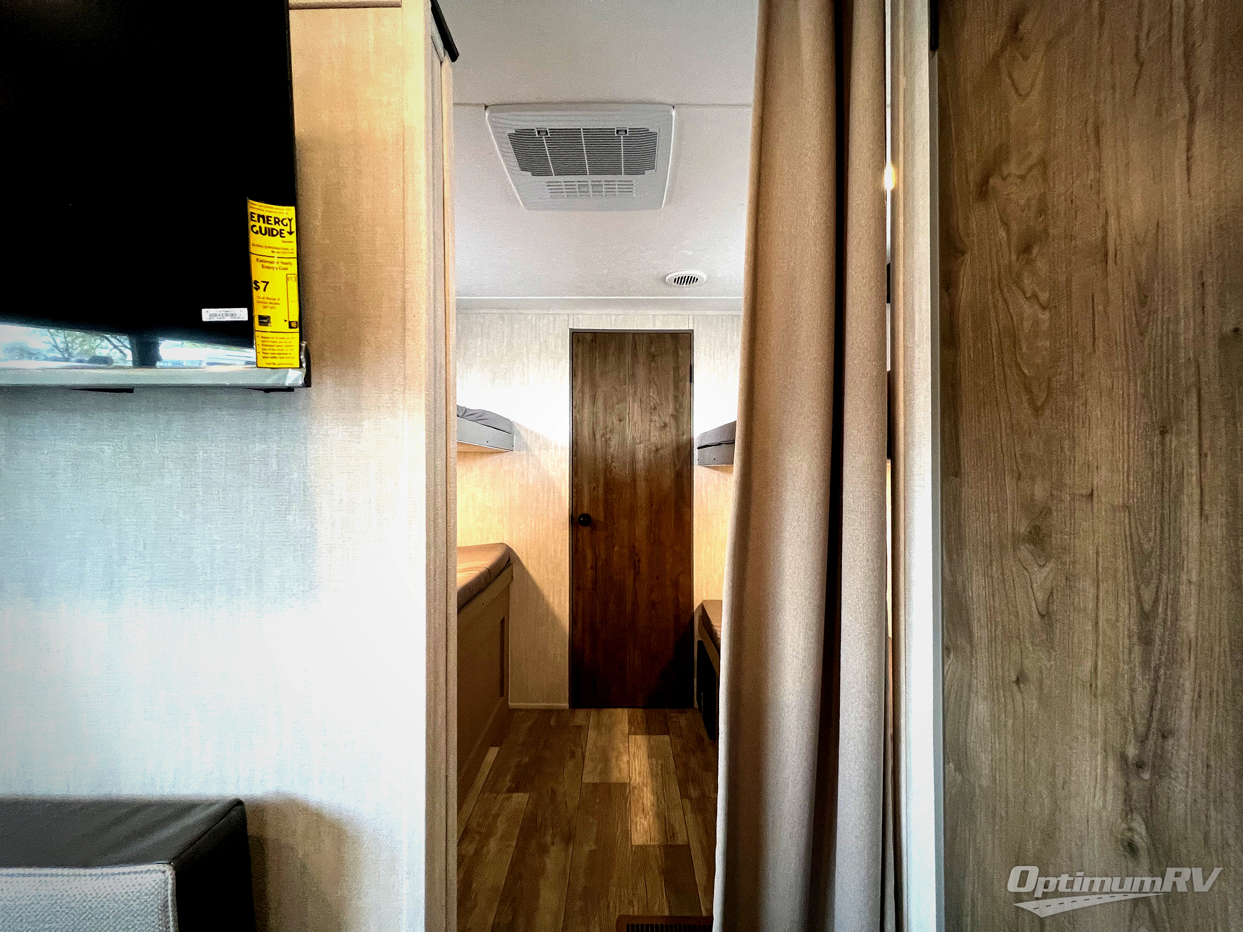 Your guests will love camping with you in this travel trailer! The bunkhouse suite includes four bunks with storage underneath plus a full rear bath to easily clean up each day. The front RV queen bed will provide a great night's rest, or you can choose the Murphy bed option if you're needing more seating space during the day. You can make your best meals in the full kitchen with a three burner cooktop and microwave oven, and there is an 8 cu. ft. 12V refrigerator to keep your cold items fresh. The U-shaped dinette provides a place to dine, play games, and even let additional guests sleep over. This unit also features a closet with washer and dryer prep if you choose to add those appliances.