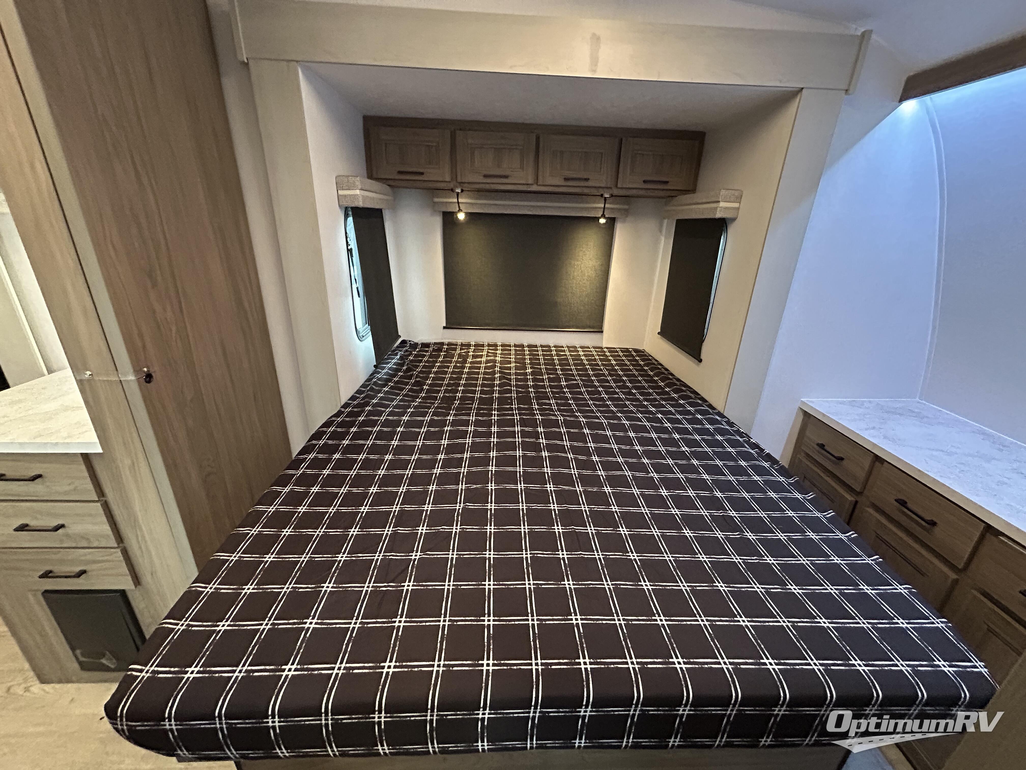 You will love the amount of space you have in this toy hauler with dual slides and dual entry doors. There is a spacious garage where you can load up dirt bikes, a side-by-side or kayaks, and the Zero Gravity ramp door will make unloading easier than ever. The front of this model is shared with the private bedroom and dual entry bath. You'll sleep soundly on the king bed slide out here, while your guests take the roll-over sofas in the garage. A combined kitchen and living area includes a theater seats within a slide, a hidden storage behind the TV, and all the appliances needed to create meals each day. This high profile model also features pull-down roller night shades, generator prep, a 300W solar panel, and more stand-out features!