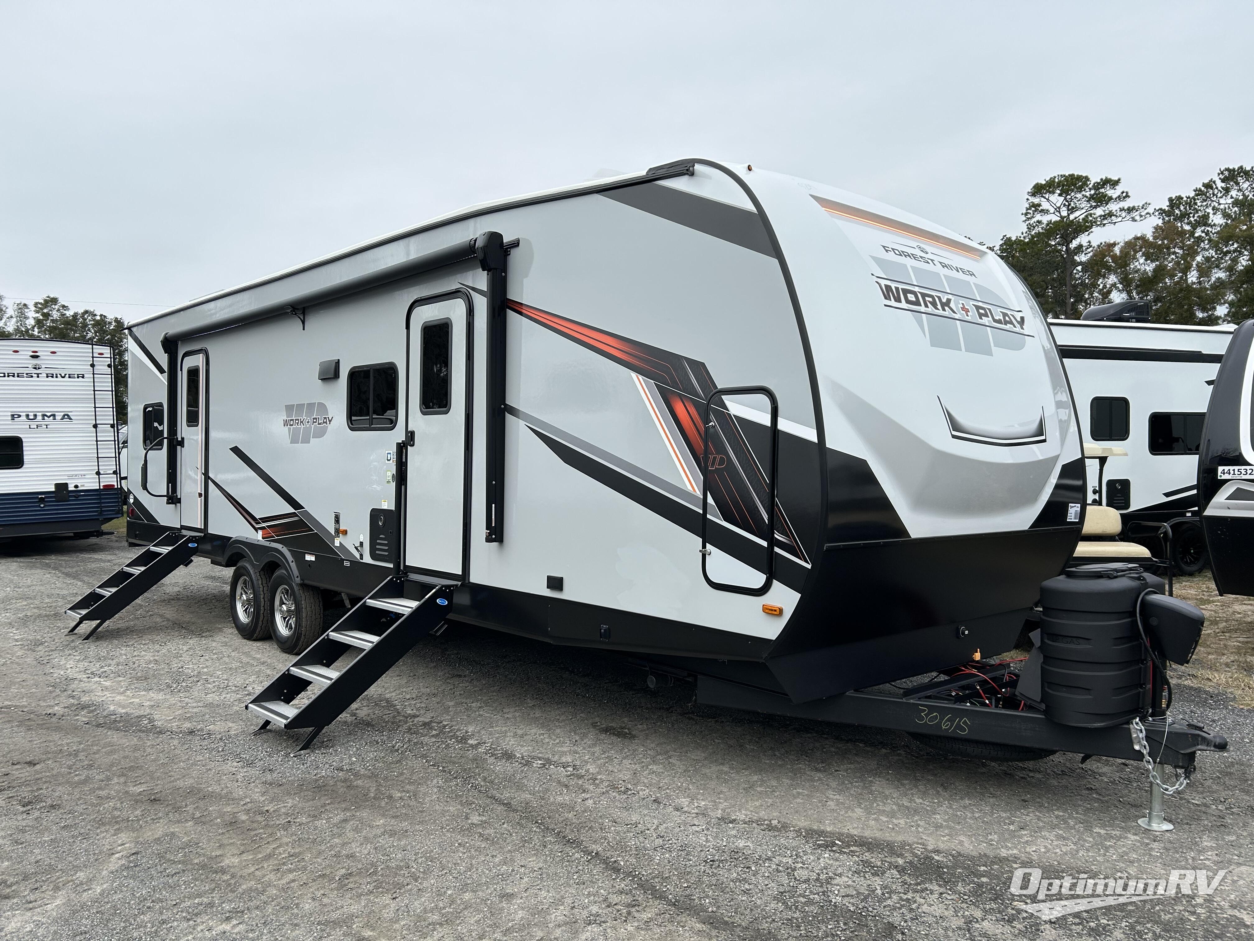 Each Work and Play toy hauler by Forest River is built tough with a mega rail powder coated chassis, a one-piece Tufflex PVC roof membrane, and a fiberglass front cap with rock guard. You will find many convenient features, such as a Winegard Air 360 and TV antenna, an outside spray port, and slam latch door catches to store your riding gear. These toy haulers also include hidden hinge cabinets and doors, USB charging ports in multiple locations, a tankless water heater, plus many more amenities!