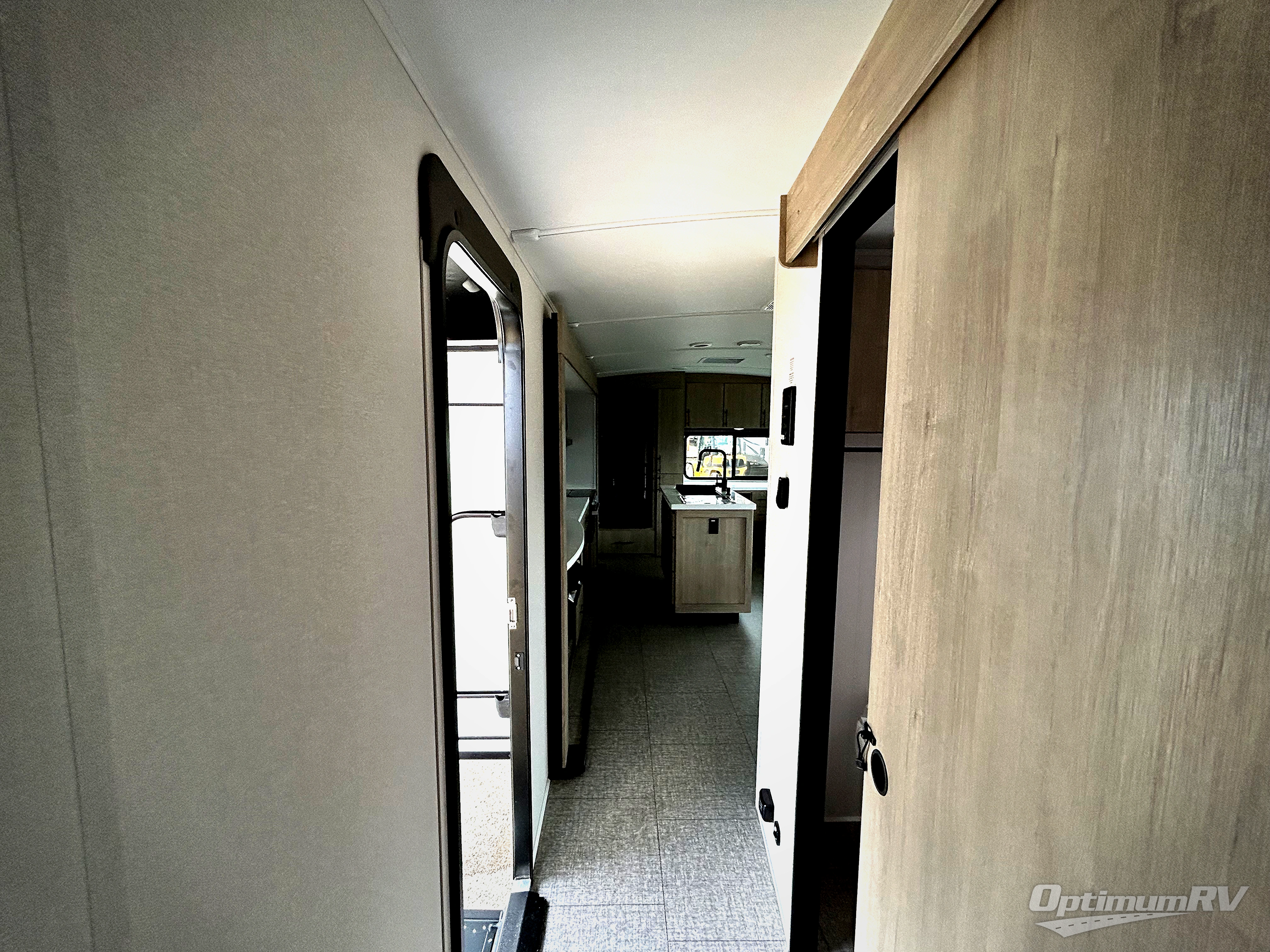 With this Imagine travel trailer, you can work while you're on the road because it offers you a desk in the main living area. You won't have to miss out on the action since you'll be right next to the booth dinette and tri-fold sofa, and there is even a pantry directly to the left of the desk for you to grab a quick snack while you're working. Once you're done with work, you can relax on the tri-fold sofa while you watch the telescoping LED HDTV, and the private bedroom offers you a 60" x 80" queen bed to rest on when you're ready to call it a night.