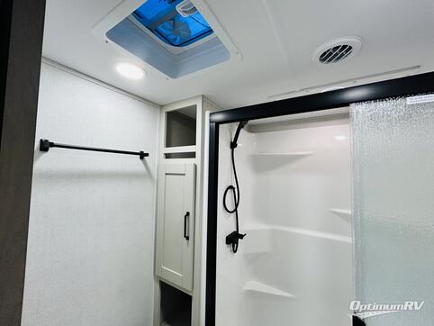 You can enjoy a spacious rear living area in this RV with dual opposing slides offering you entertainment, kitchen amenities, seating and windows for great views! The rear tri-fold sofa also converts into extra sleeping space for an extra guest or two, just like the booth dinette does. Yet you might like to add the free standing dinette option. There are theater seats to enjoy while you place your drinks in the cupholders and watch the entertainment center with a 40" LED HDTV and fireplace. The pantry is big enough to store your favorite snacks, and the kitchen island will make meal prepping easier, plus there is a 16 cu. ft. refrigerator to store any leftovers. The full bathroom has a 30" x 48" fiberglass shower and a linen closet to store your towels. The front private bedroom has a comfortable queen bed slide that can be switched out for the optional king bed, a dresser with overhead cabinets, and a full wall wardrobe that is prepped to add the optional washer and dryer so that you can extend your camping trip with clean clothes!