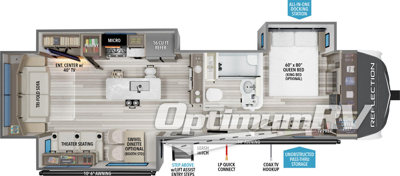 Each Reflection fifth wheel and travel trailer by Grand Design is packed with luxury features for an overall better camping experience! The MORryde 3000CRE suspension provides smooth towing to your destination and the durable construction materials mean you can enjoy your RV for years to come. These units include the Arctic 4-Seasons Protection Package that will extend your camping season thanks to the extreme temperature testing and maximum heating power. The interior of these travel trailers and fifth wheels are designed to make you feel at home with residential cabinetry, solid surface countertops, roller shades, a spacious shower with a glass door, residential bedrooms, and the list goes on! Choose a Reflection today and start a new adventure tomorrow!