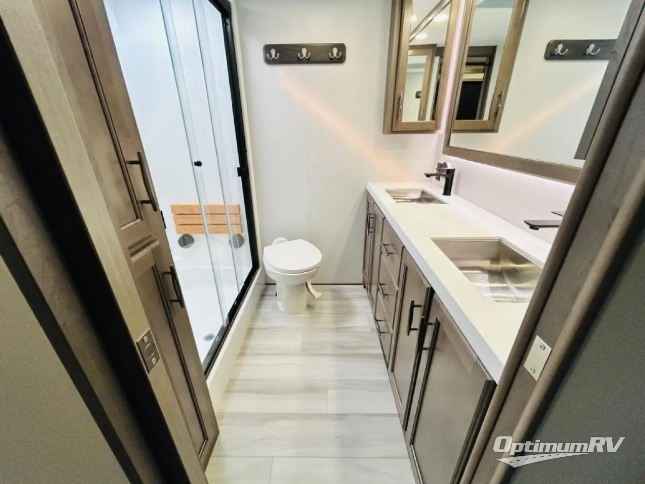 Each Solitude fifth wheel by Grand Design features a 101" wide-body construction, heavy duty 8,000 lb. axles, frameless tinted windows, and high-gloss gel coat sidewalls. You can camp year around thanks to the Weather-Tek Package that includes a 35K BTU high-capacity furnace, an all-in-one enclosed and heated utility center, and a fully enclosed underbelly with heated tanks and storage. Inside, you'll love the premium roller shades, hardwood cabinet doors, solid surface countertops, plus residential finishes throughout to make you truly feel at home. Each model also includes a MORryde CRE3000 suspension system, self adjusting brakes, and a MORryde pin box that will provide smooth towing from home to campground. Affordable luxury is possible with the Solitude fifth wheels; choose yours today!