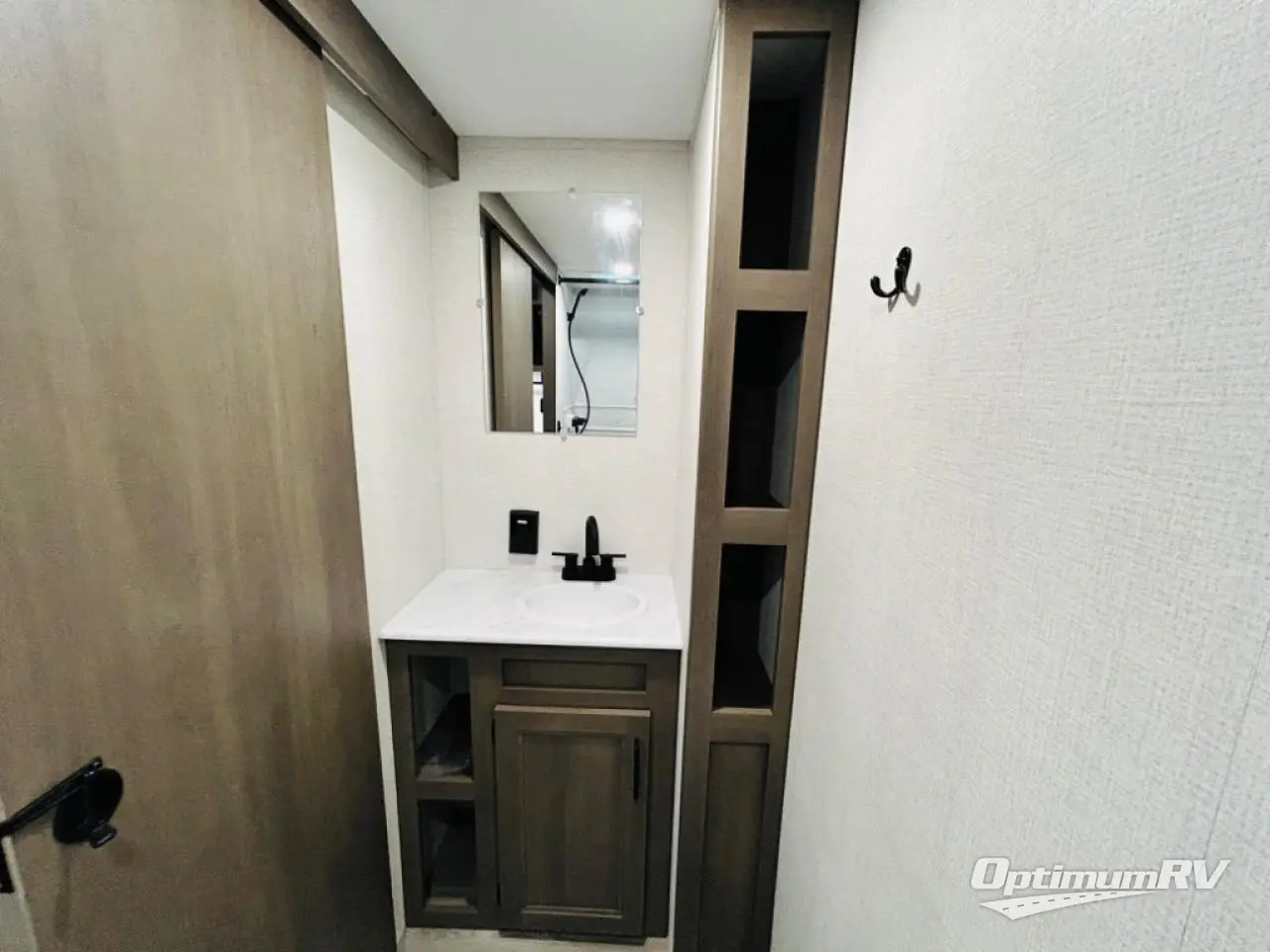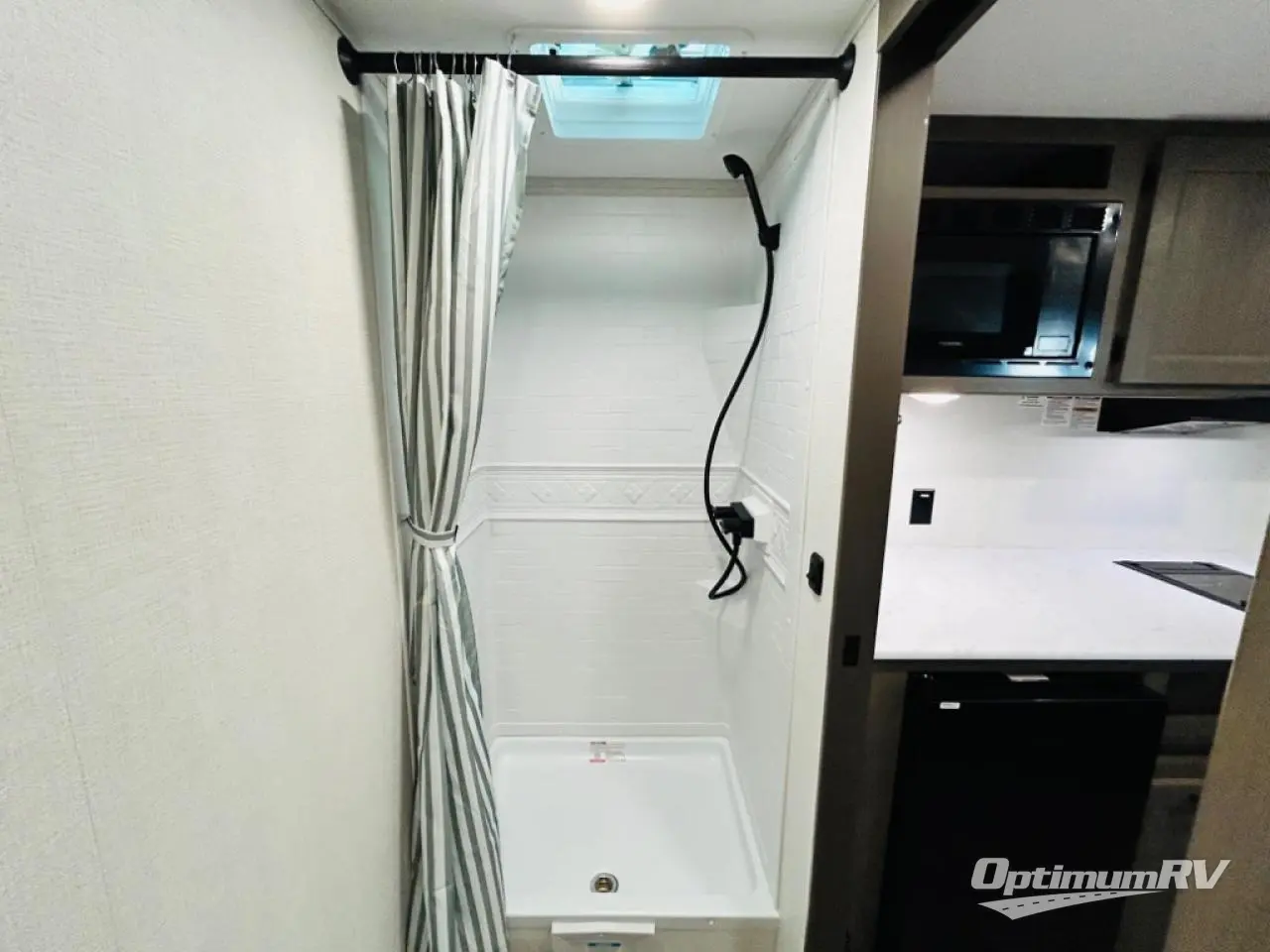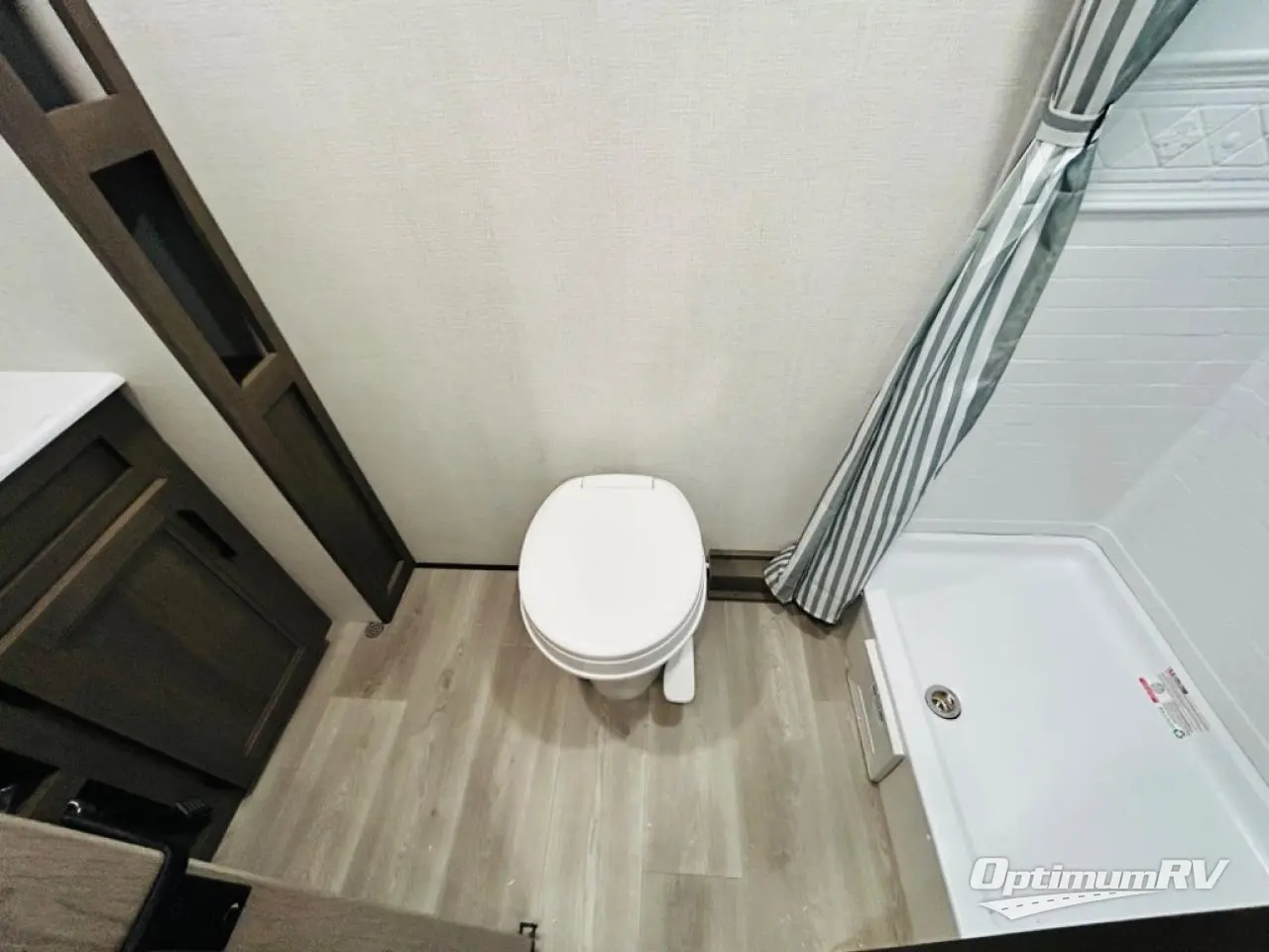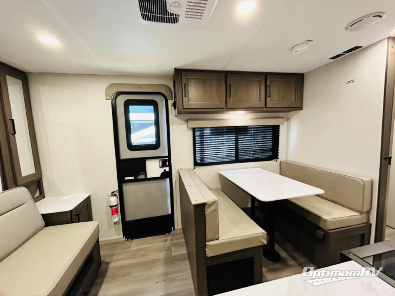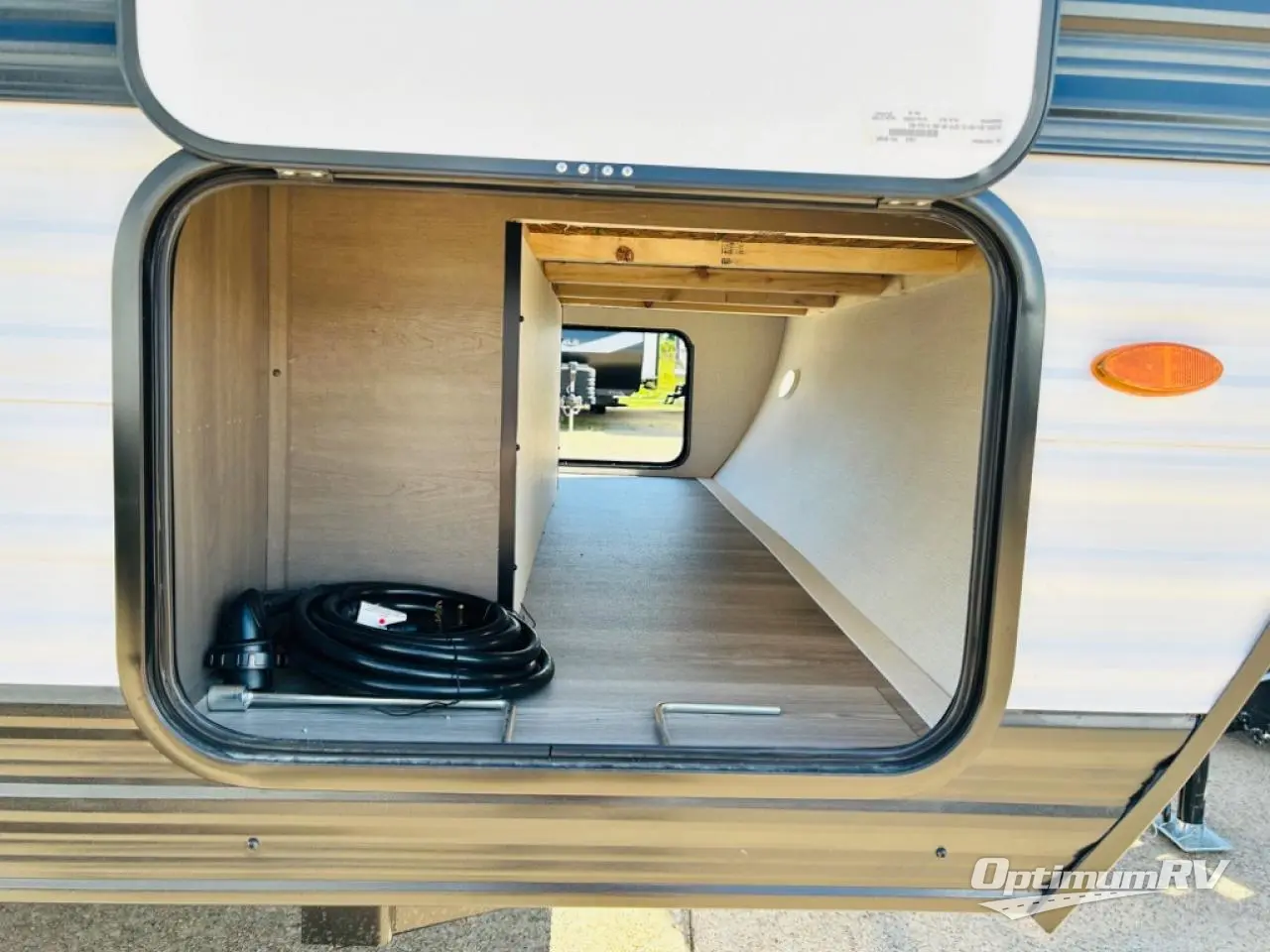 This is the perfect couple's trailer with versatile seating and sleeping space! You'll find a queen-size Murphy bed up front with storage space beside and above plus a full rear bath for added privacy. Once you've made lunch in the full kitchen, you can dine at the booth dinette, or take your plate outdoors to sit under the 10' power awning with an LED light. You'll also find an unobstructed pass-thru storage outside that will be perfect for fishing poles, lawn chairs, tools and more!