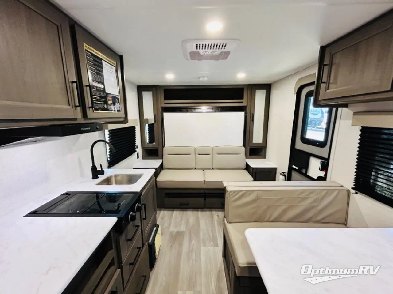 With any Transcend One travel trailer by Grand Design, you will enjoy lightweight towing thanks to their single-axle. There are many interior comforts to make camping easier than ever, such as a deep seated stainless steel sink and high rise faucet with a pull-down sprayer, solid wood drawer fronts, and a 6' 6" interior height. Each model is constructed with a heated and enclosed underbelly with suspended tanks, a moisture barrier floor enclosure, and Thermofoil over the roof and front cap for added protection. A JBL head unit and exterior speaker will let you listen to tunes as you visit under the power awning with an LED light. If you plan to go off the beaten path, take a look at the optional Solar Package that comes with 600W solar prep, an 8 cu. ft. 12V refrigerator, solar disconnect, and more!