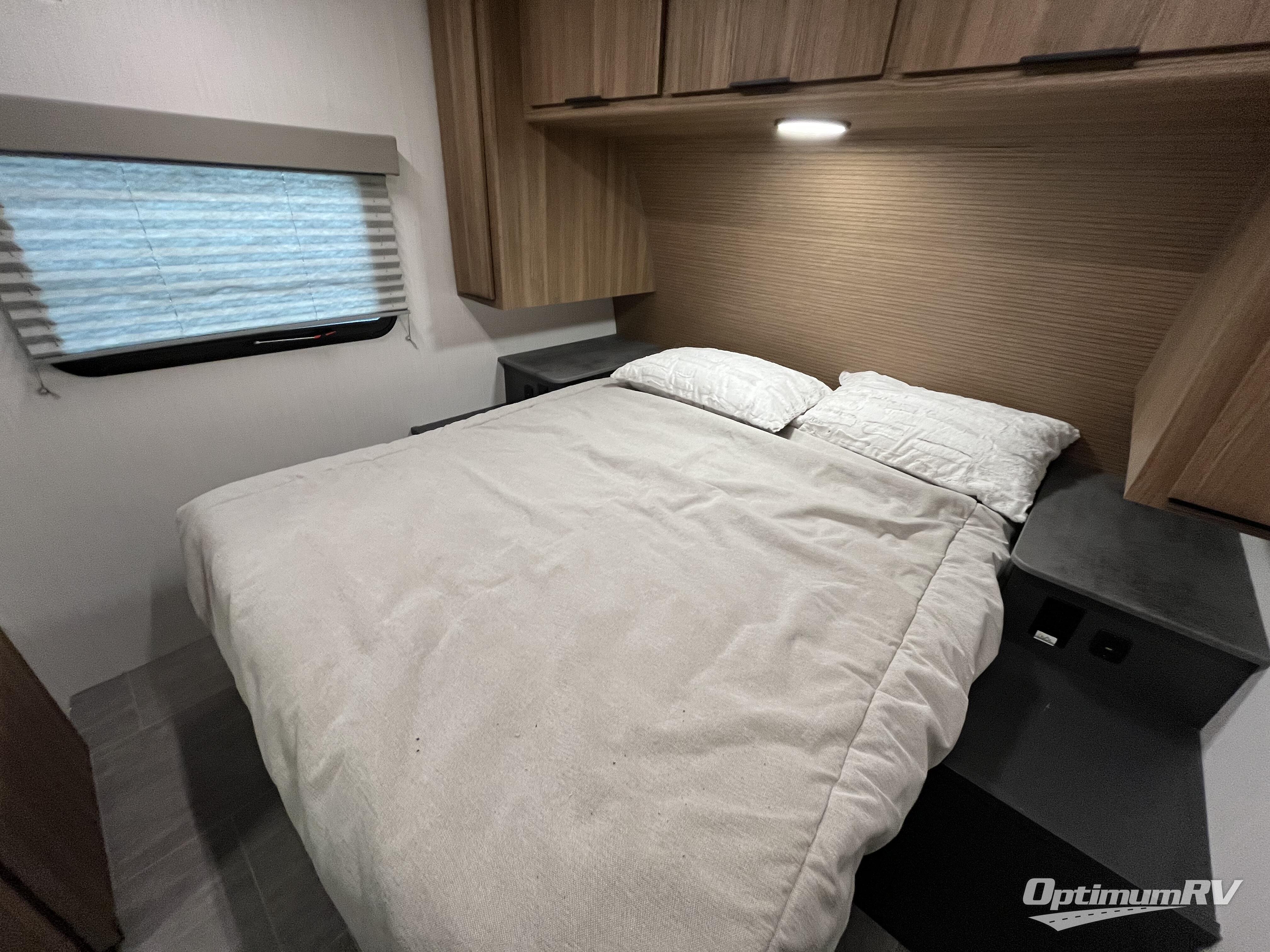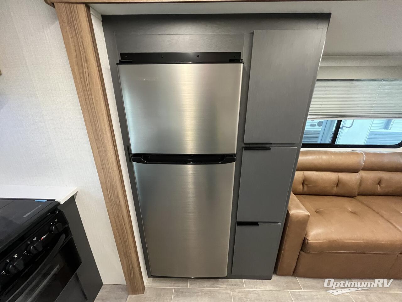 Head to the great outdoors in this travel trailer! Enter the unit through one of the dual entry doors and see all that it has to offer. Starting with the front private bedroom that has a queen size bed to lay your head on at night and wardrobes on either side to hang up your clothes, plus it enters right into the walk-through bathroom which has a full shower surround. The rear kitchen has stainless steel appliances to prepare your best home cooked meals, but if you're wanting some more fresh air while you cook then head to the outdoor kitchen where you can grill some burgers on the cooktop and enjoy a cold beverage stored in the refrigerator. Next to the booth dinette is a hutch to store all of your dishes, and across from it is a sofa to relax on while you watch a movie on the 40" LED TV!