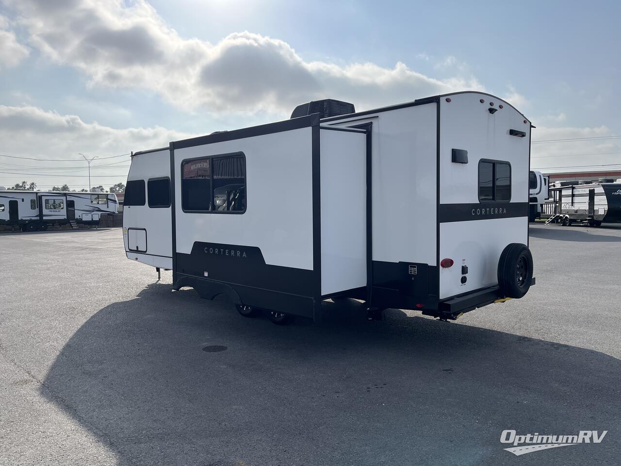 Explore the open road with any one of these Heartland Corterra fifth wheels or travel trailers! They are built with a 8" I-beam, Azdel Onboard composite sidewalls, and a heated and enclosed underbelly to protect your unit's vitals. The Vault XL and color coded wiring makes it easy to navigate through it and the exclusive TRIO airflow AC system ensures maximum cooling to keep you cooled off on a hot summer day. You can safely enter and exit the unit through the deluxe tinted glass entry door with Extended Safe-T entry grab handle. The interiors abound in luxury with hidden storage throughout, a wine and/or coffee bar for entertaining, and a residential appliance package for home cooked meals everywhere you go. Come find your favorite one today!