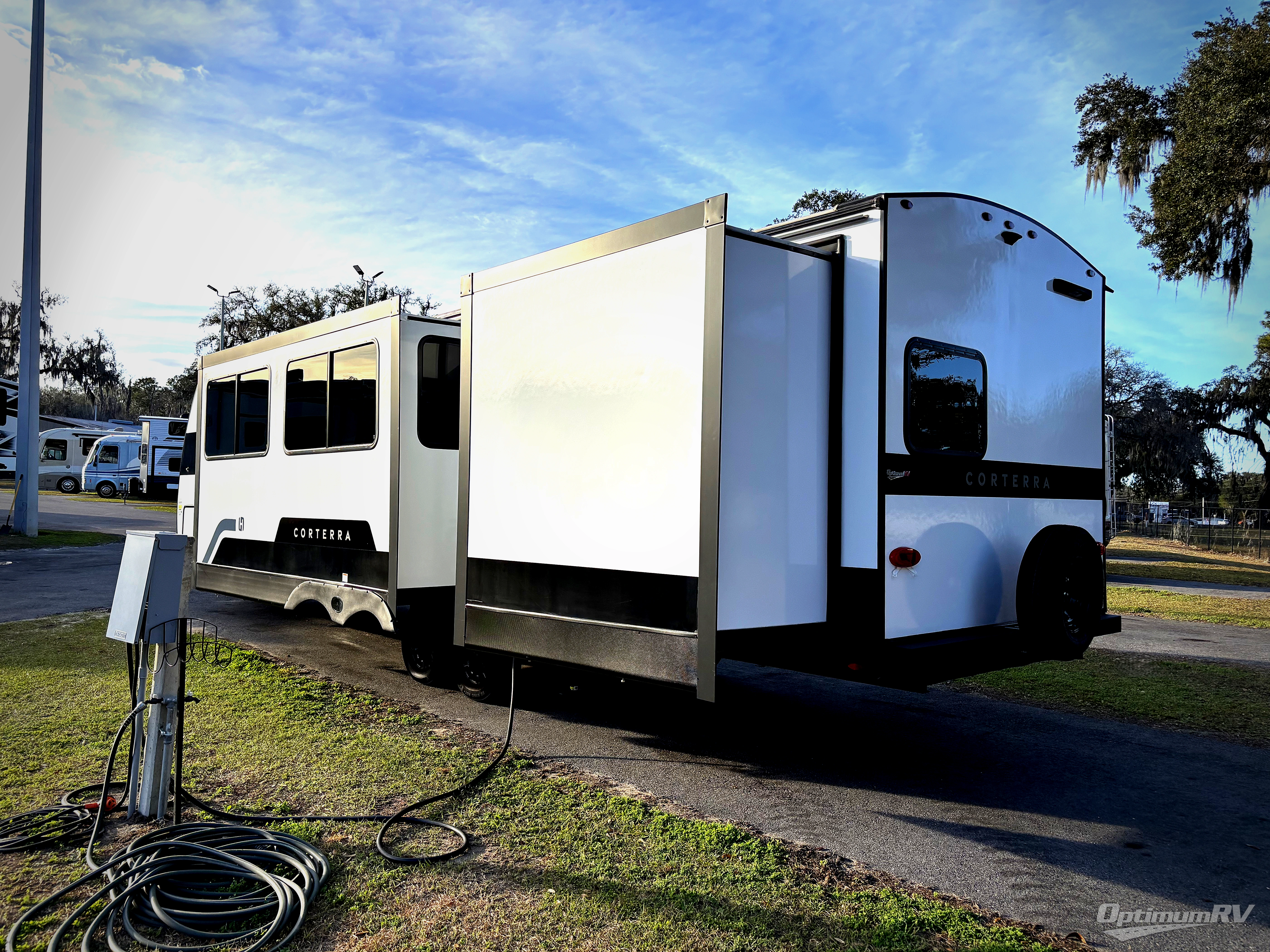 Explore the open road with any one of these Heartland Corterra fifth wheels or travel trailers! They are built with a 8" I-beam, Azdel Onboard composite sidewalls, and a heated and enclosed underbelly to protect your unit's vitals. The Vault XL and color coded wiring makes it easy to navigate through it and the exclusive TRIO airflow AC system ensures maximum cooling to keep you cooled off on a hot summer day. You can safely enter and exit the unit through the deluxe tinted glass entry door with Extended Safe-T entry grab handle. The interiors abound in luxury with hidden storage throughout, a wine and/or coffee bar for entertaining, and a residential appliance package for home cooked meals everywhere you go. Come find your favorite one today!