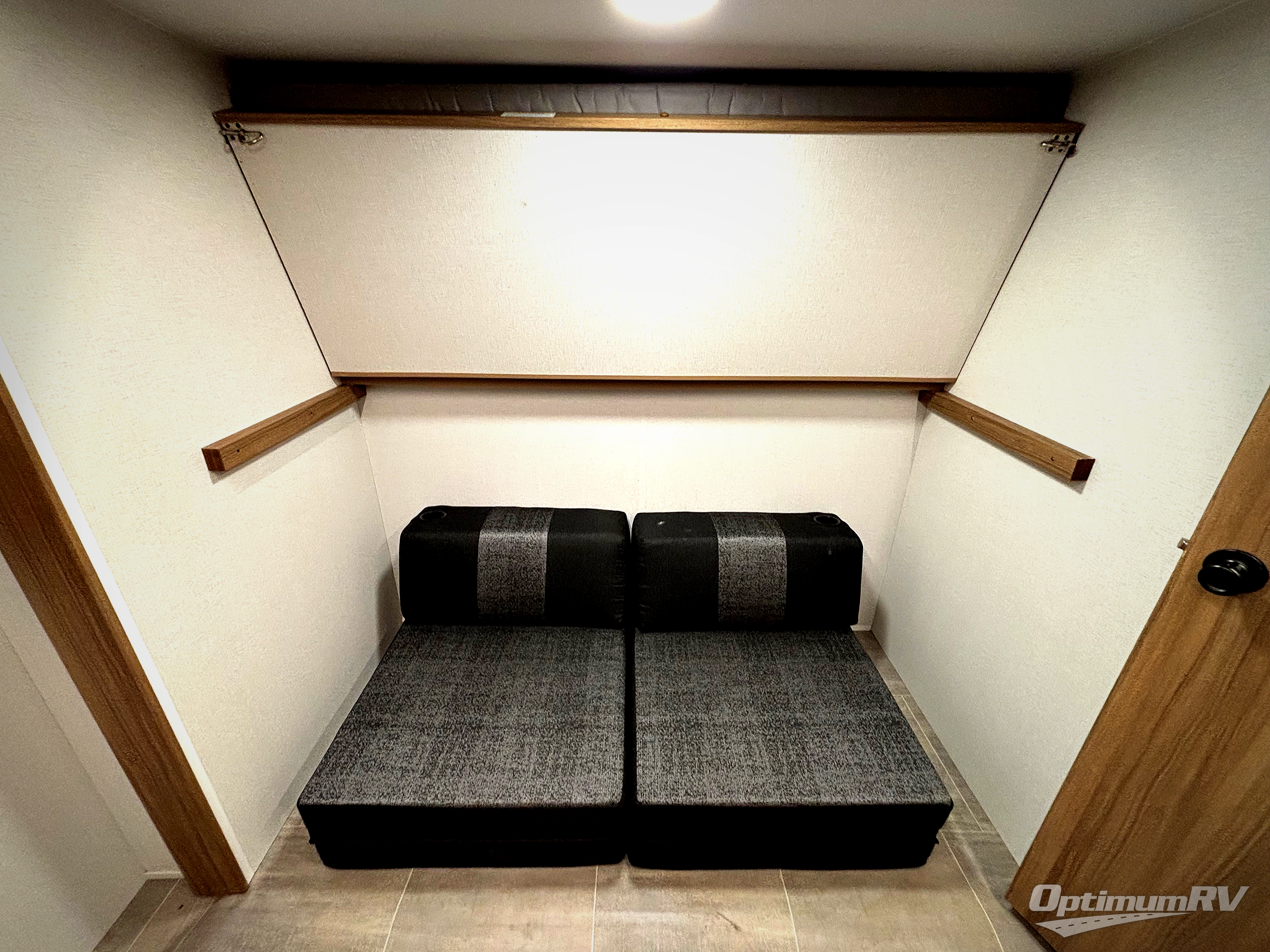You won't believe all that this travel trailer has inside! Enter the unit through one of the dual entry doors and see all that it has to offer. Starting with the front private bedroom that has a queen size bed to lay your head on at night and wardrobes on either side to hang up your clothes. The fully equipped kitchen has stainless steel appliances to prepare your best home cooked meals, as well as an outside kitchen to breathe in some fresh air while you cook. Enjoy your delicious meals at the booth dinette then play a card game or relax on the sofa while watching a movie on the 40" LED TV. The rear private bunkhouse has a flip-up bunk bed above a sofa and another bunk bed above a bottom bed with storage space below it. Everyone can freshen up in the full bathroom which also has one of the dual entry doors!