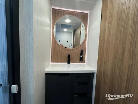 The whole family will love camping in this fifth wheel! It has everything you could need and then some, like the two full bathrooms and bedrooms. The front private bedroom has a queen bed with a wardrobe slide and a closet prepped to add a washer and dryer. The second bedroom has a queen bed slide that can be switched out for an optional sofa and a desk with TV prep, wardrobes, and a loft above it all, plus it has access to a full bathroom that also has one of the dual entry doors for easy access to the outdoors. The kitchen and living area will have you feeling right at home with a kitchen island, a 55" Smart TV and fireplace with hidden storage. There is even a wine rack and coffee bar for everyone to enjoy their favorite beverages. Enjoy your meals at the free standing table with four chairs. The residential furniture has footrests, hidden cup holders, and USB charging ports to keep your electronics at 100%!